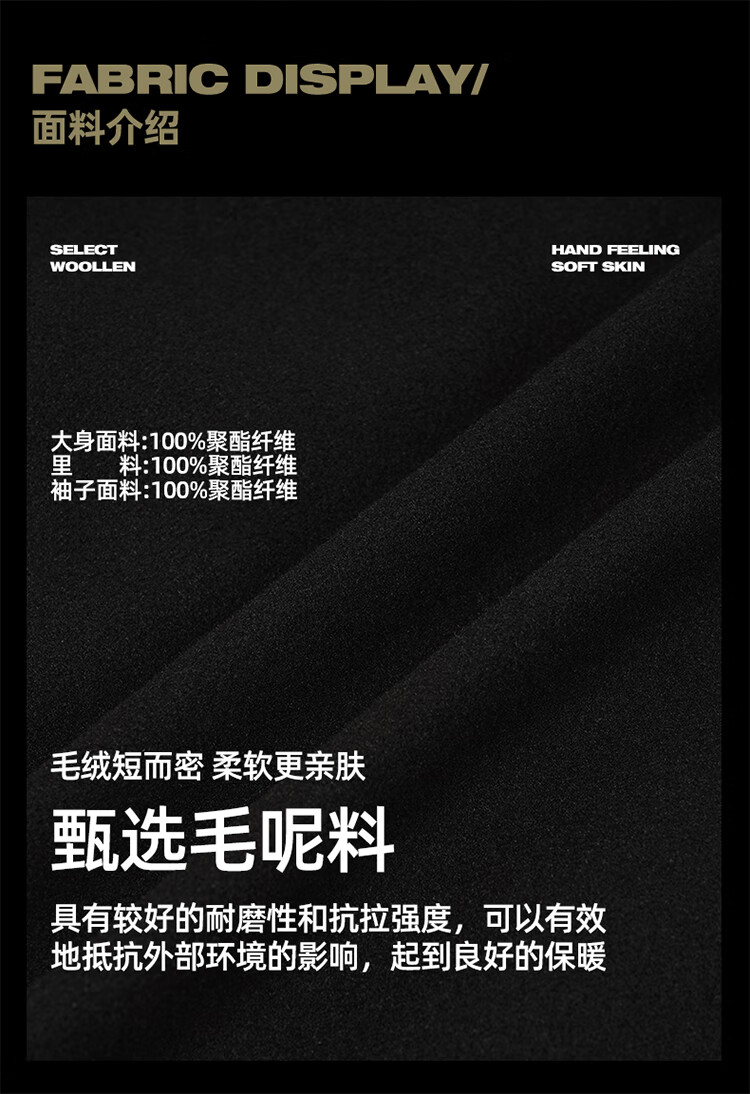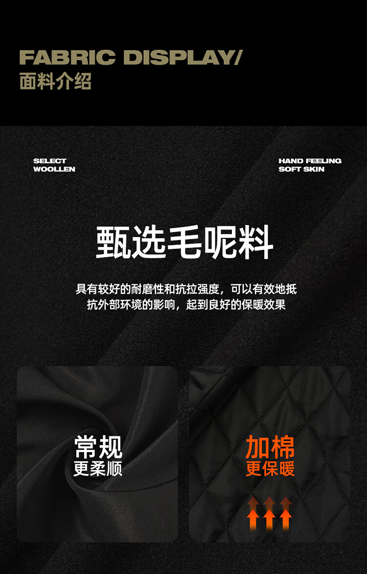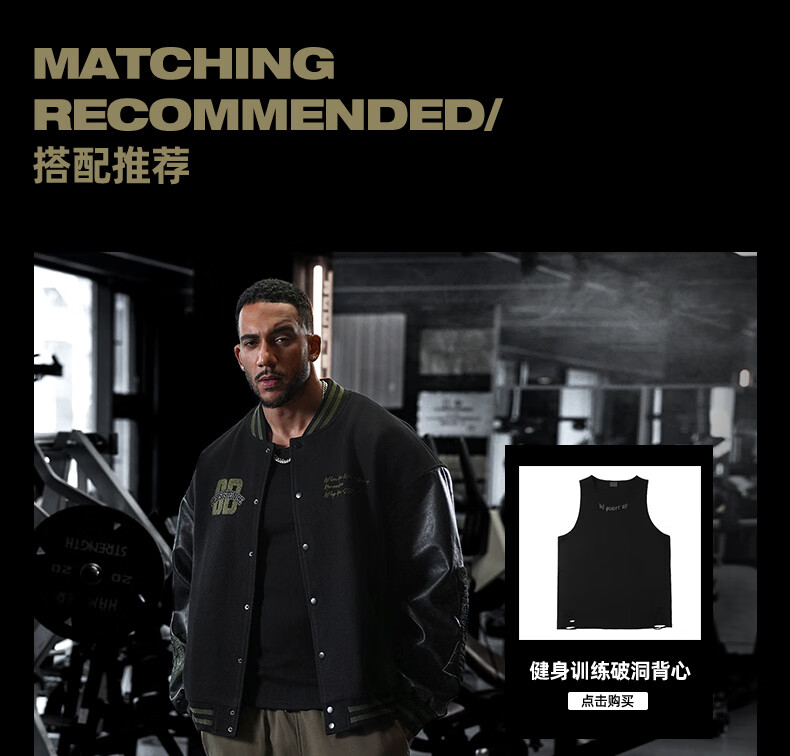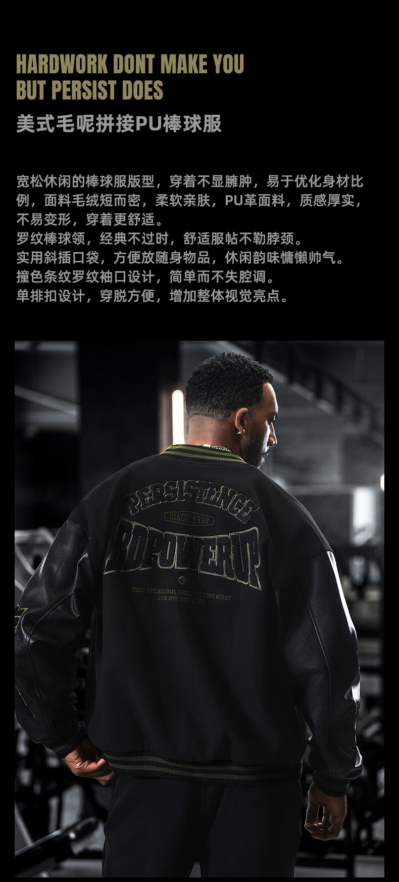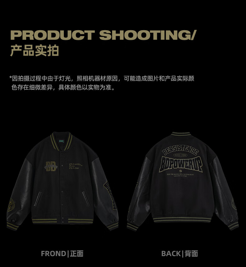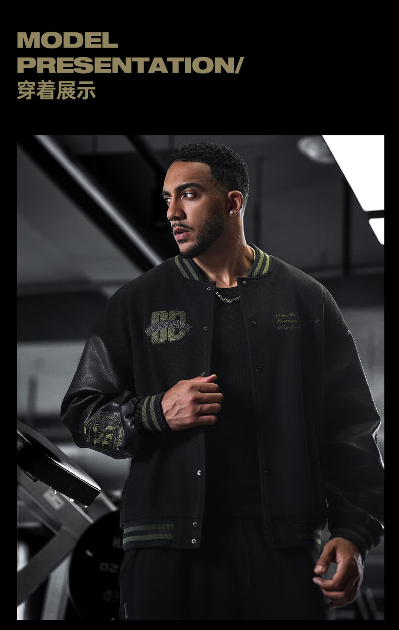 BD.POWER UP+美式夹棉加厚毛呢棒球服外套男冬季休闲宽松刺绣运动夹克棉服外套 黑色 XL 170-190斤