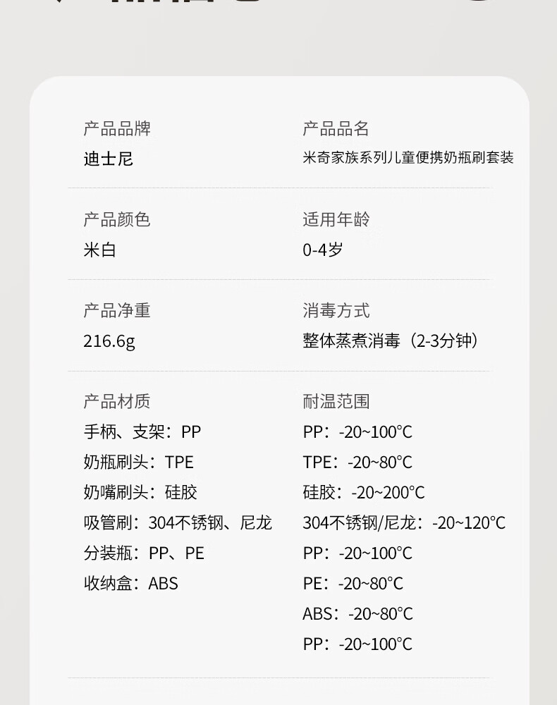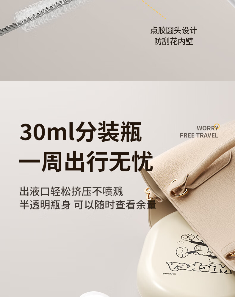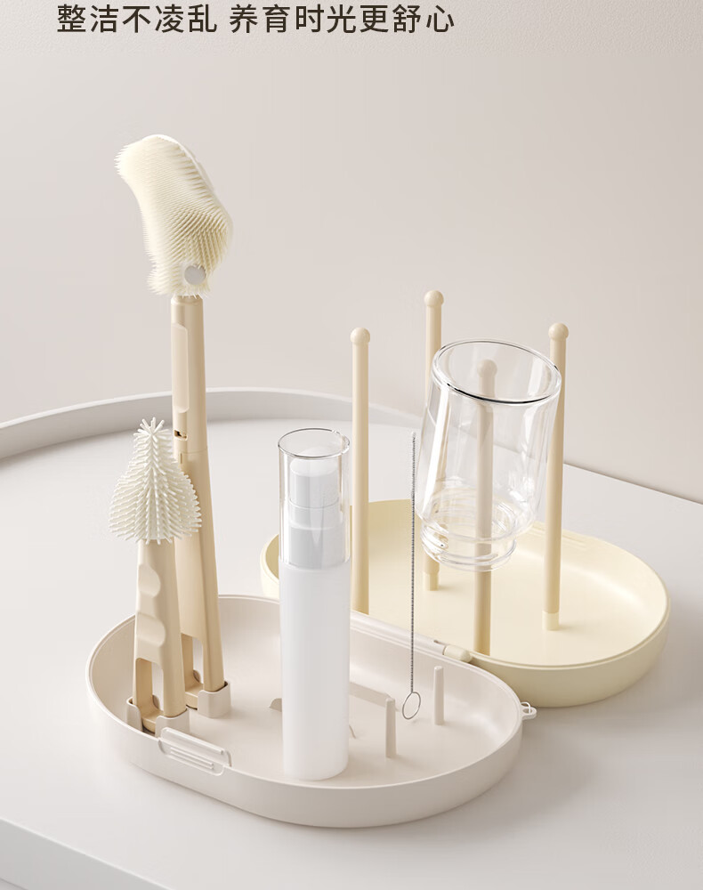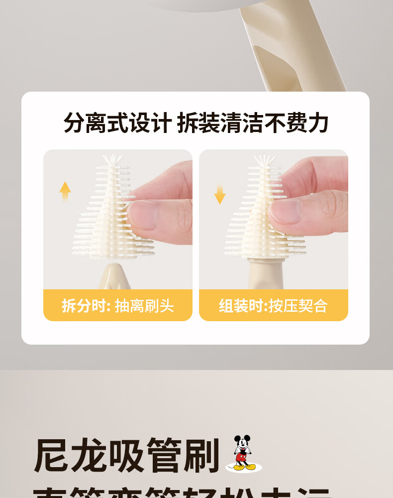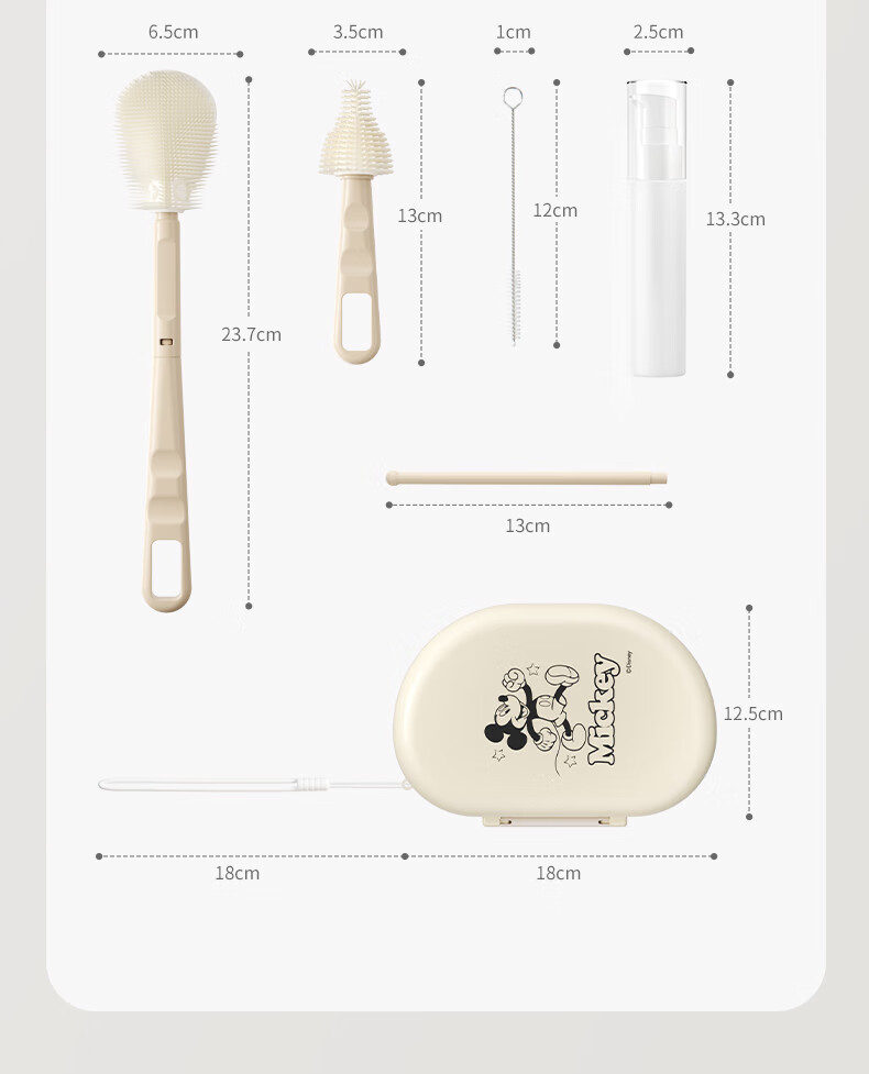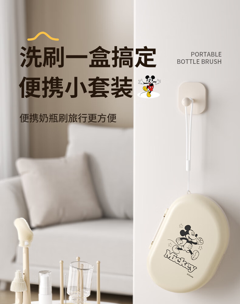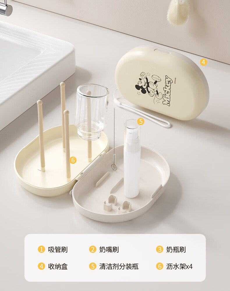 迪士尼(Disney)奶瓶清洗器套装硅胶奶瓶刷婴儿专用外出旅行便携收纳 6件套(可清洗+沥水+收纳)