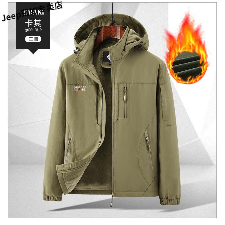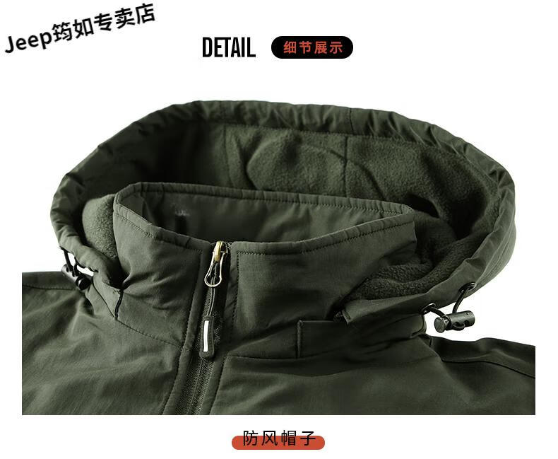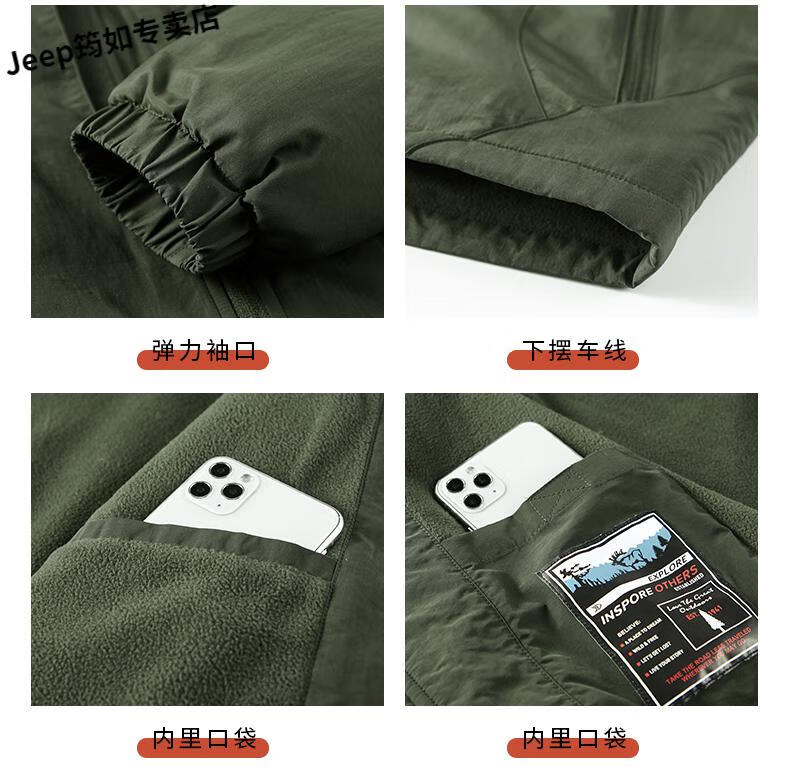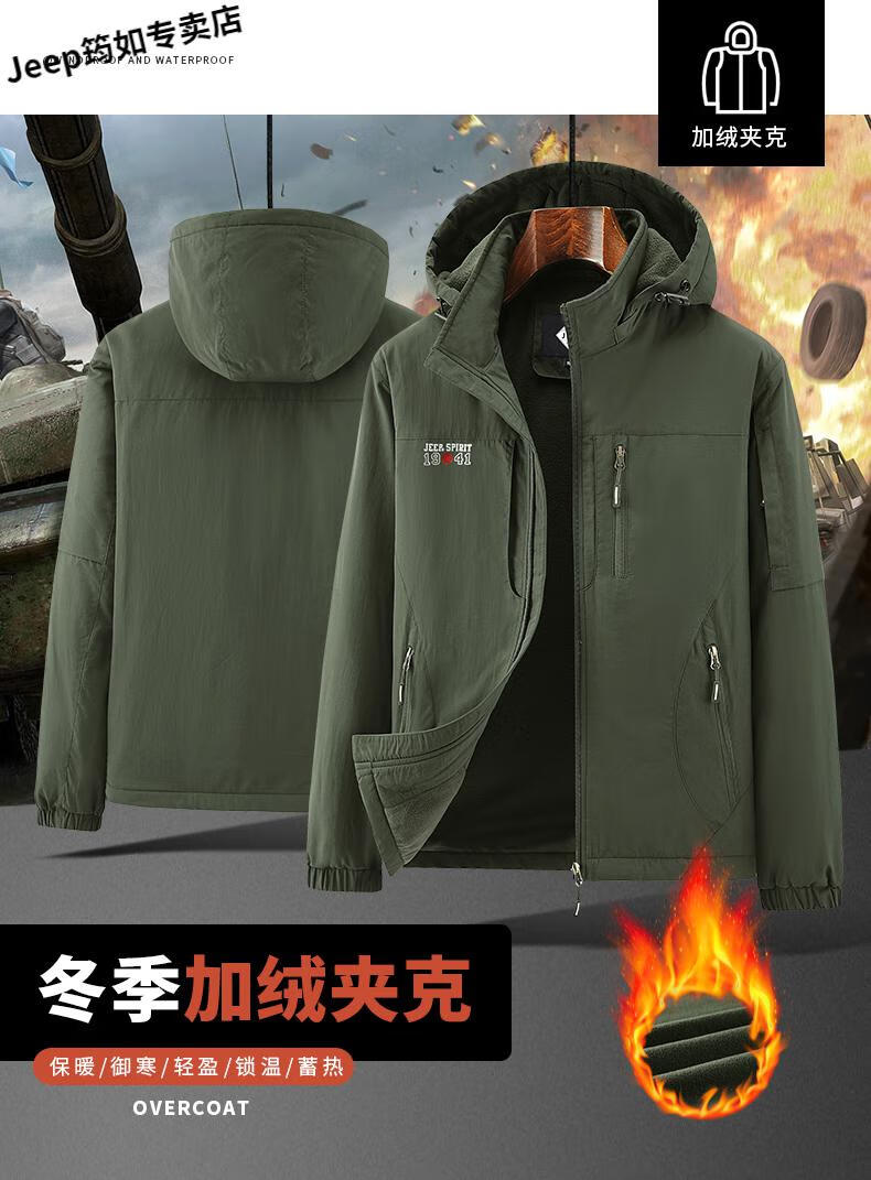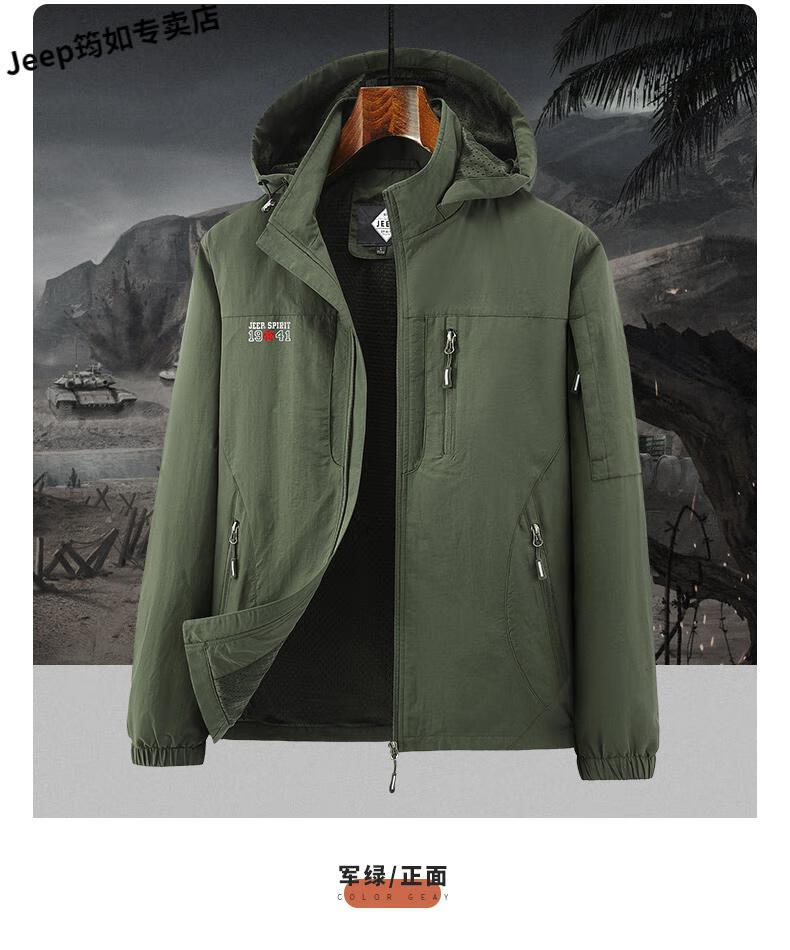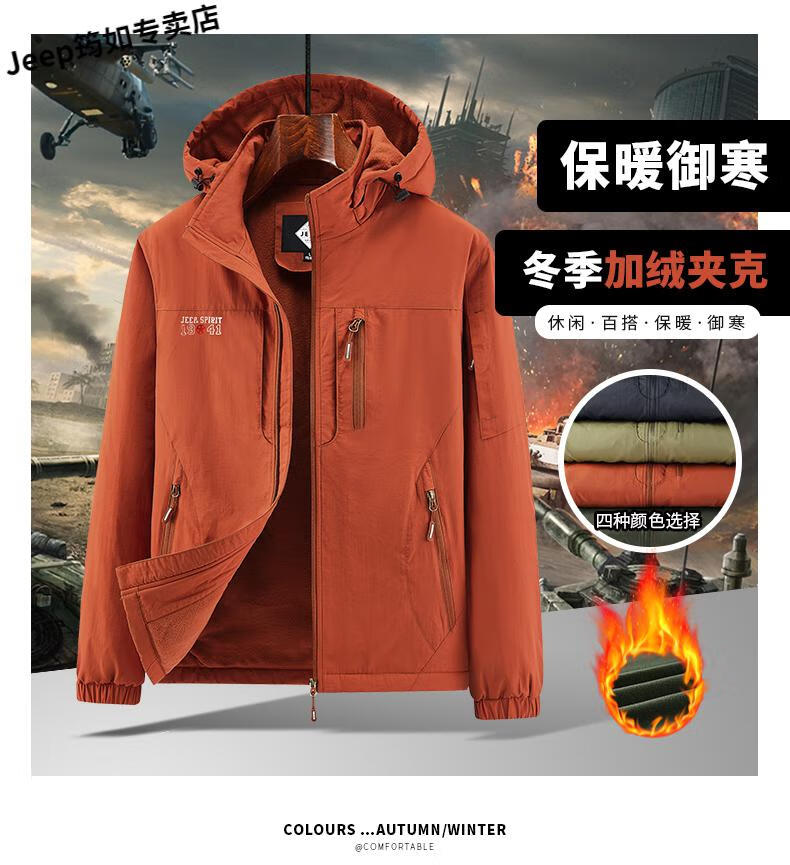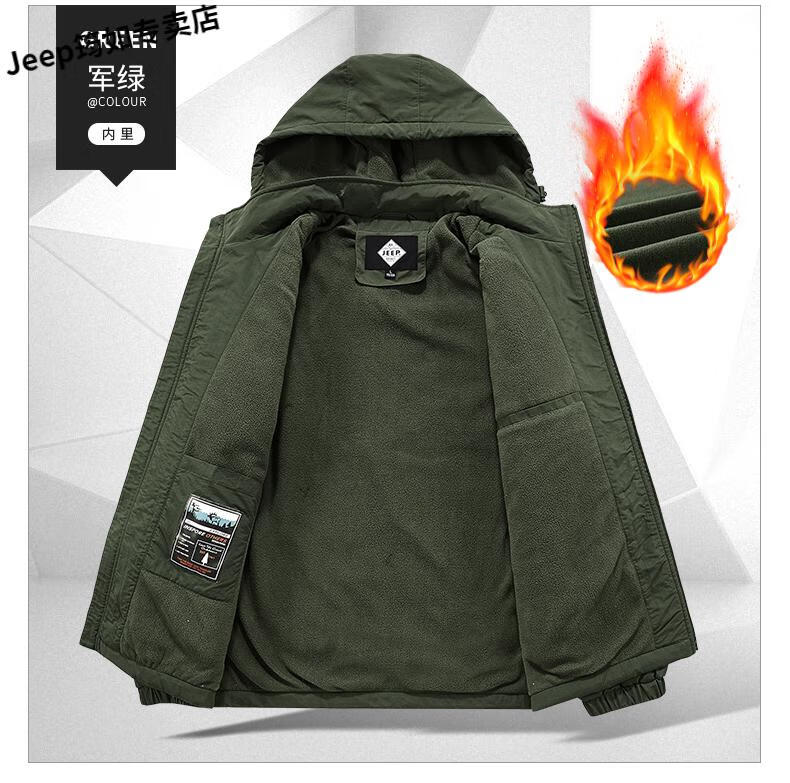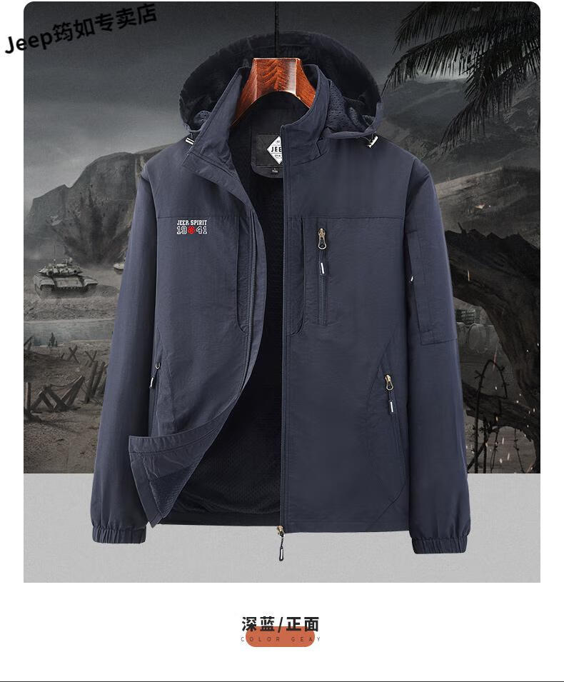 JEEP春秋季薄绒保暖棉服男士宽松休闲外套大码多口袋茄克上衣 深蓝色(6918A加绒款) 可拆帽子 L 建议120-135斤