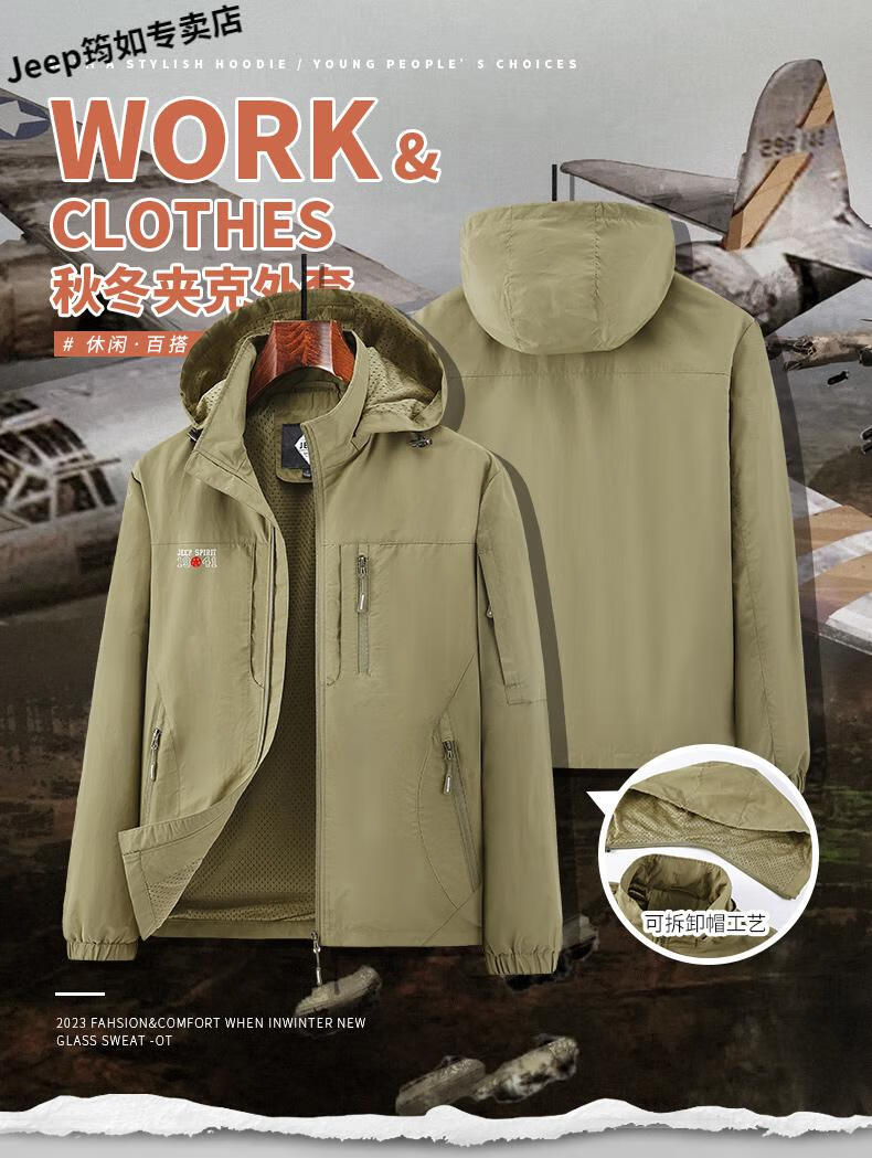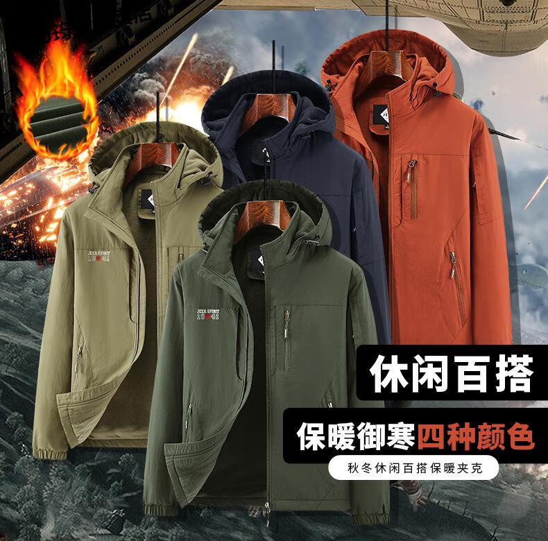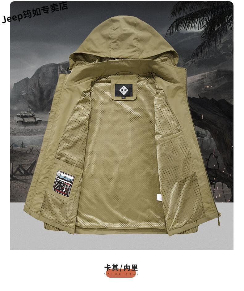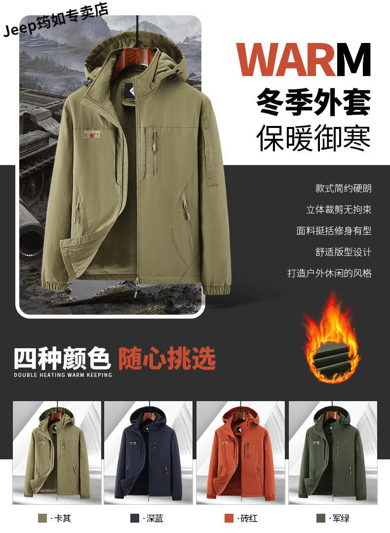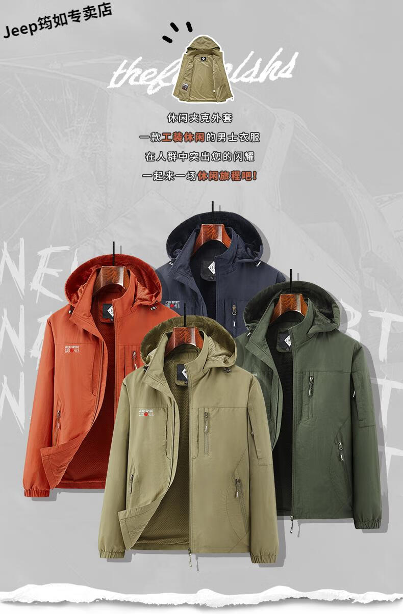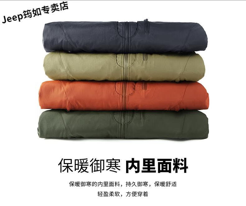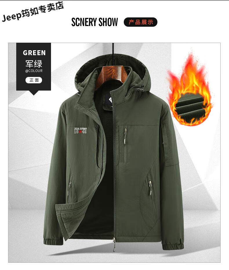 JEEP春秋季薄绒保暖棉服男士宽松休闲外套大码多口袋茄克上衣 深蓝色(6918A加绒款) 可拆帽子 L 建议120-135斤