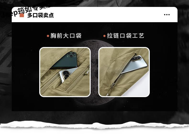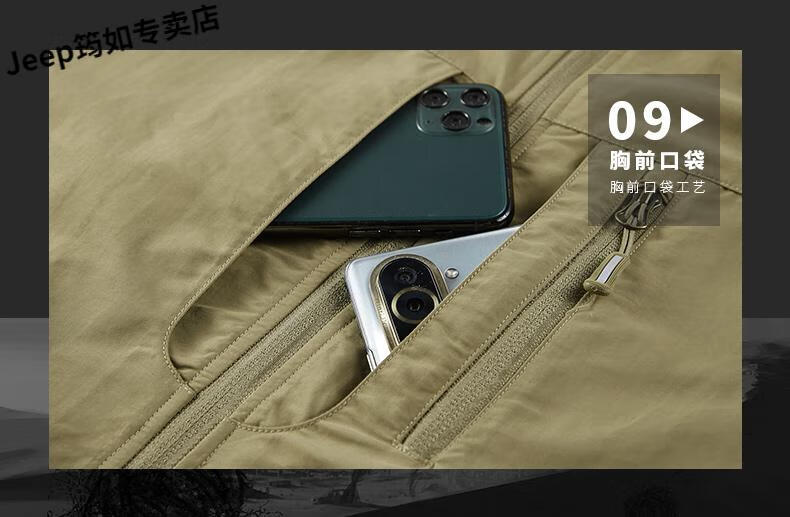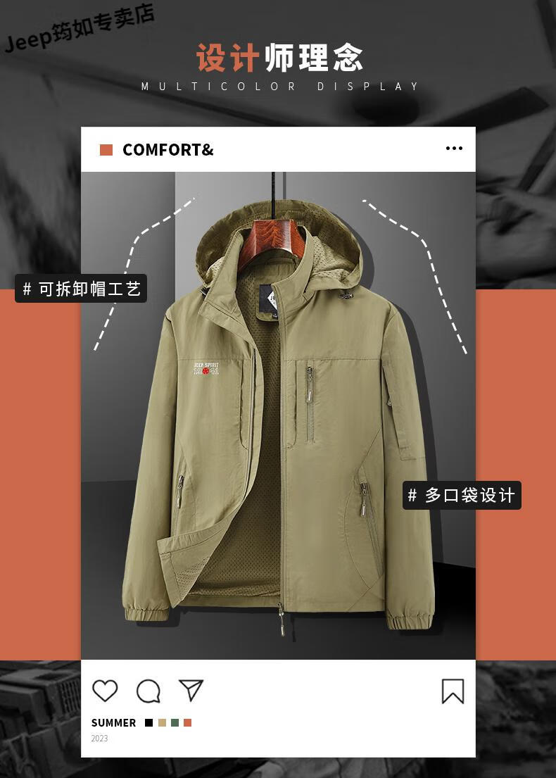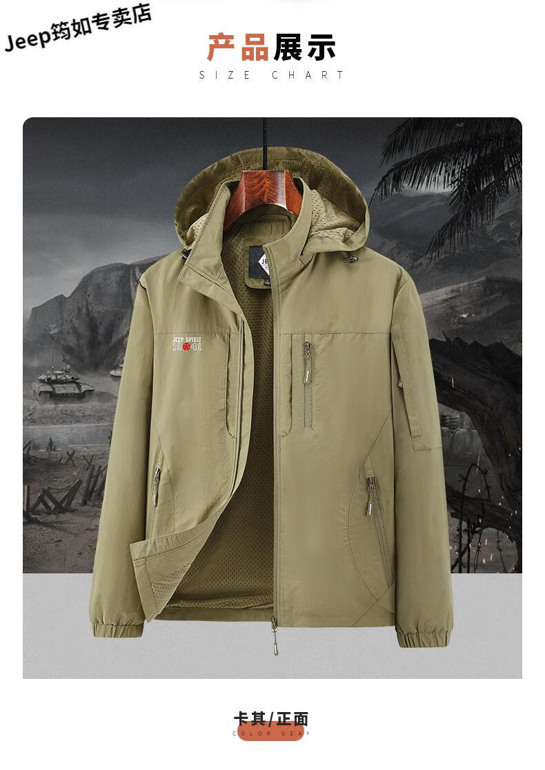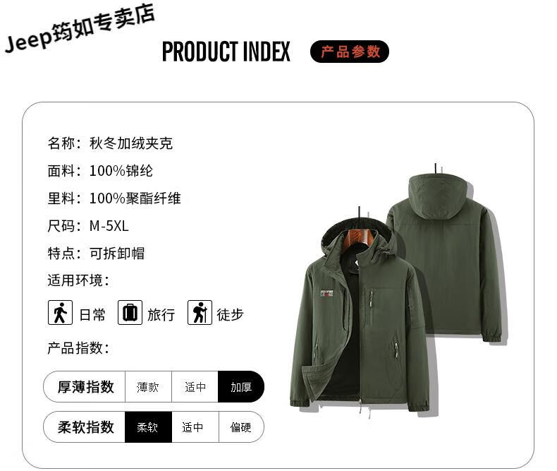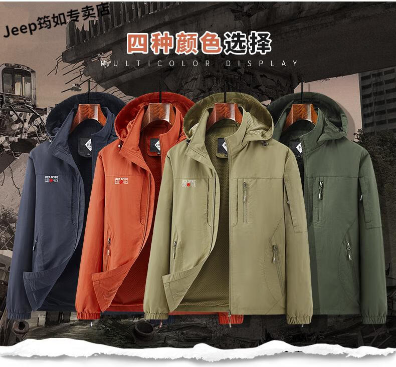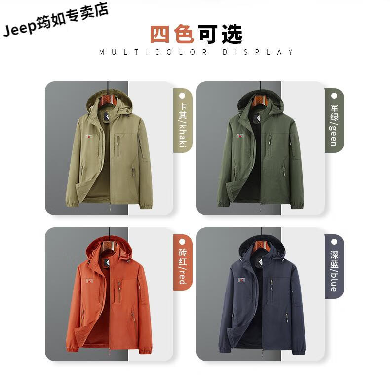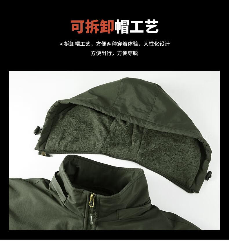 JEEP春秋季薄绒保暖棉服男士宽松休闲外套大码多口袋茄克上衣 深蓝色(6918A加绒款) 可拆帽子 L 建议120-135斤