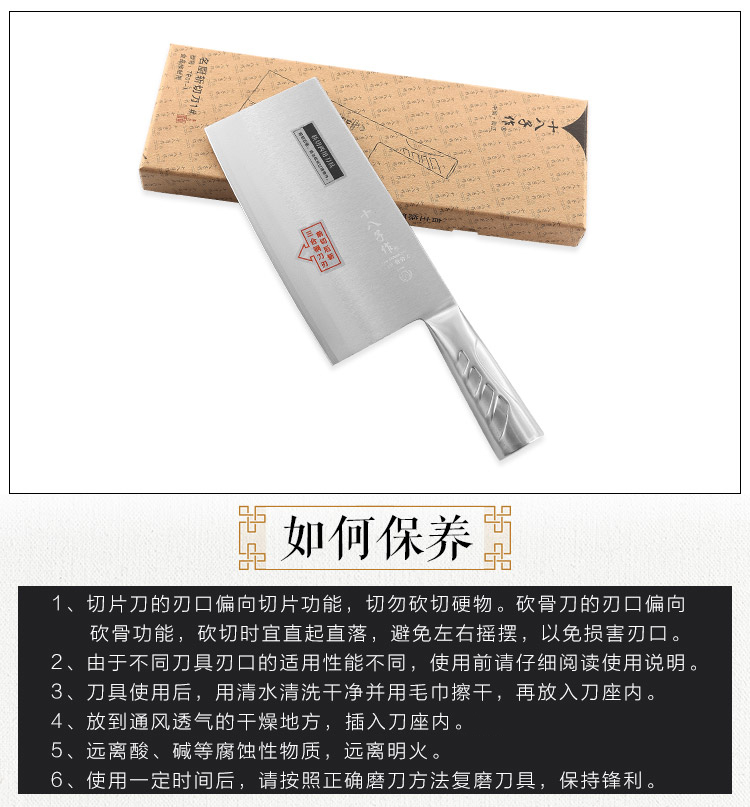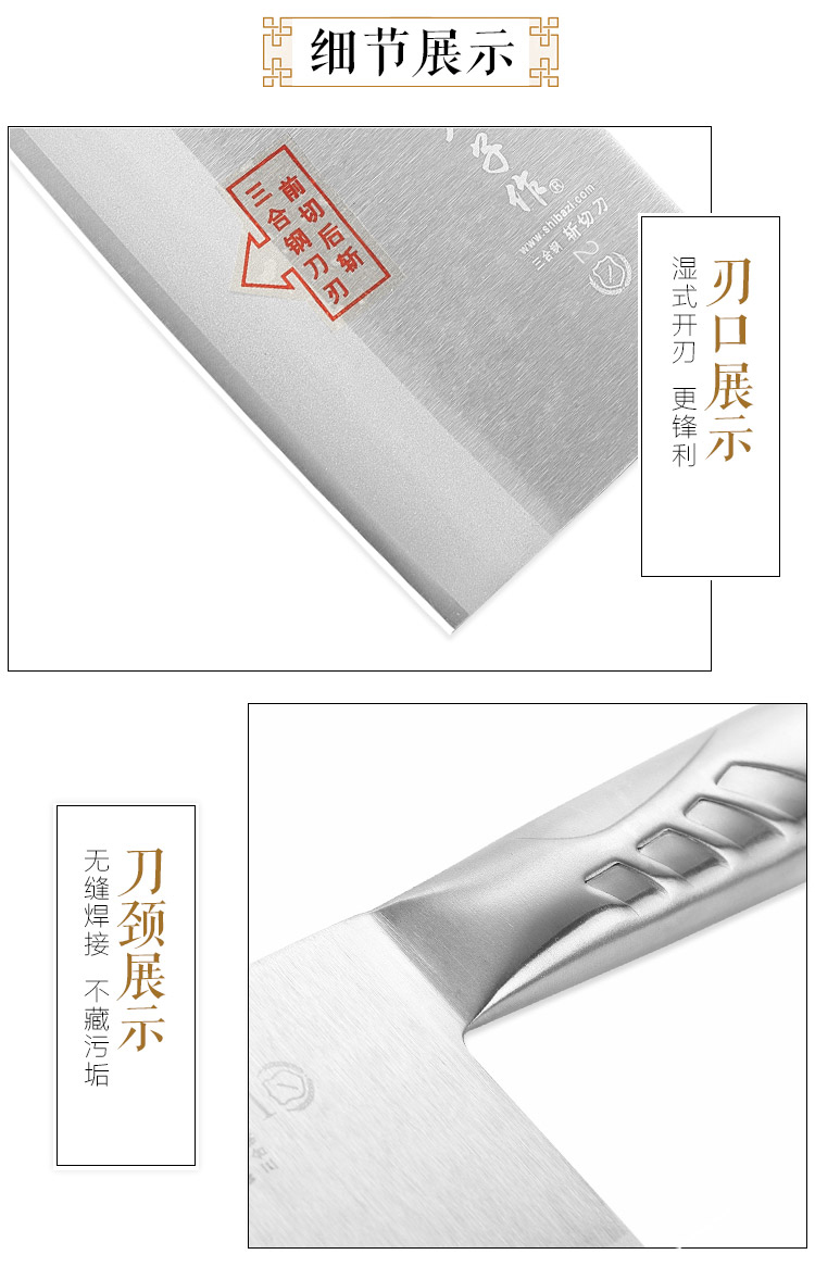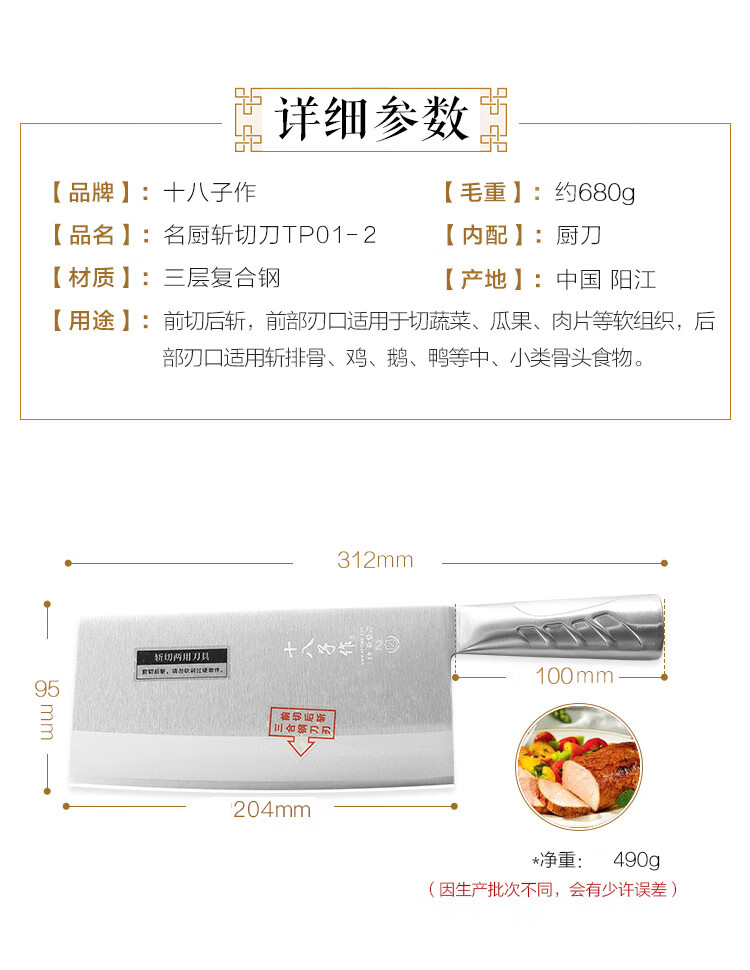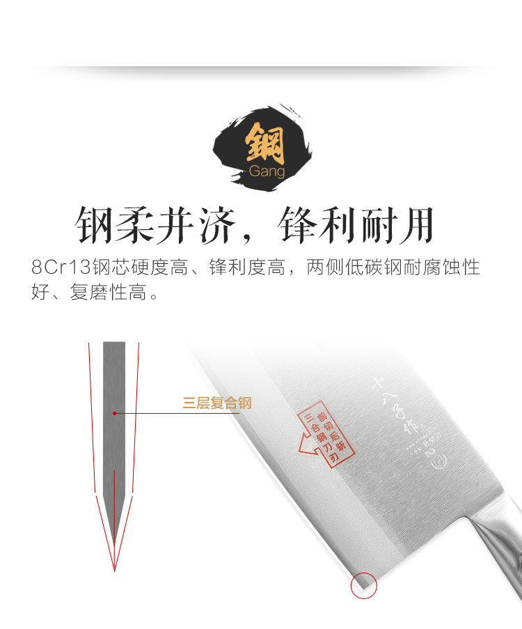 十八子作 阳江菜刀三合钢专业中式厨师刀 名厨2号斩切刀TP01-2