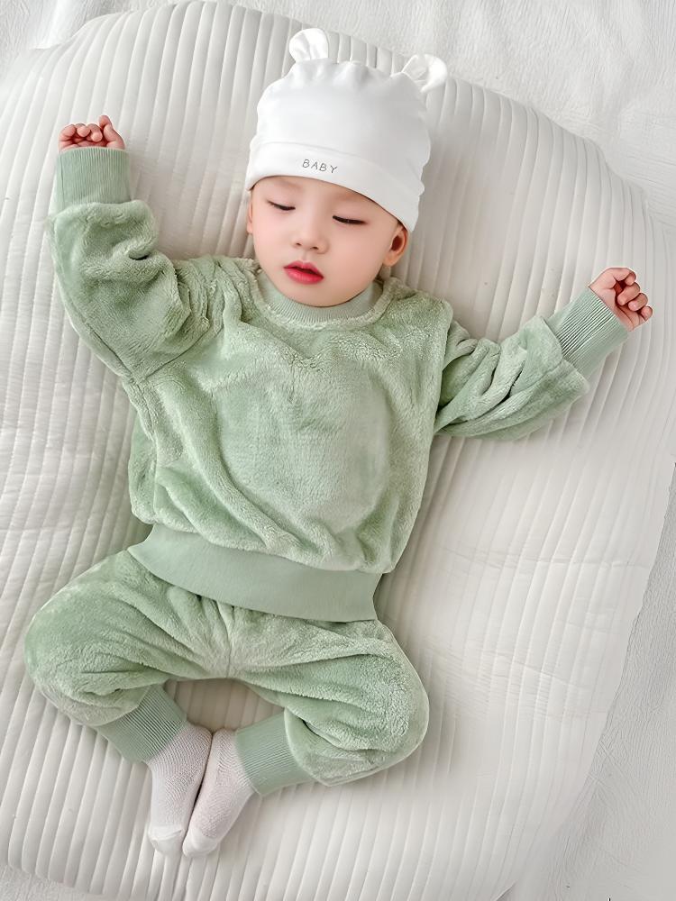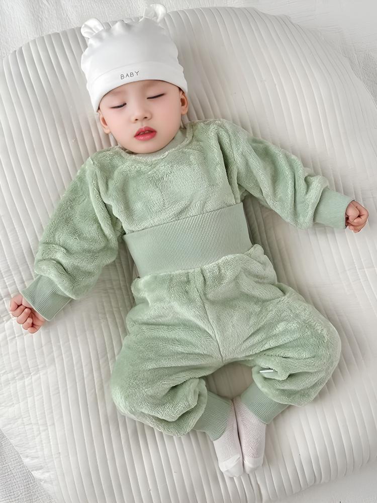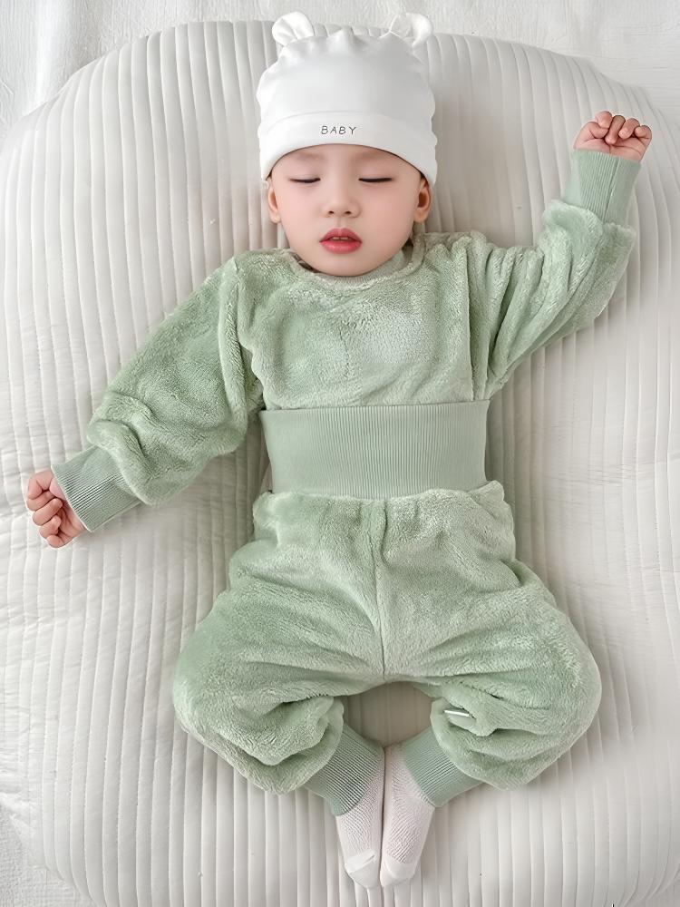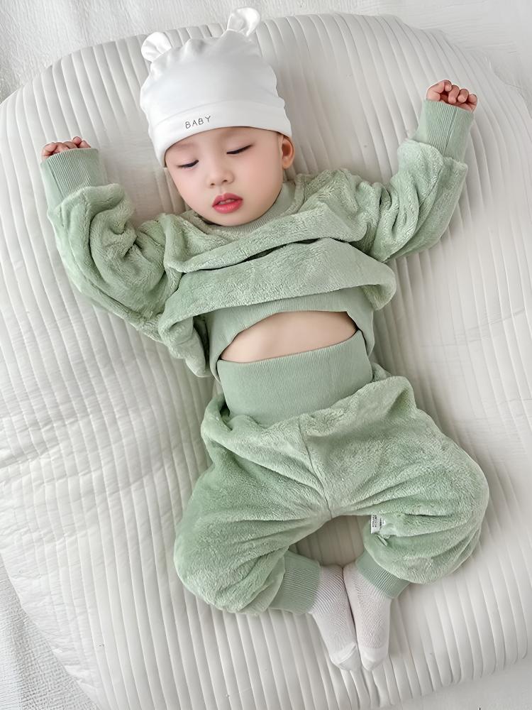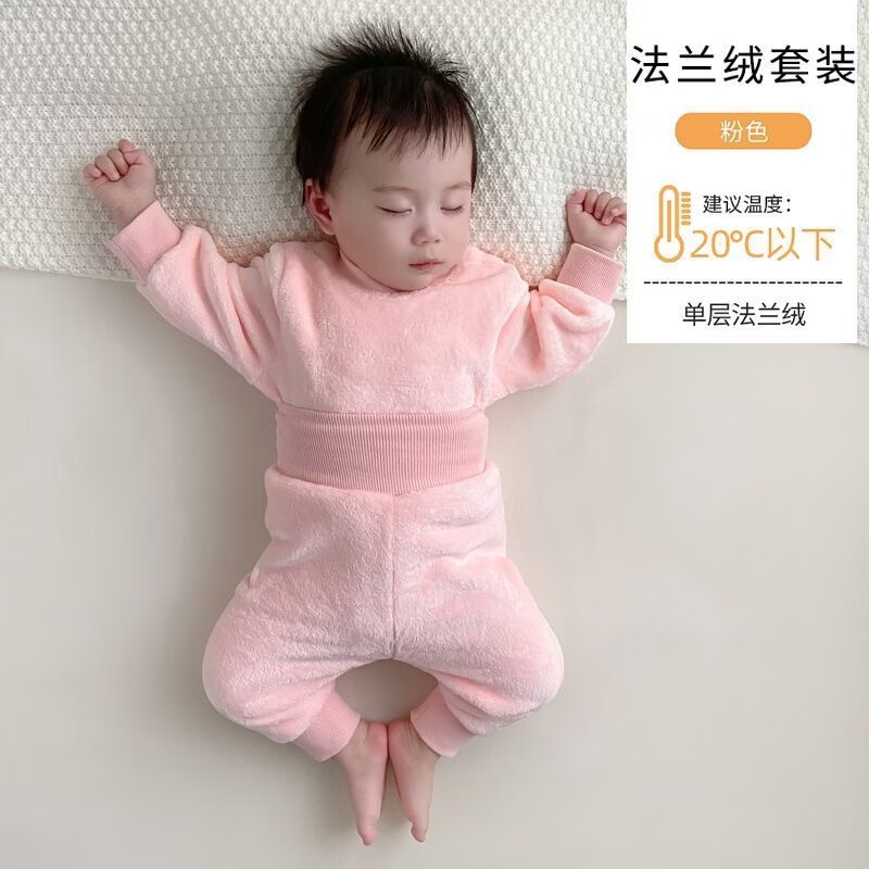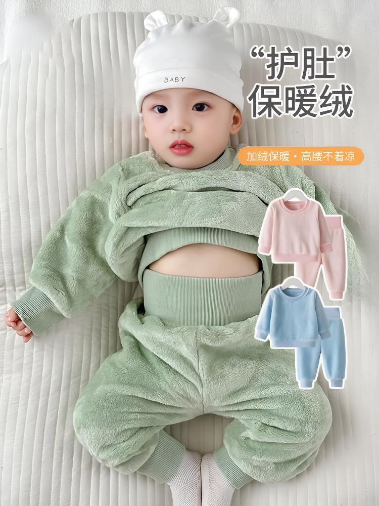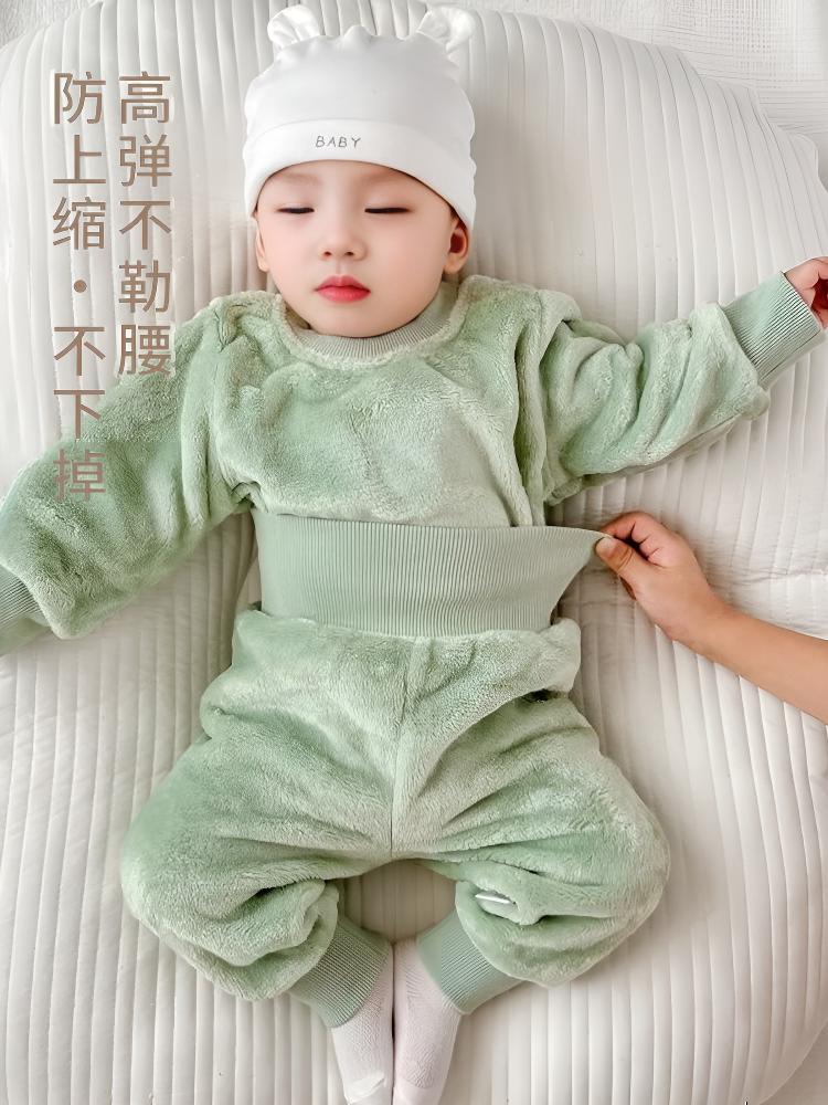 乐洛蒂秋冬款婴儿法兰绒宝宝睡衣套装宝宝加绒加厚保暖冬季珊瑚绒衣服 【护肚套装】浅蓝色 100 建议身高90-100cm