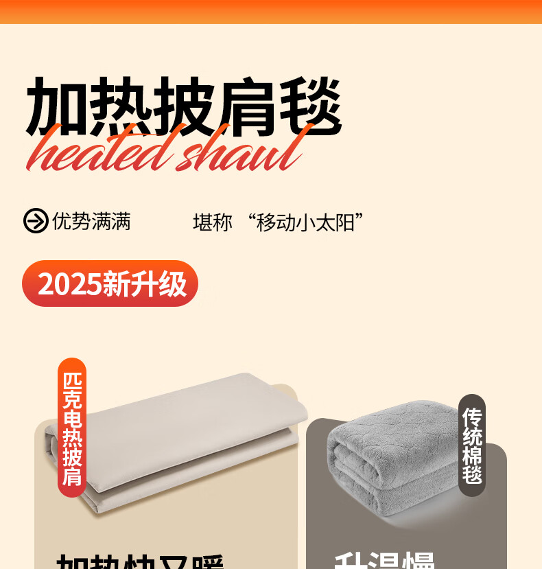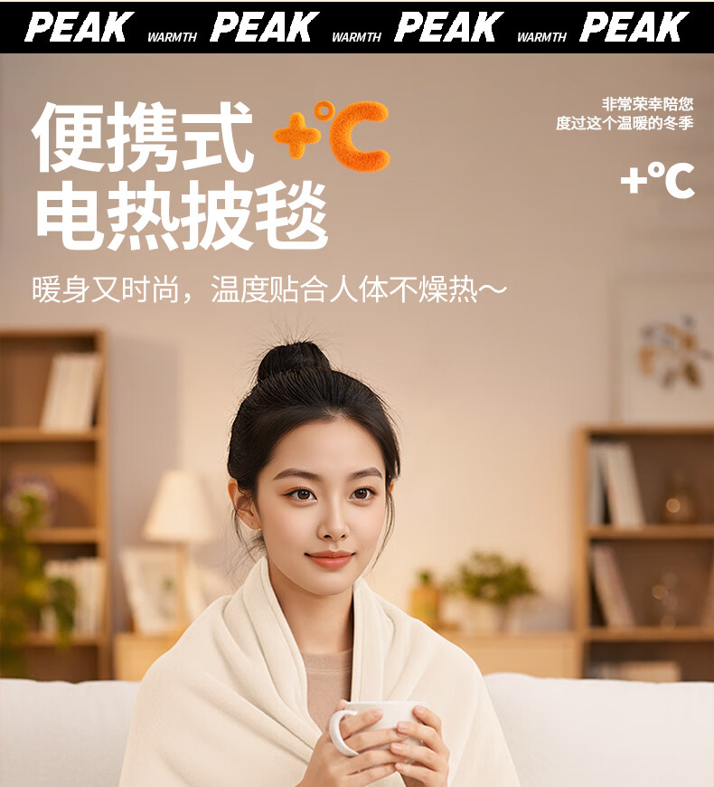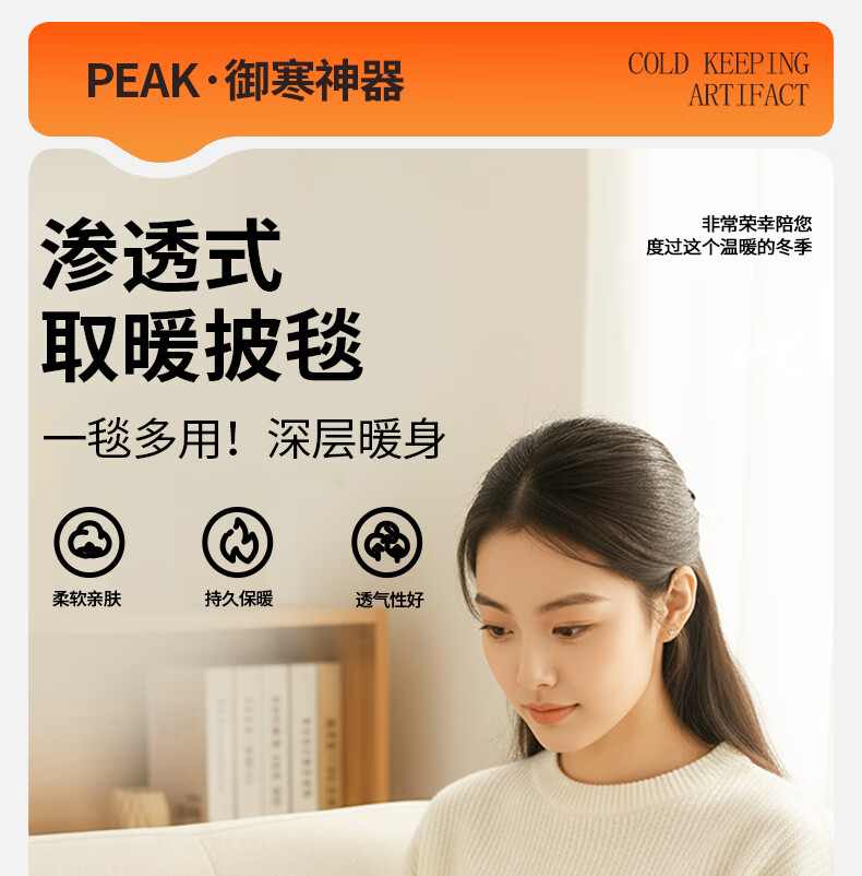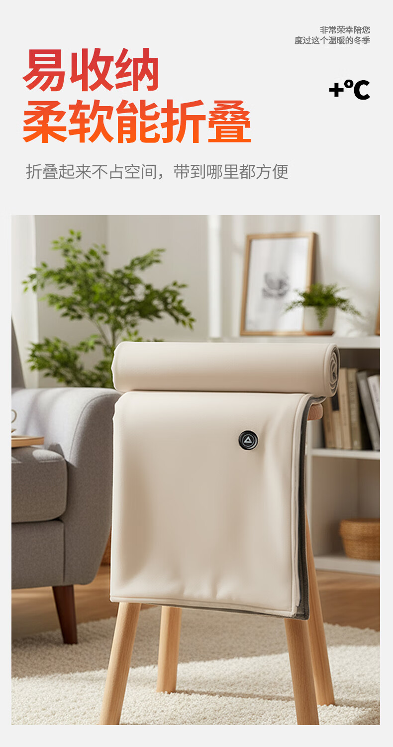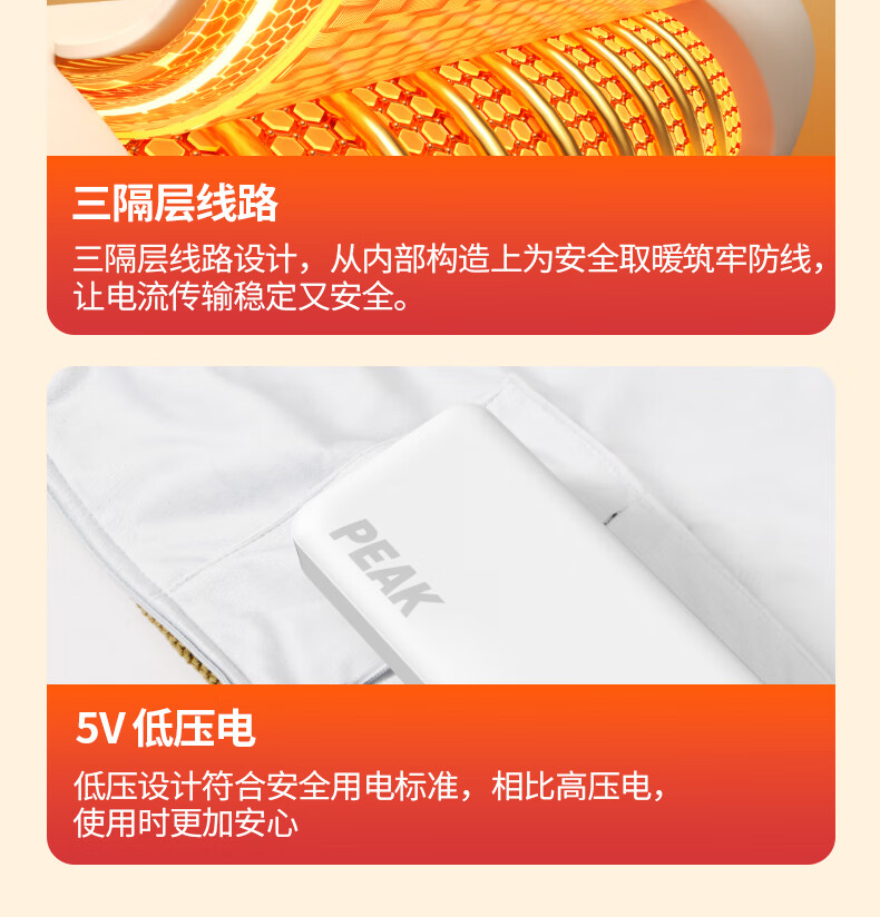 匹克冬季室内办公室电热披肩便携取暖神器保暖可水洗加大4区发热 杏色