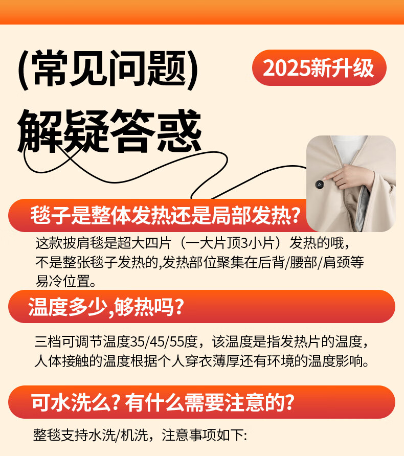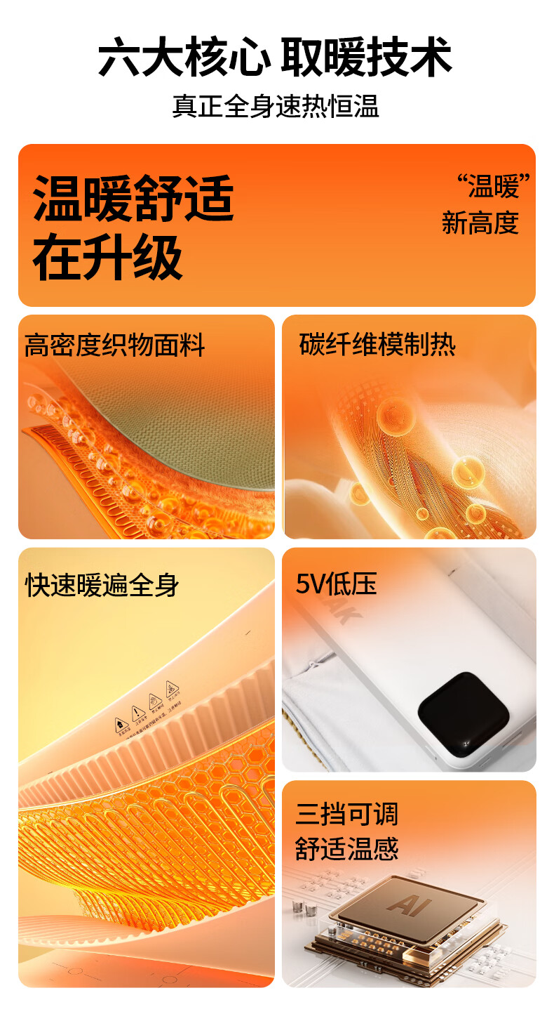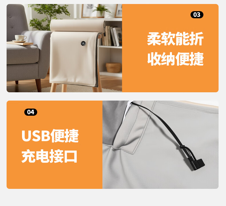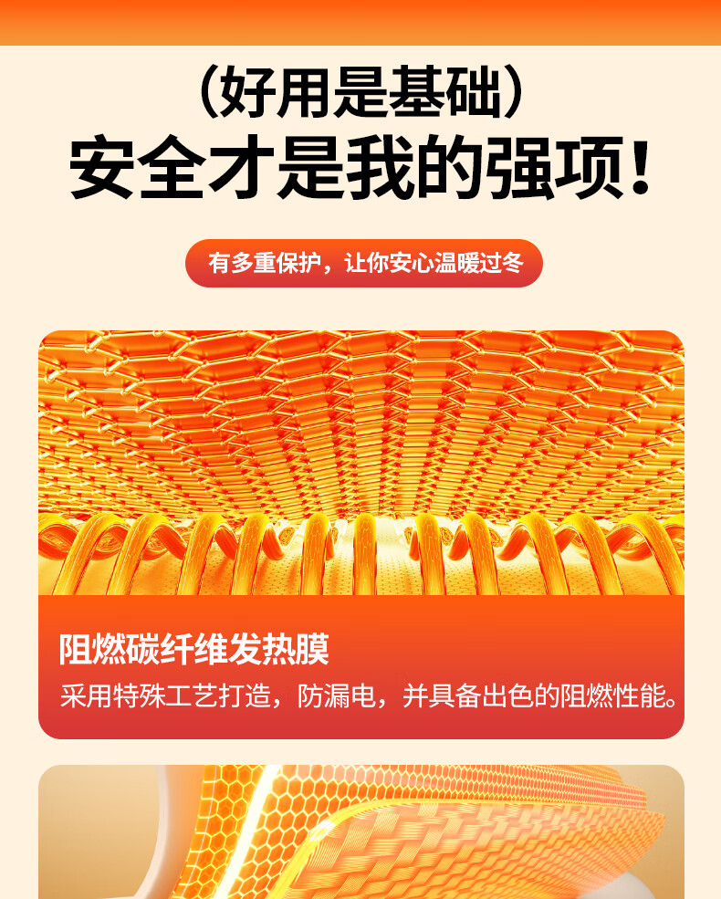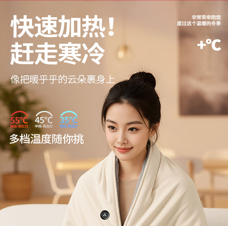 匹克冬季室内办公室电热披肩便携取暖神器保暖可水洗加大4区发热 杏色