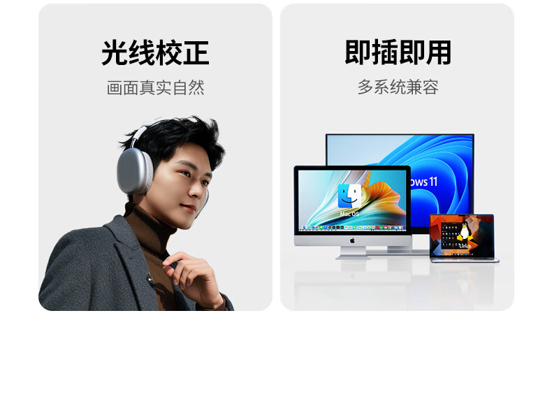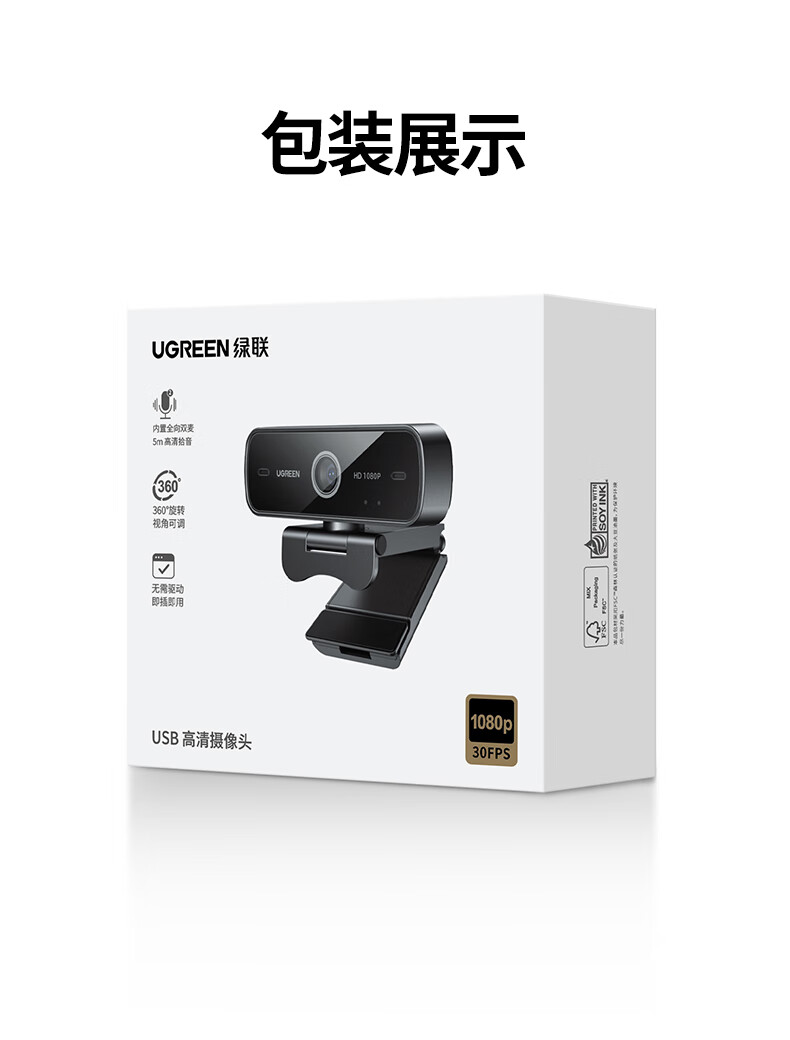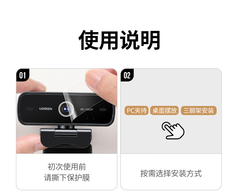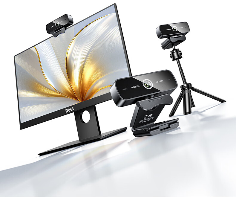 绿联USB外置电脑摄像头1080P高清画质 广角双麦克风 台式机笔记本电脑视频通话办公会议面试考试75587