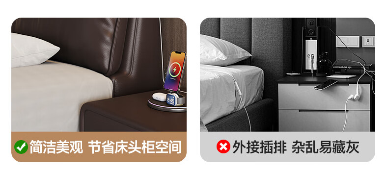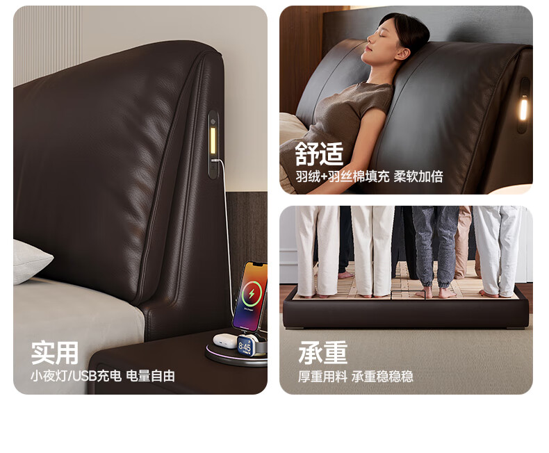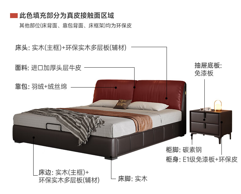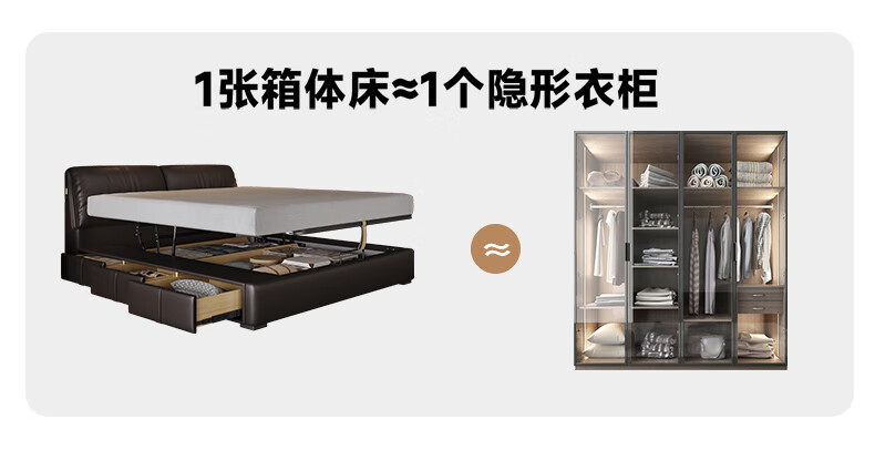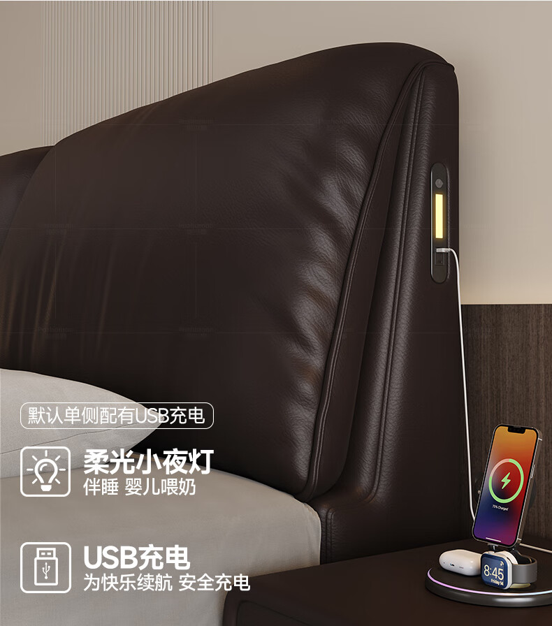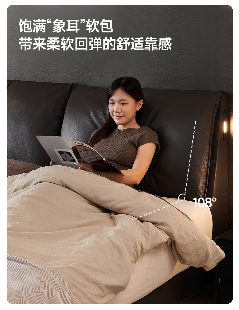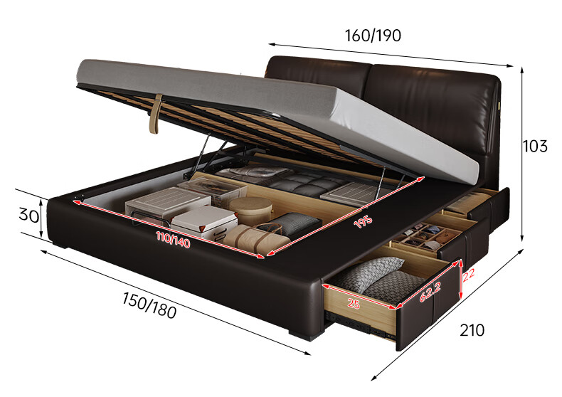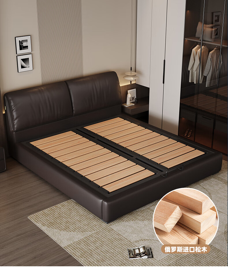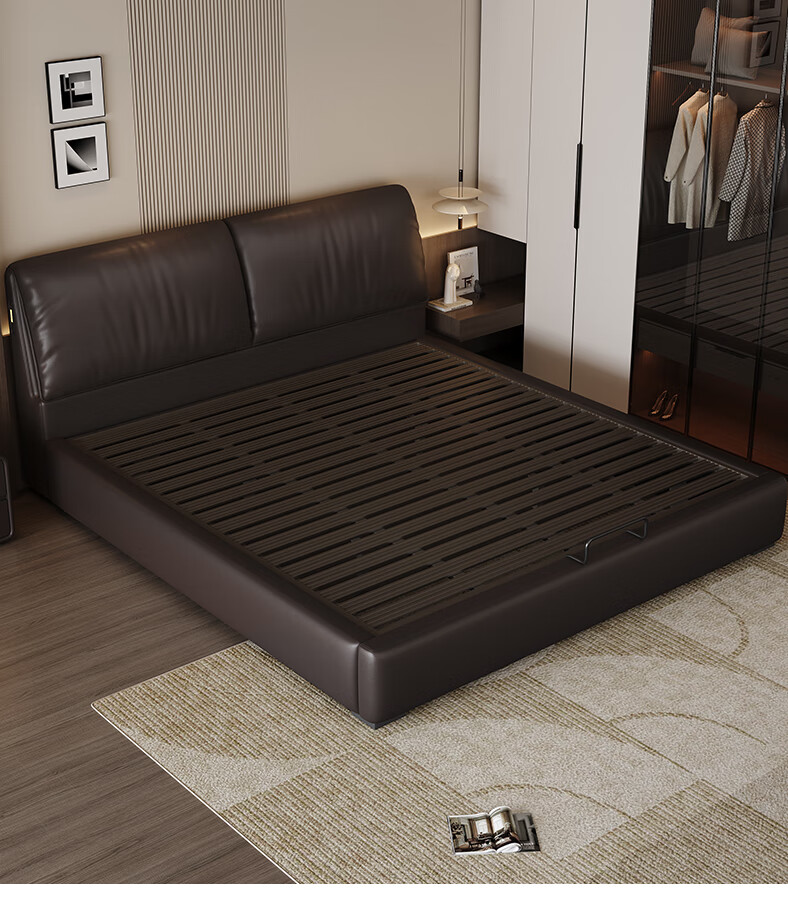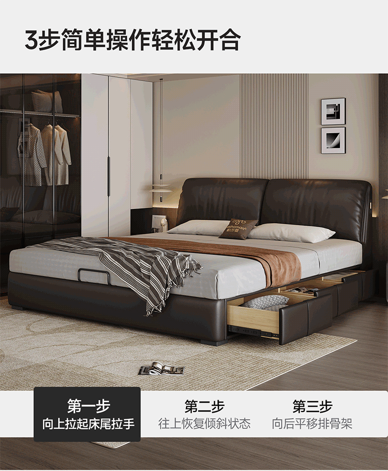 帕沙曼高箱床储物床大象耳朵真皮床现代简约主卧大床软包床双人床8066CP 【15CM钢木排骨架】单床 平移储物带三抽1800mm*2000mm