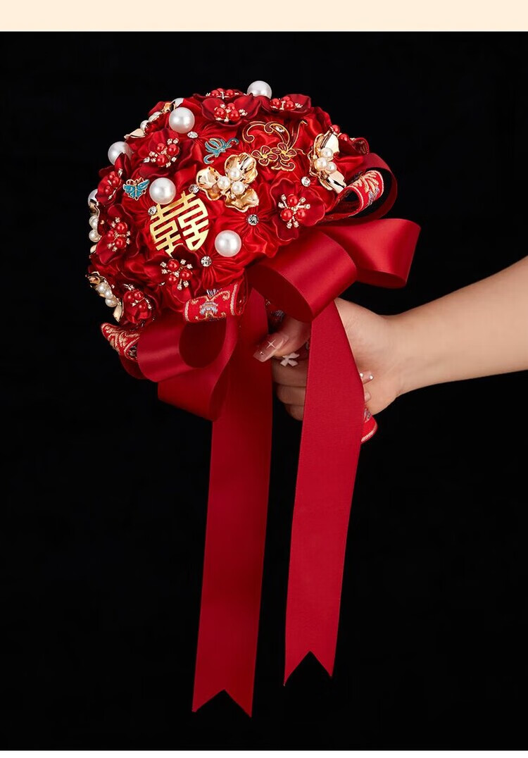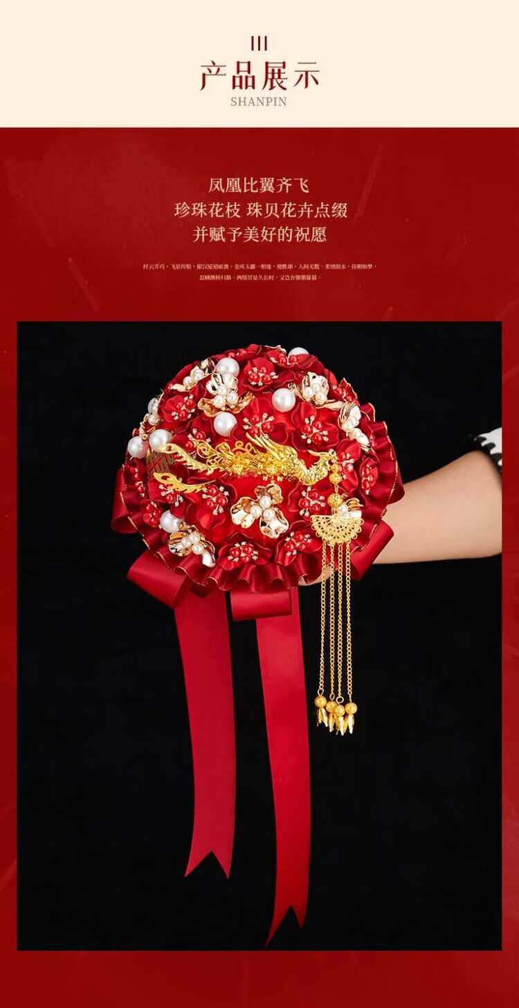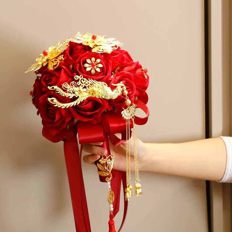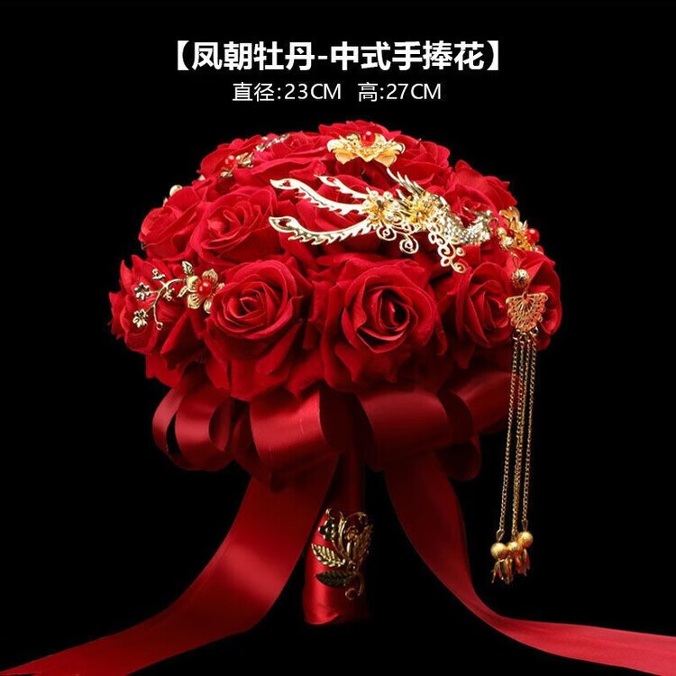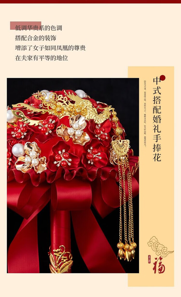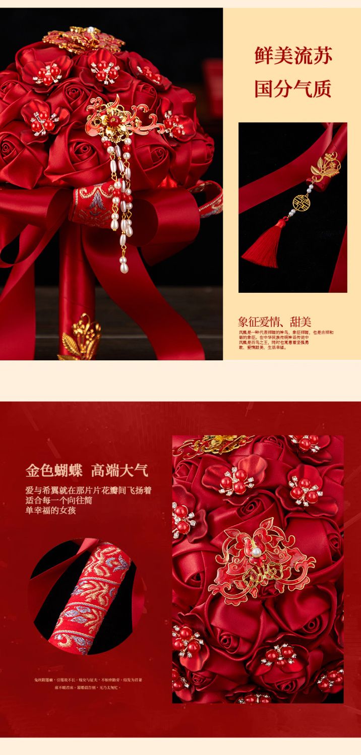 OYKTN手捧花新郎接亲国潮风新娘捧花diy高级仿真玫瑰花束秀禾服搭配 凤凰于飞+胸花一对-成品发货