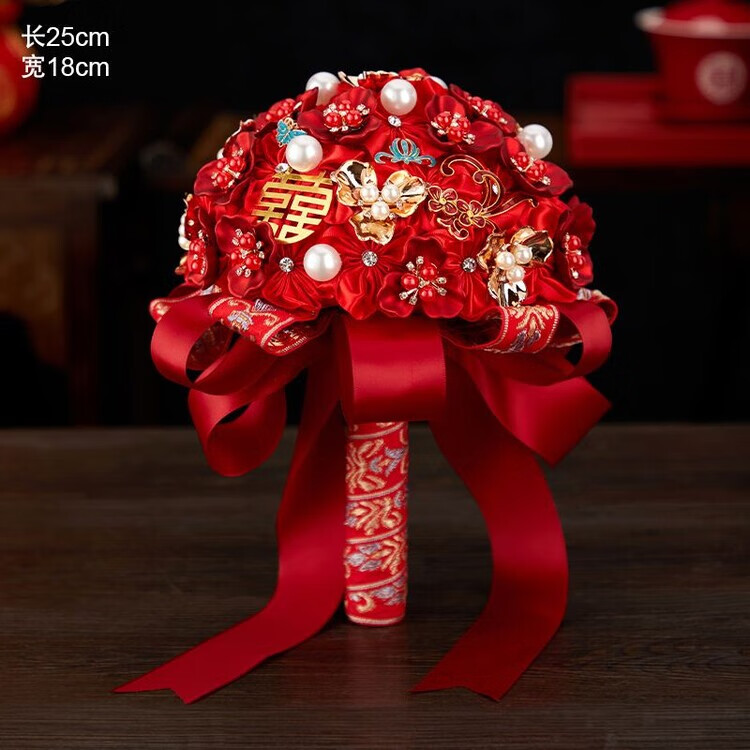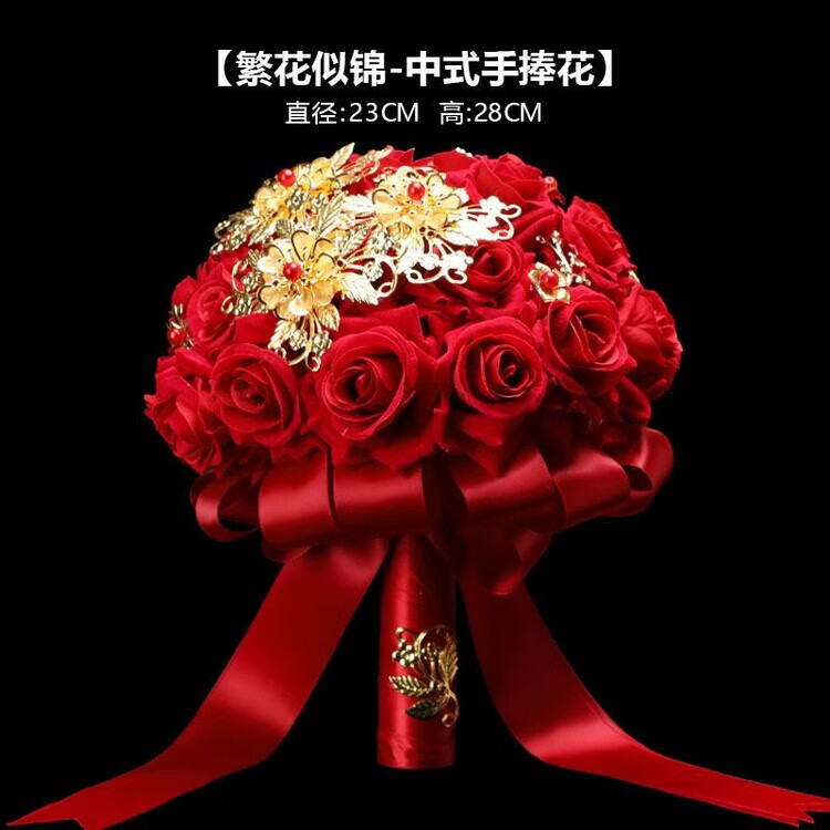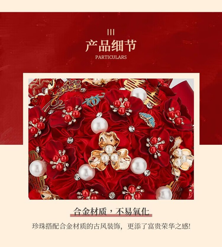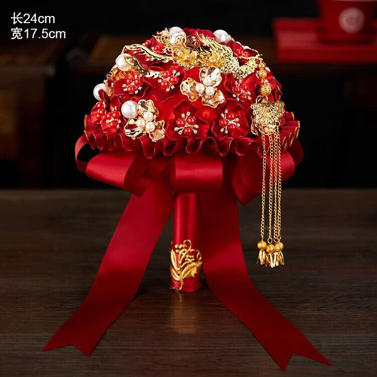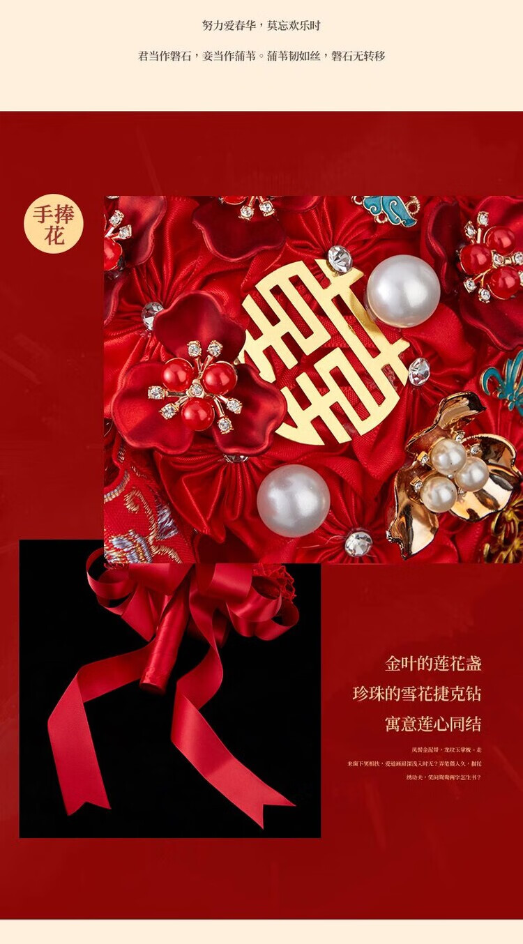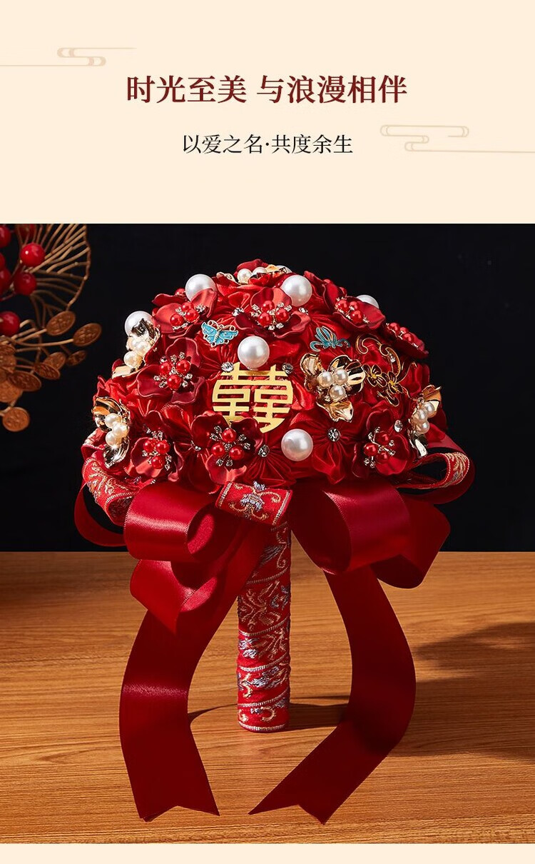 OYKTN手捧花新郎接亲国潮风新娘捧花diy高级仿真玫瑰花束秀禾服搭配 凤凰于飞+胸花一对-成品发货