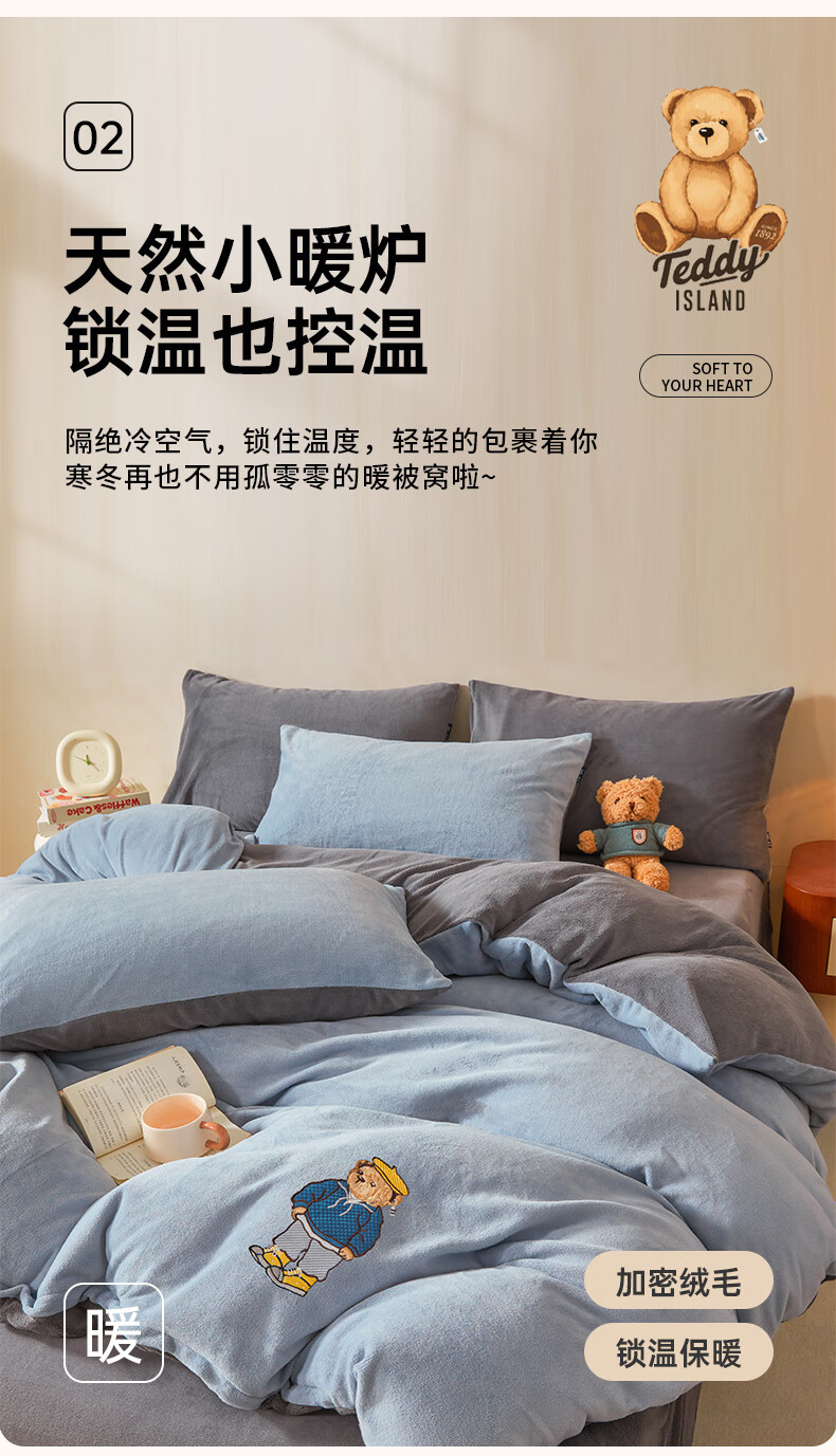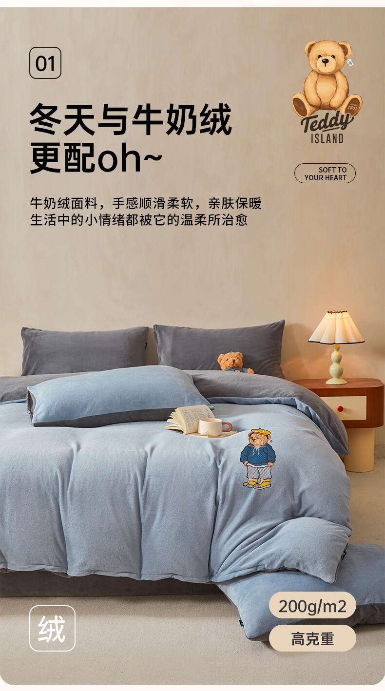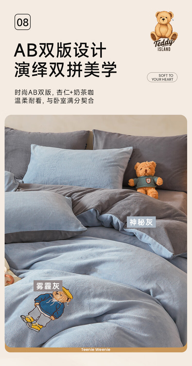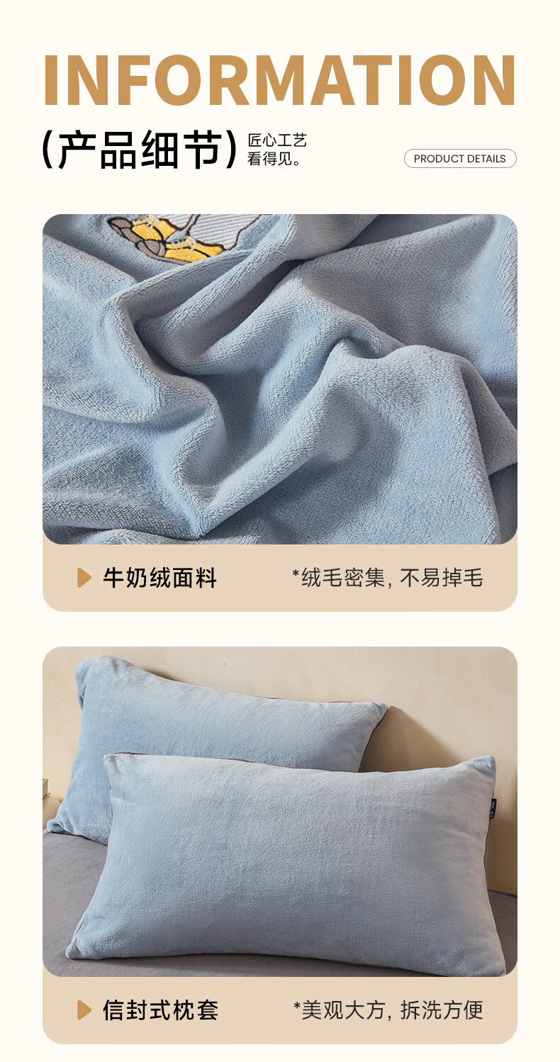 VJE牛奶绒四件套床上加厚毛绒珊瑚绒水晶绒双面被套法兰绒床单三件套 IP卡通-雾霾灰+神秘灰 四件套1.8m 床笠款 -被套200*230cm