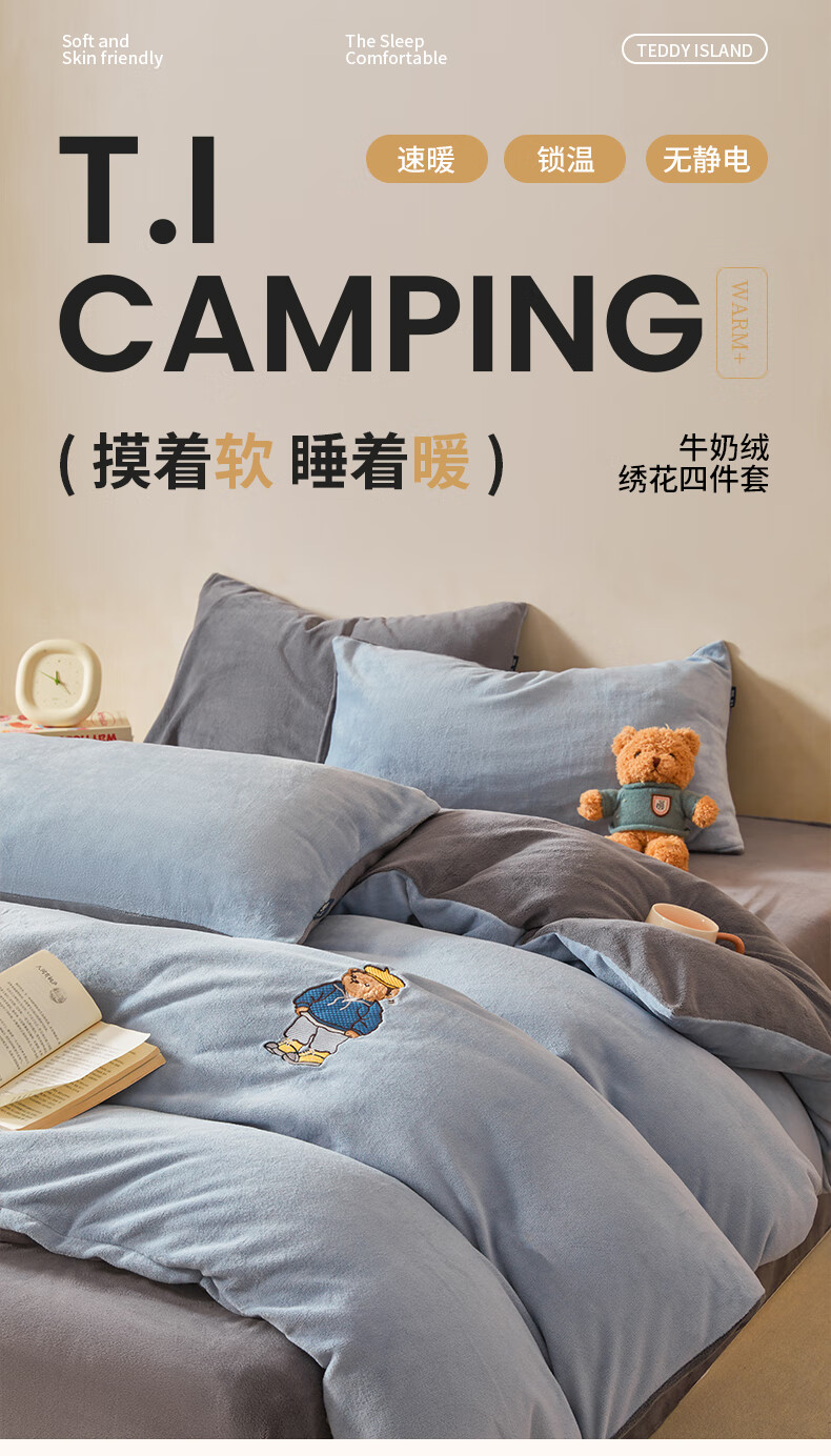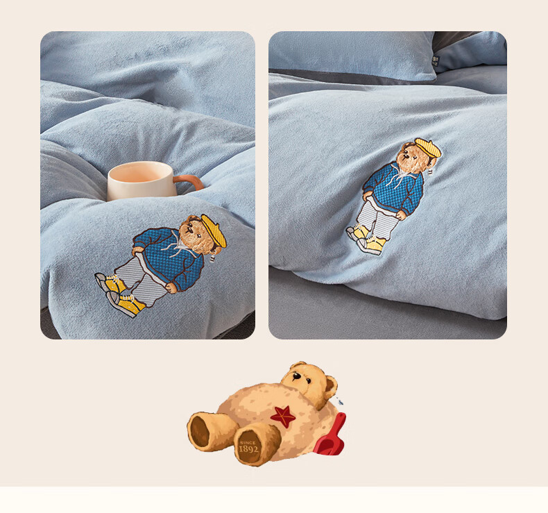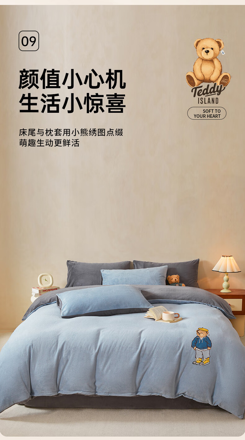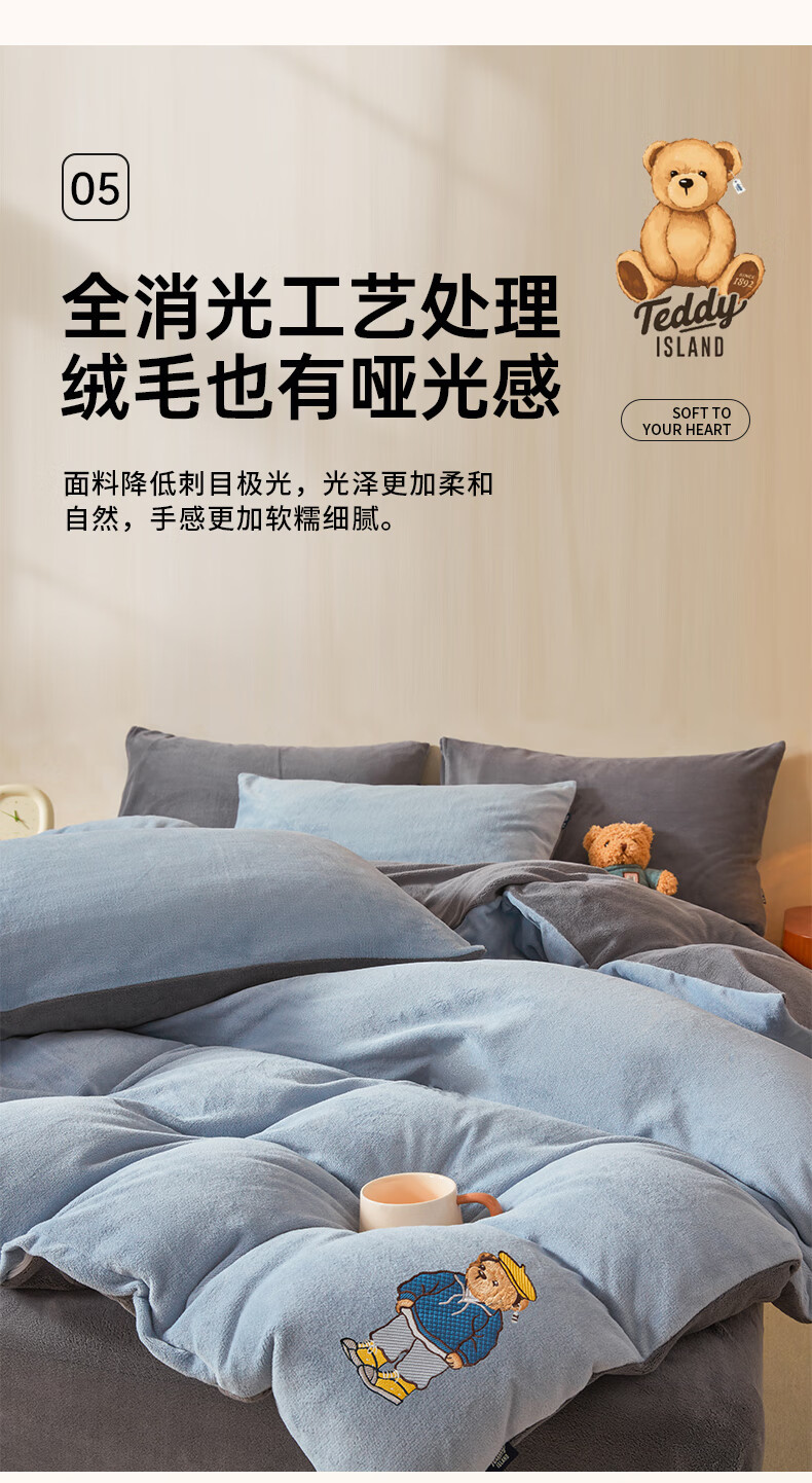 VJE牛奶绒四件套床上加厚毛绒珊瑚绒水晶绒双面被套法兰绒床单三件套 IP卡通-雾霾灰+神秘灰 四件套1.8m 床笠款 -被套200*230cm