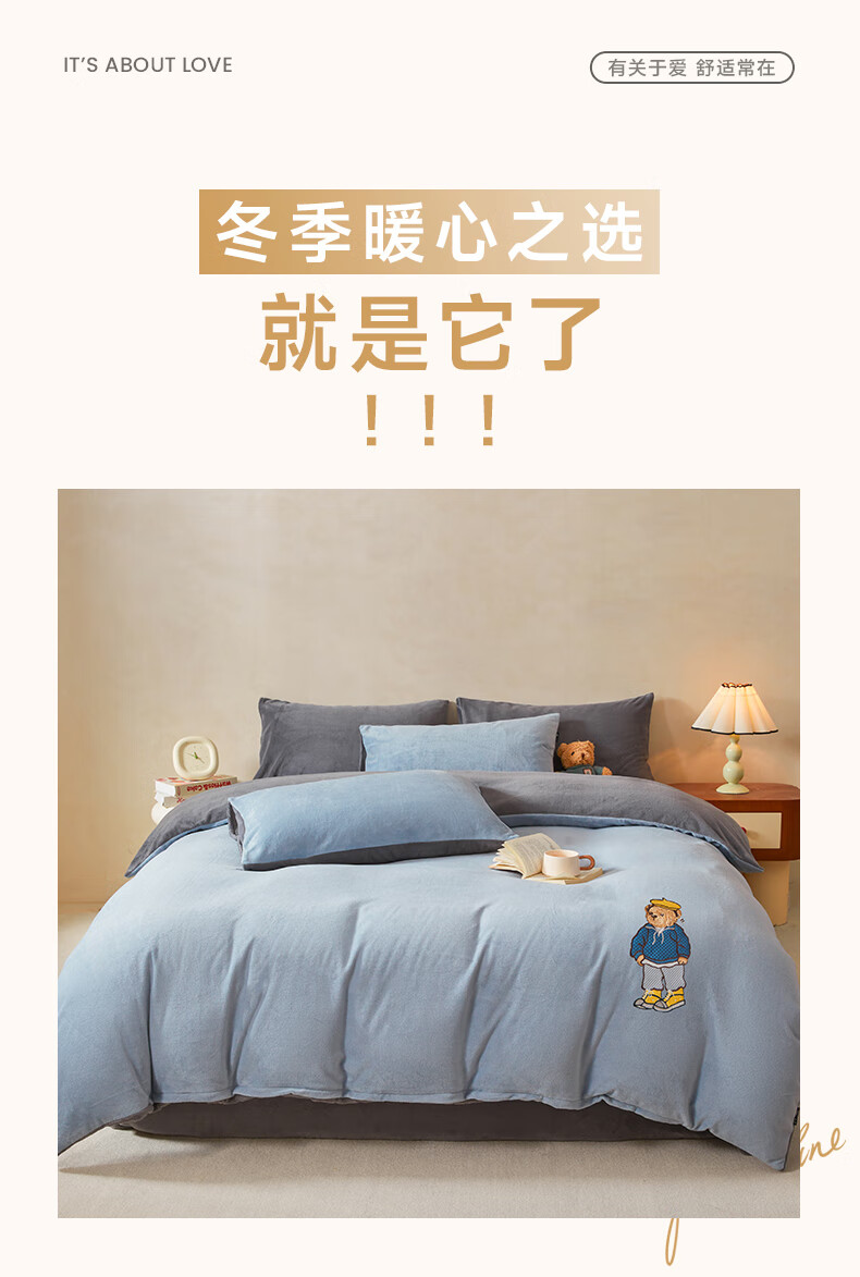 无印良品冬季牛奶绒床上四件套 法兰绒1.8米双面绒床品双人被套200*230cm床单