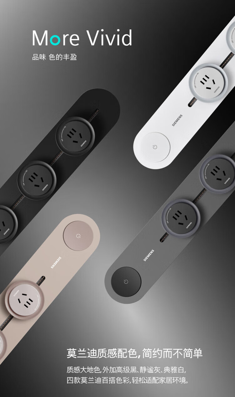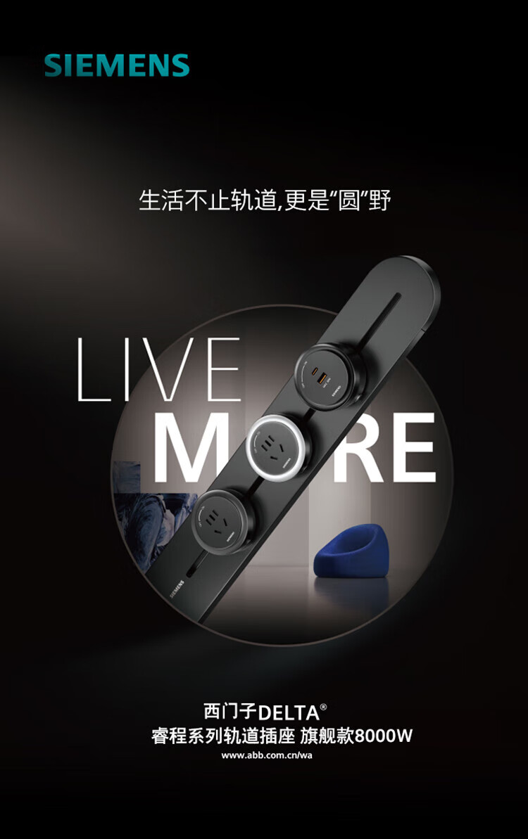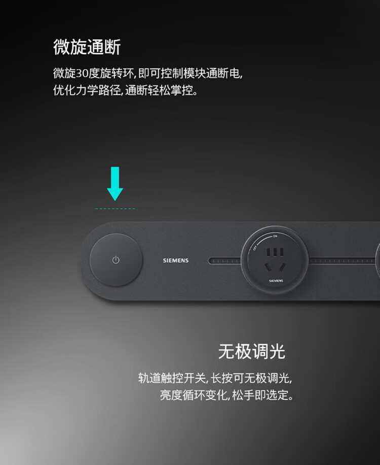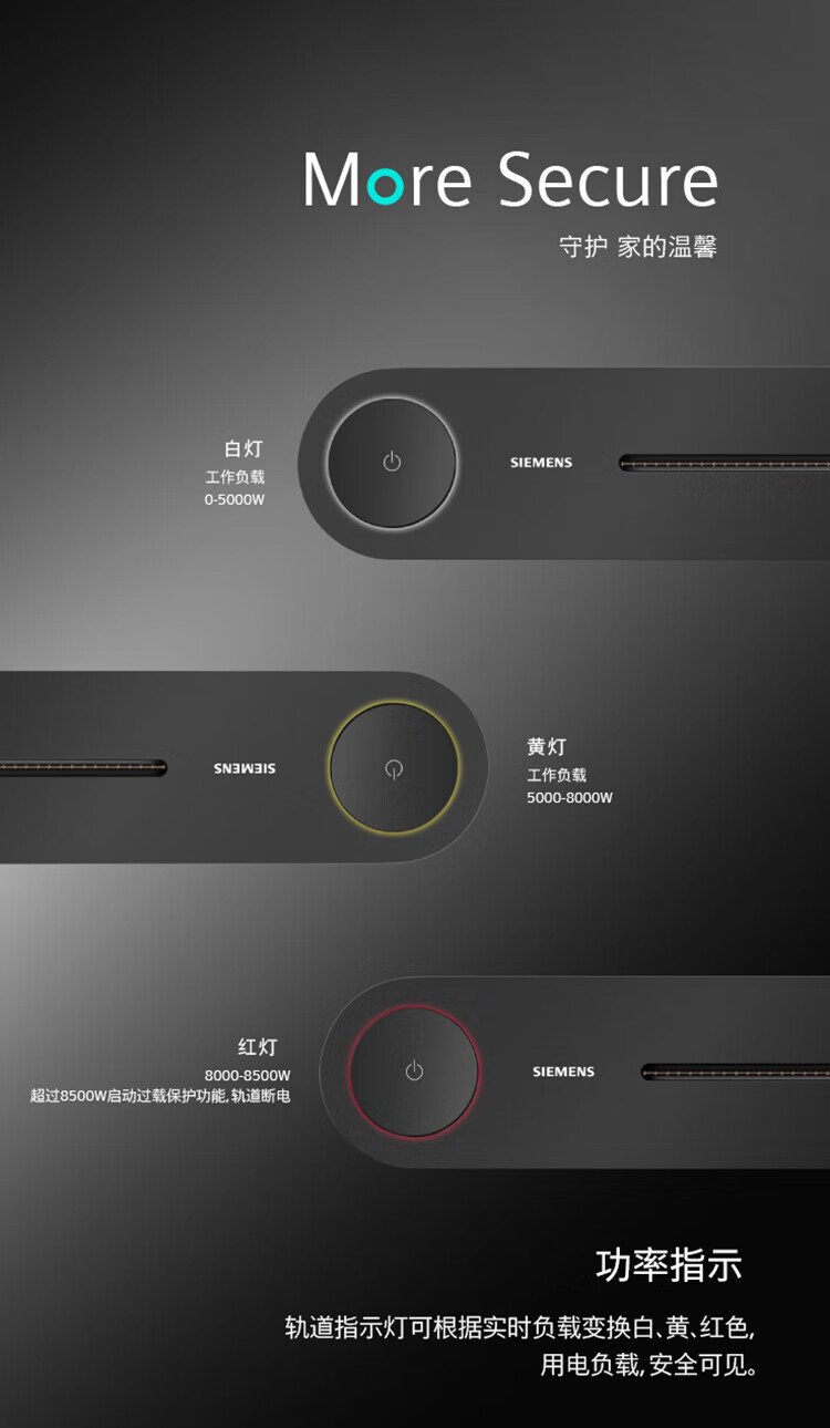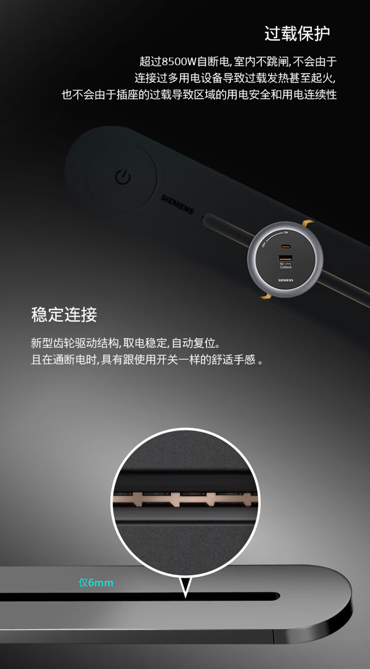 西门子(SIEMENS)轨道插座8000W大功率 可移动明装墙壁接线板电力插座导轨 旗舰款 高端款黑色0.6米轨道+3个五孔插座