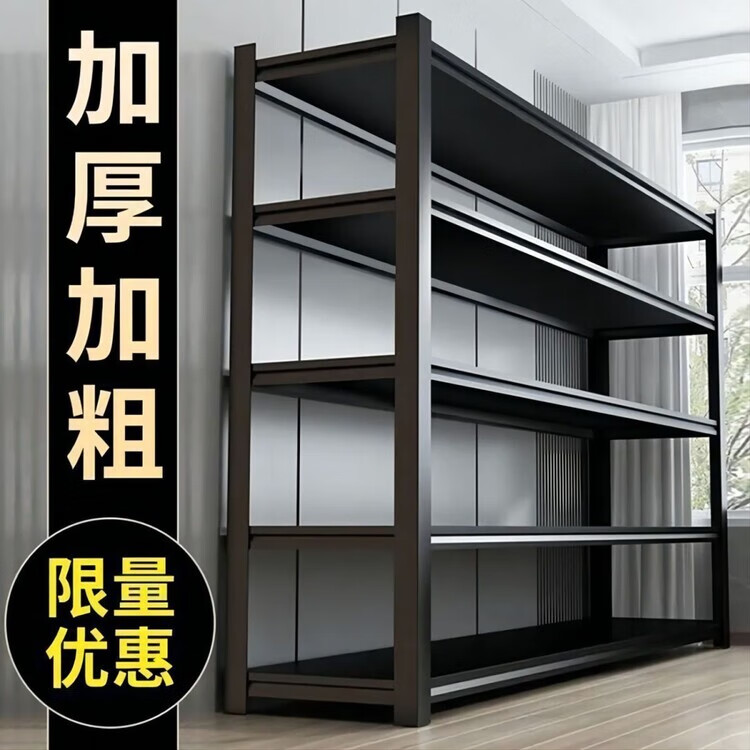 简漾加厚立柱仓储货架置物架家用多层落地收纳架仓库超市厨房展示架 金属黑-4层高118cm 长60宽40cm