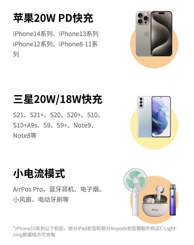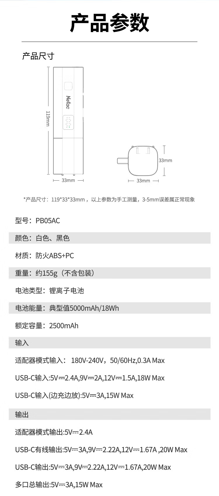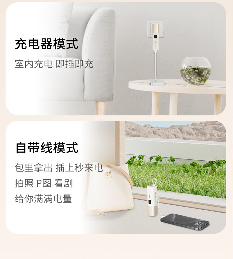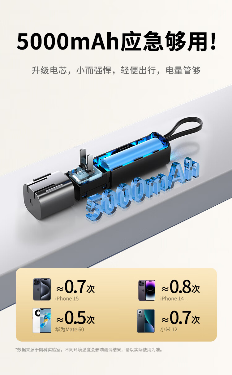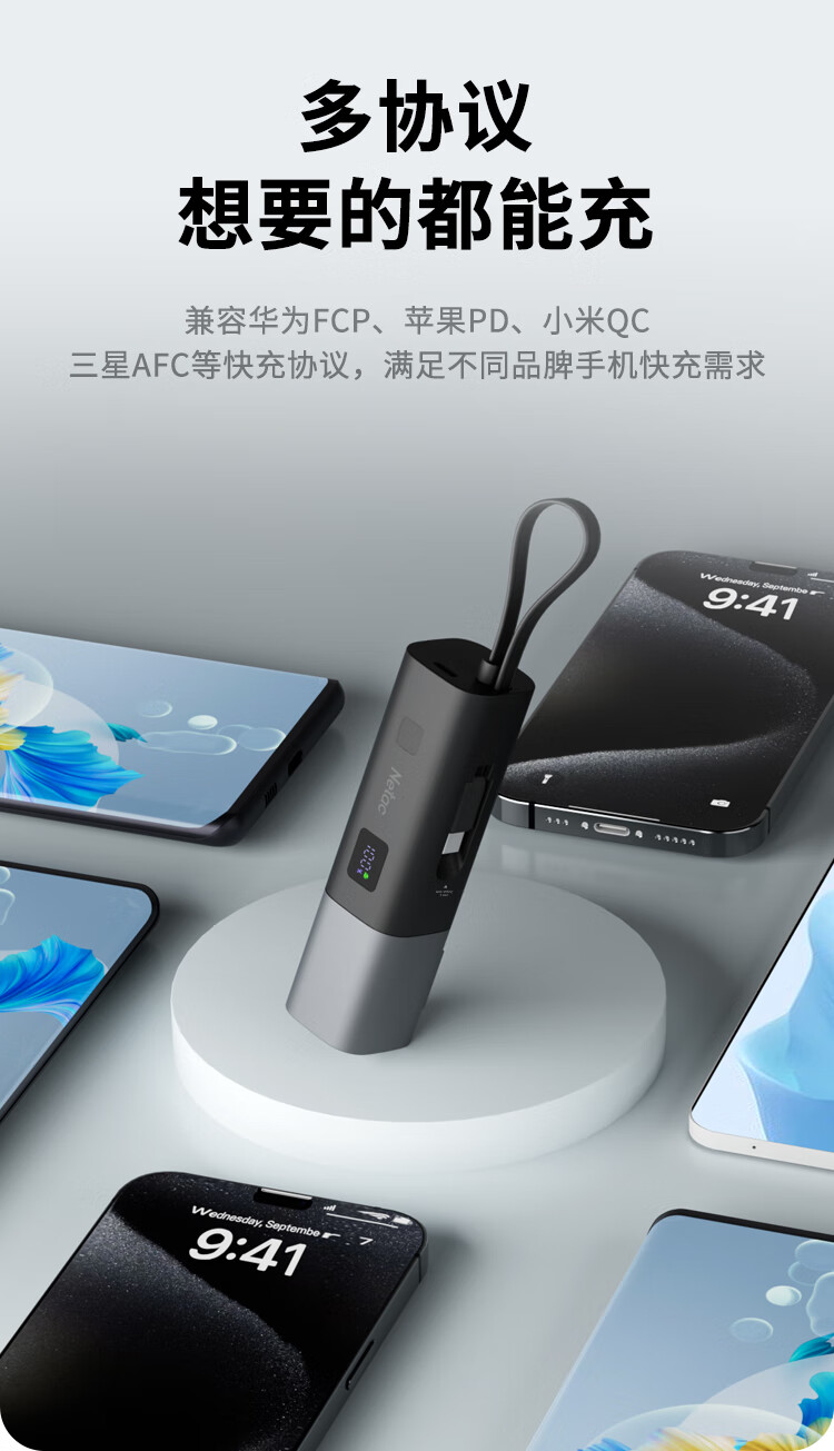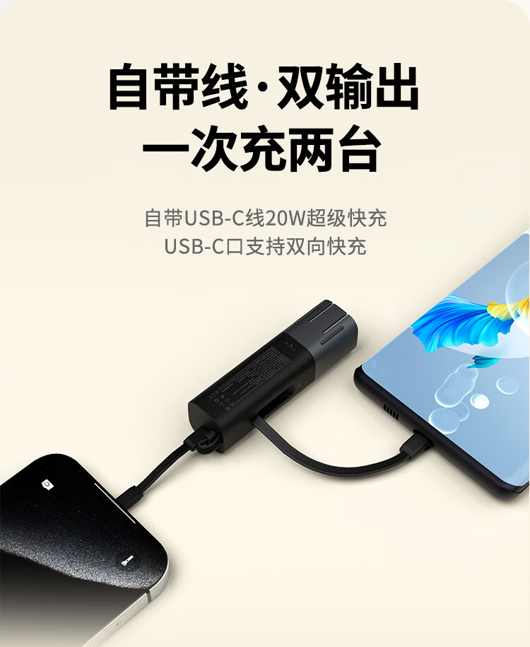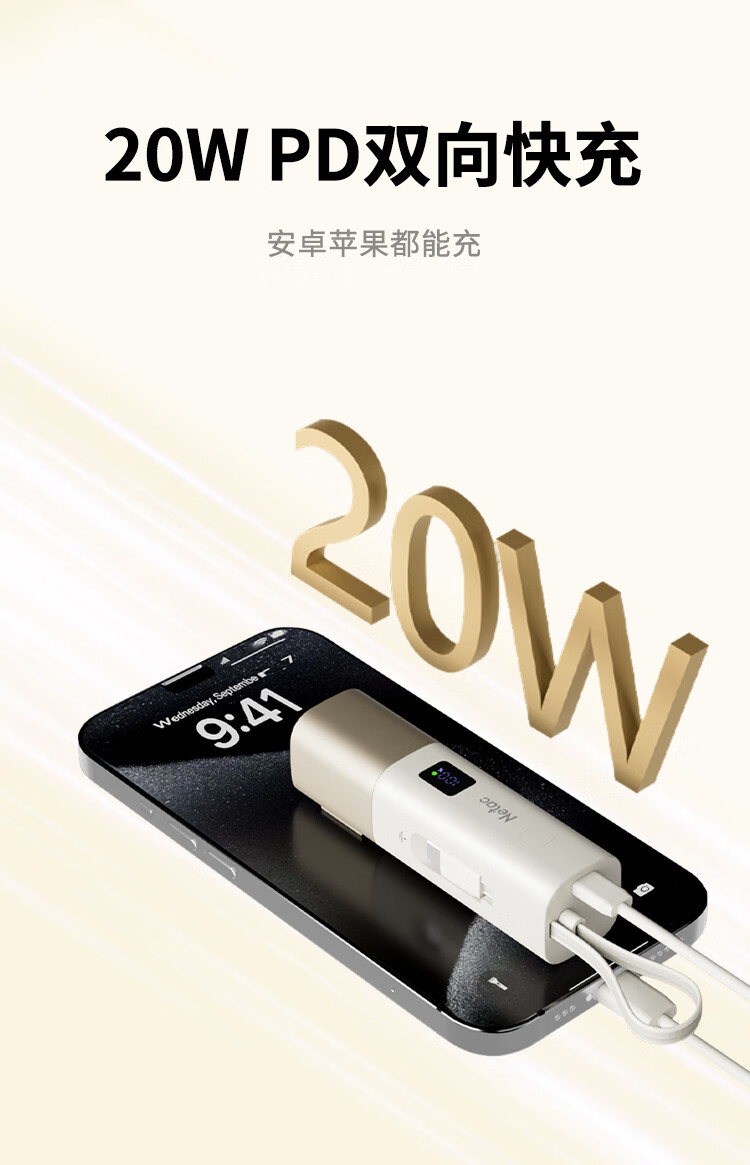 朗科(Netac)3C认证可上飞机三合一充电宝自带线20W双向快充带插头迷你便携苹果17可用小米华为手机移动电源黑