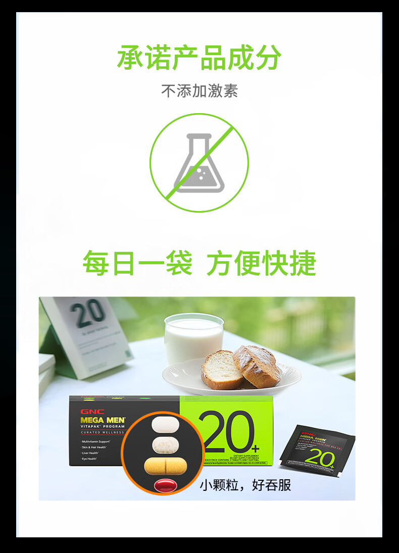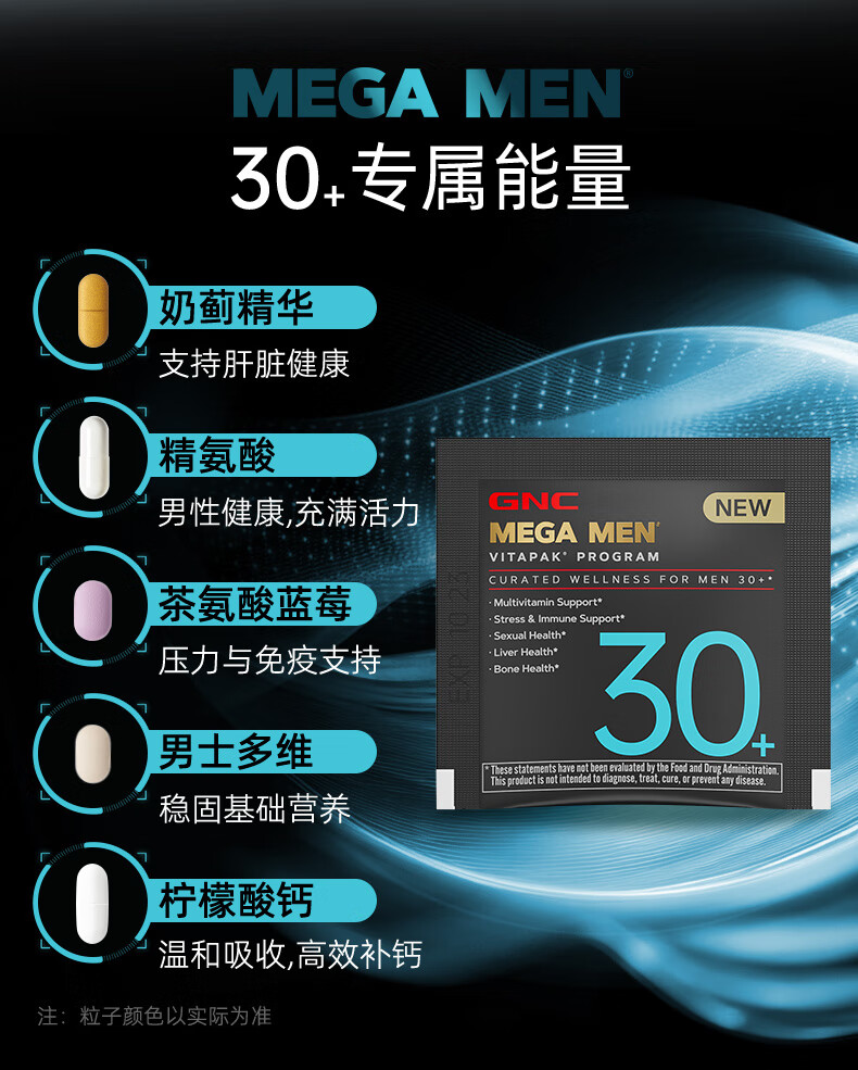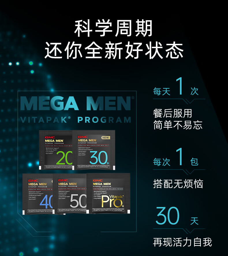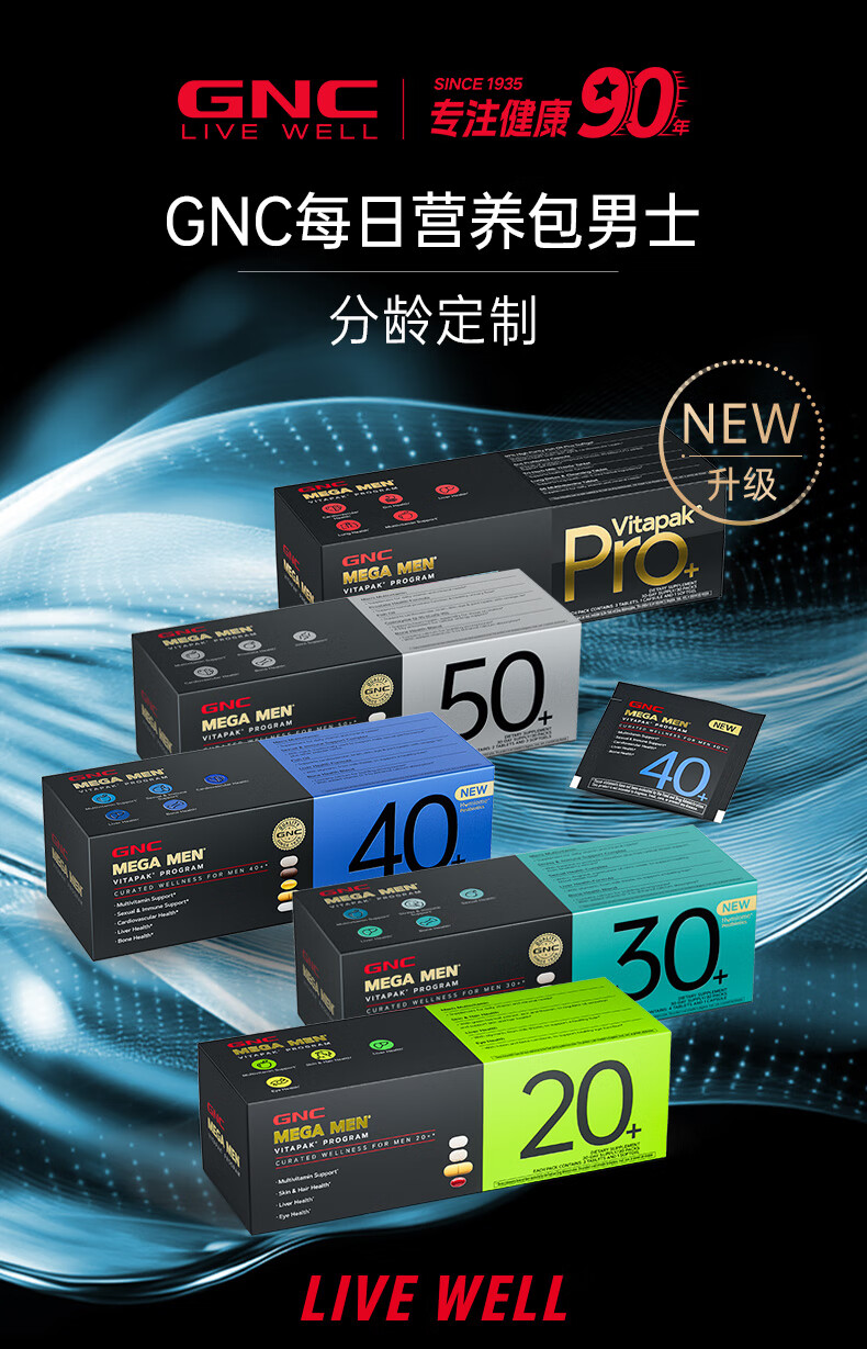 GNC健安喜 男性Vitapak每日营养包男士专属充电包复合维生素花少同款 【20+去油固发】30袋2026/2/28到期
