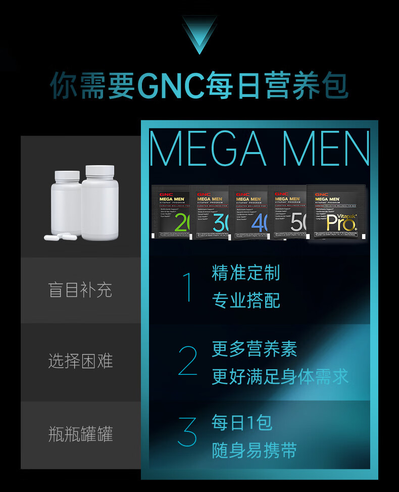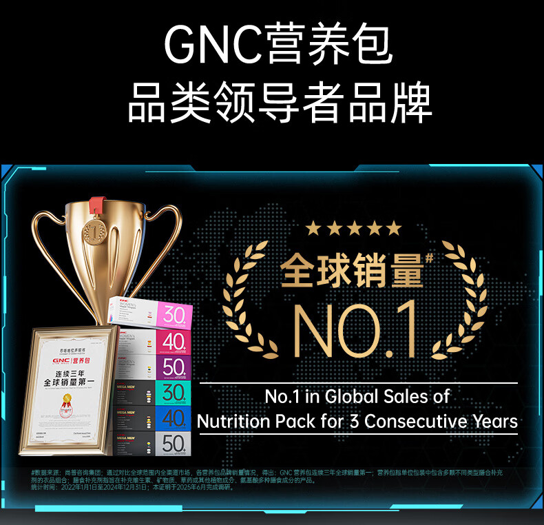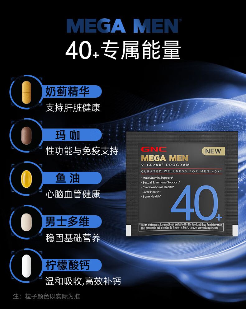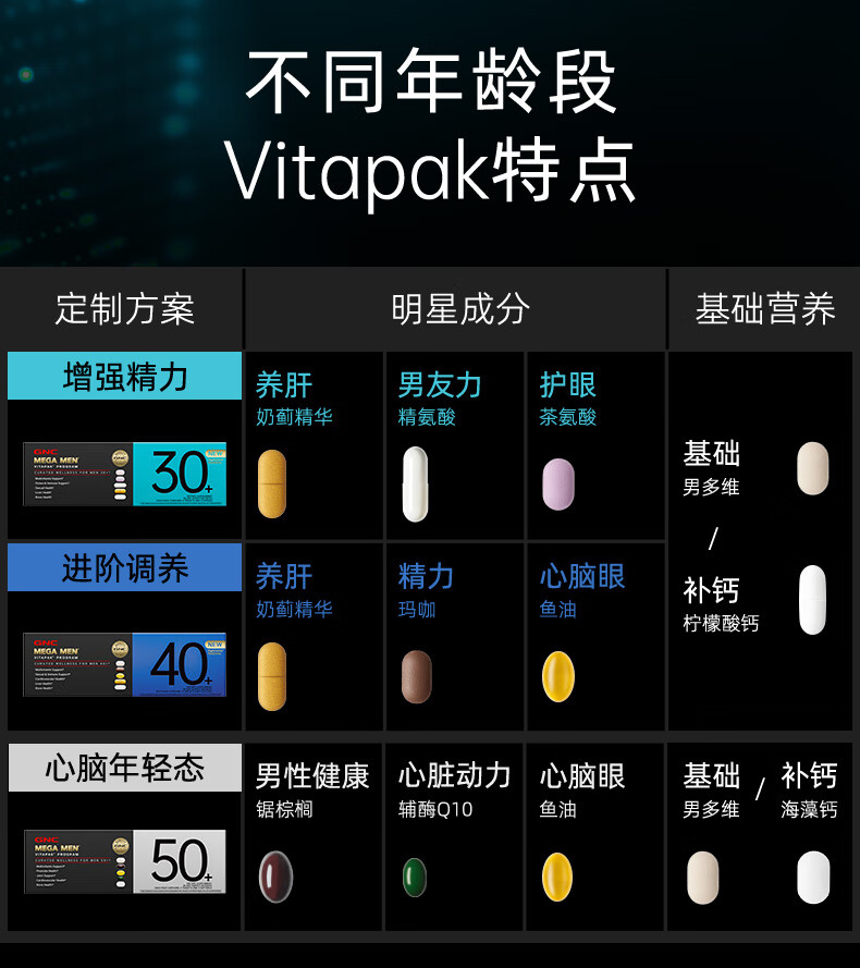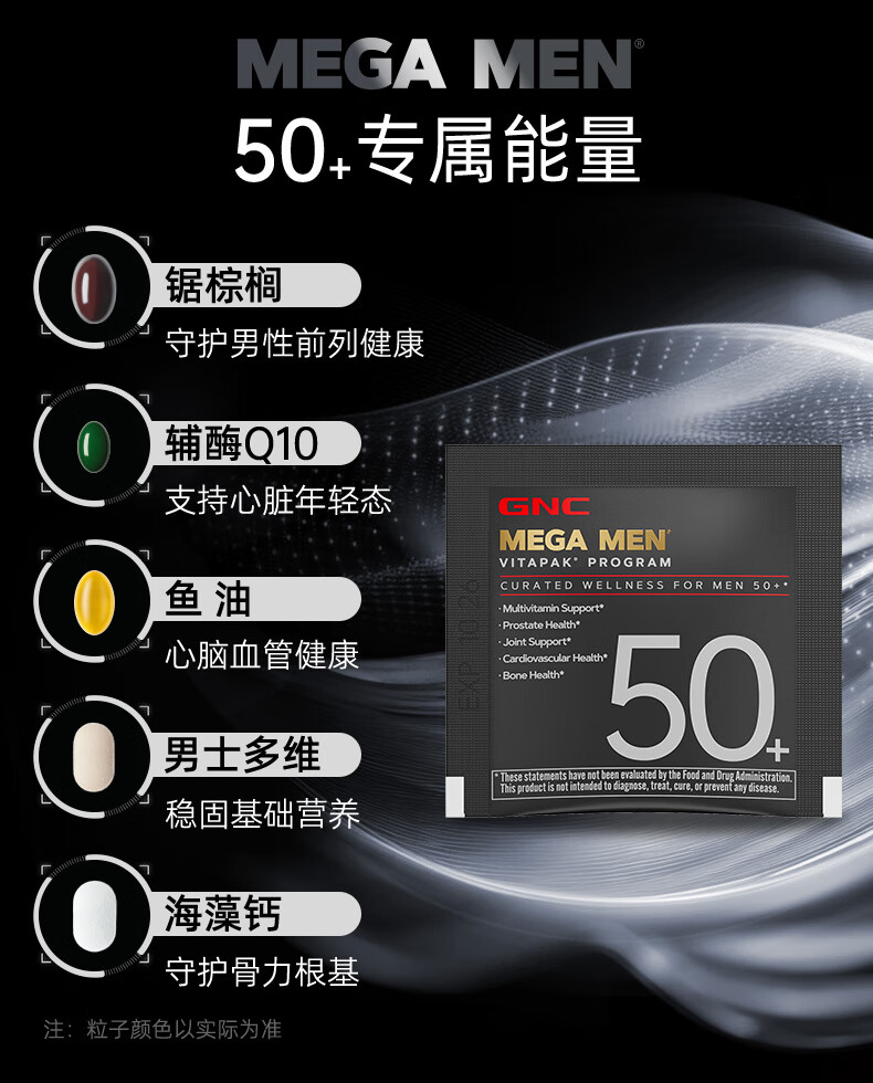 GNC健安喜 男性Vitapak每日营养包男士专属充电包复合维生素花少同款 【20+去油固发】30袋2026/2/28到期