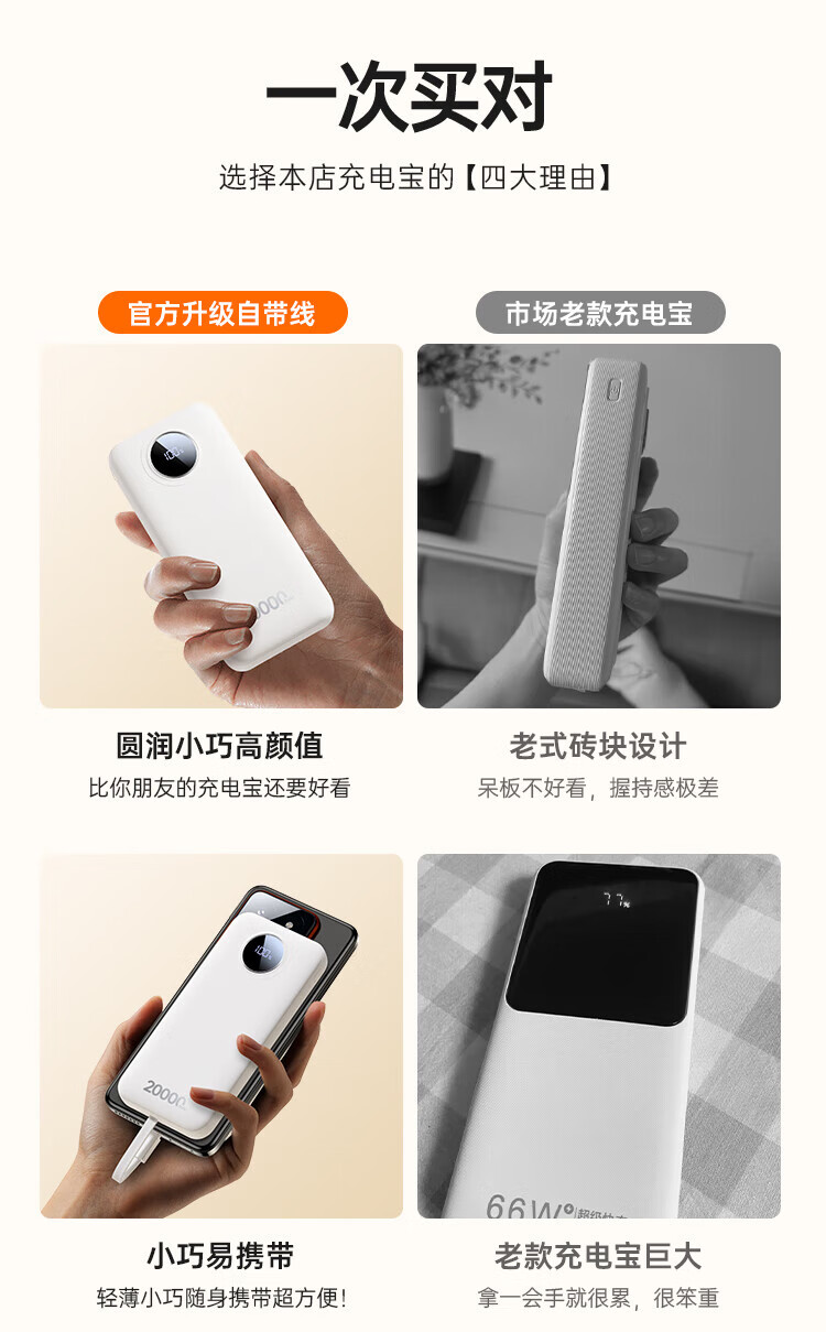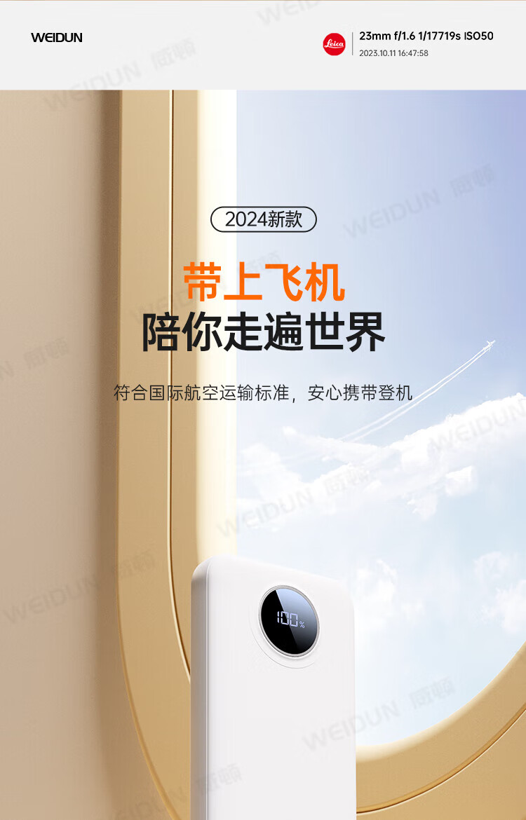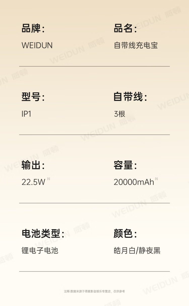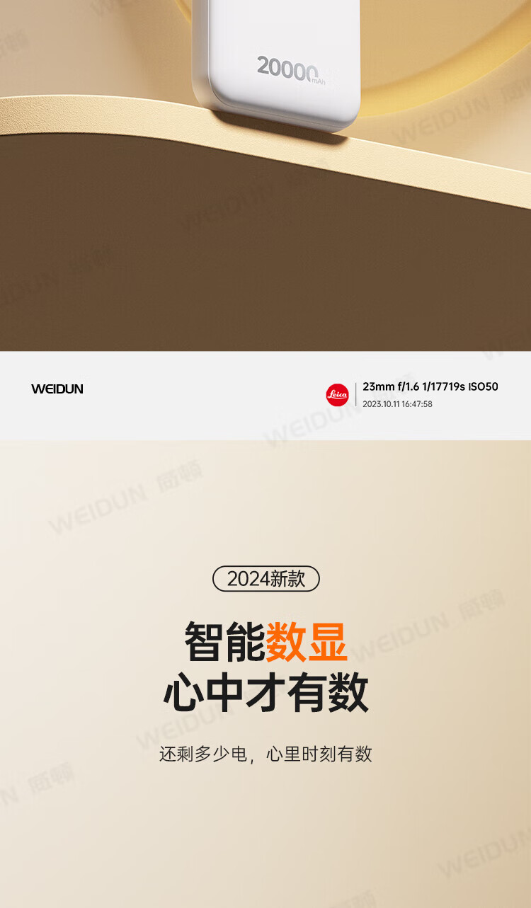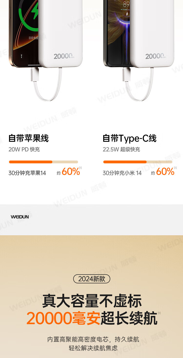 威顿【国家3C认证丨20000毫安】充电宝适用小米快充超大容量可上飞机十大排位自带线移动电源小巧便携 【皓月白】20000毫安+超级快充+提速999% 新国标3C双认证丨自带三快充线丨可上飞机高铁