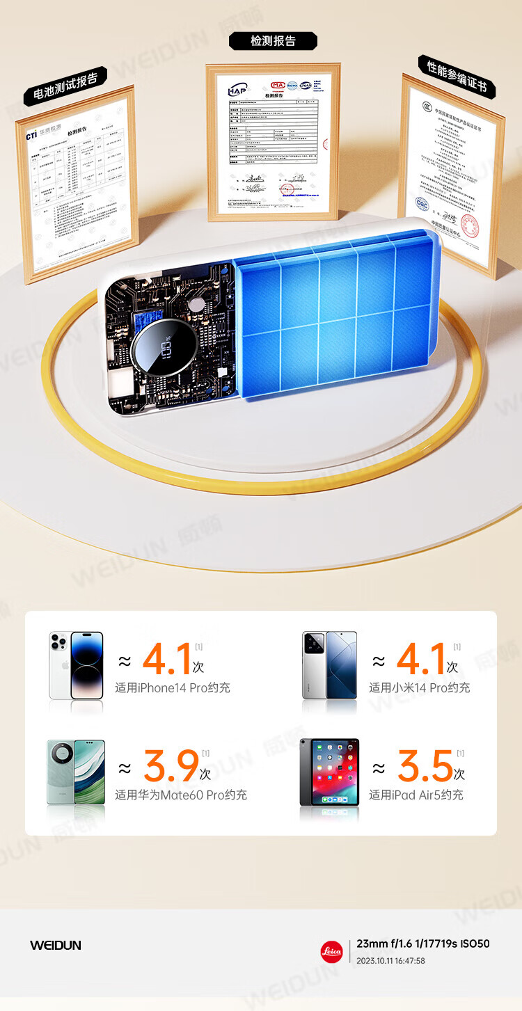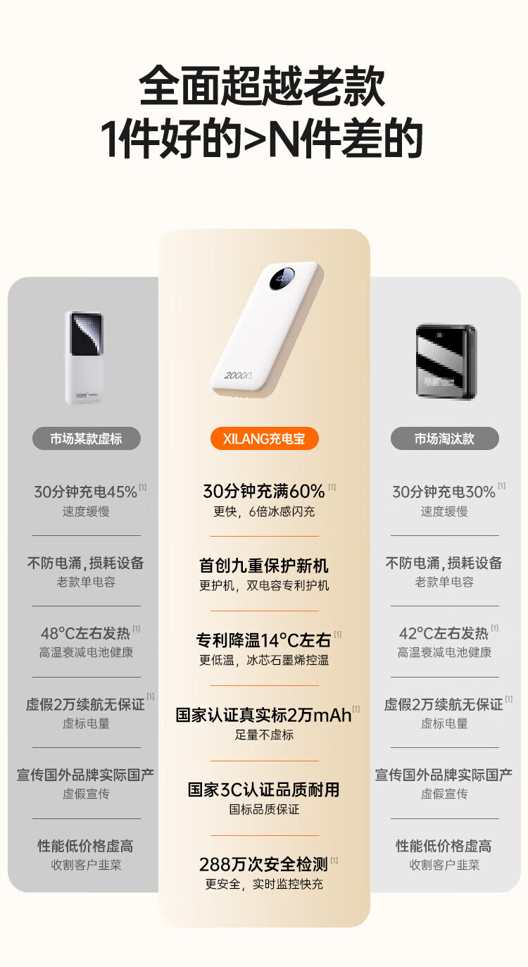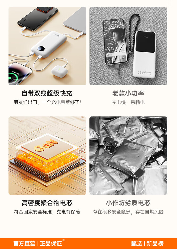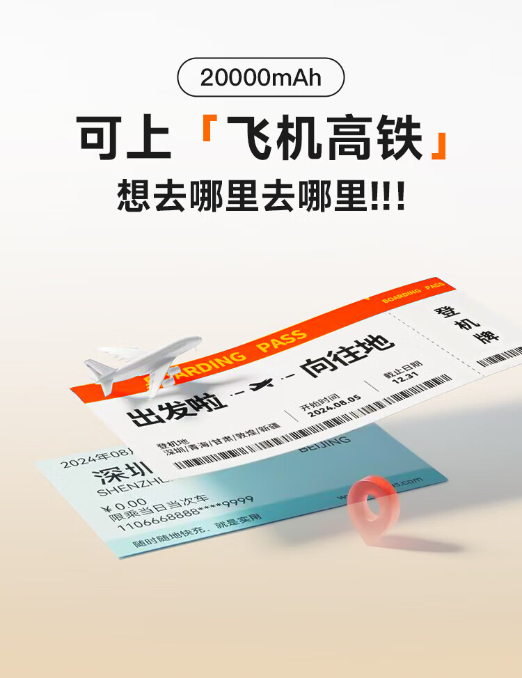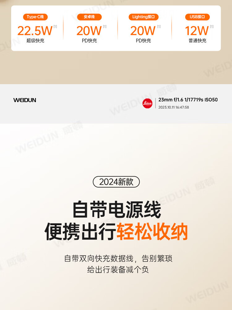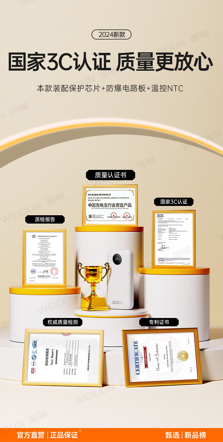 威顿【国家3C认证丨20000毫安】充电宝适用小米快充超大容量可上飞机十大排位自带线移动电源小巧便携 【皓月白】20000毫安+超级快充+提速999% 新国标3C双认证丨自带三快充线丨可上飞机高铁