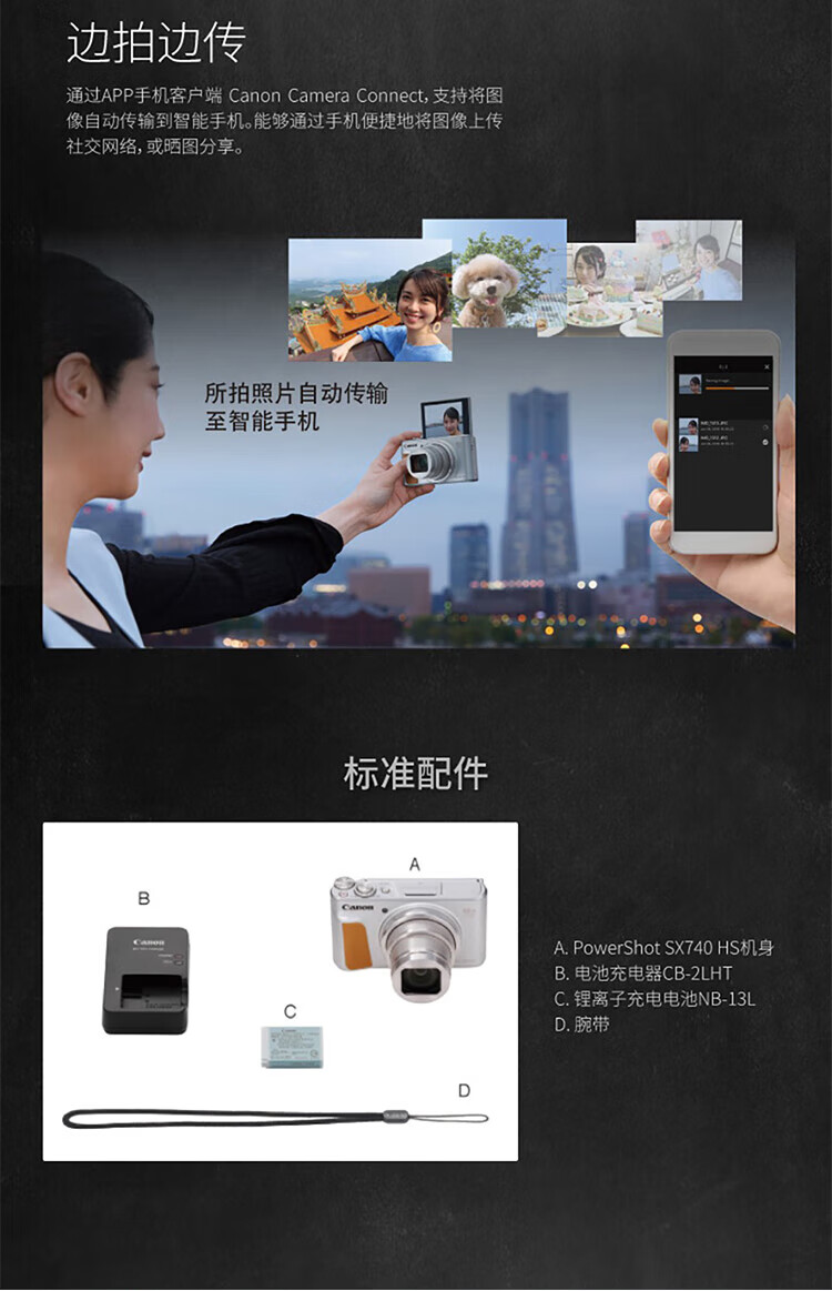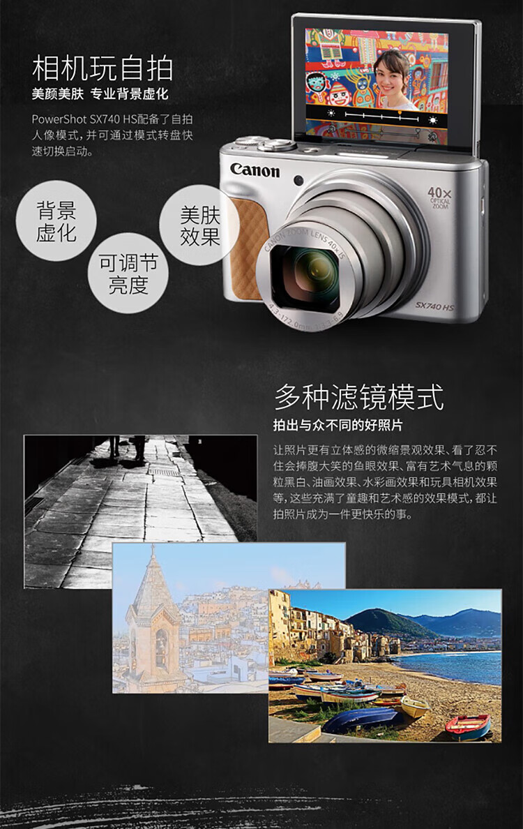 佳能(Canon)PowerShot SX740 HS数码相机 家用旅游摄影数码相机 PowerShot SX740 HS 黑色 官方标配【无内存卡不送摄影大礼包~推荐购买套餐】