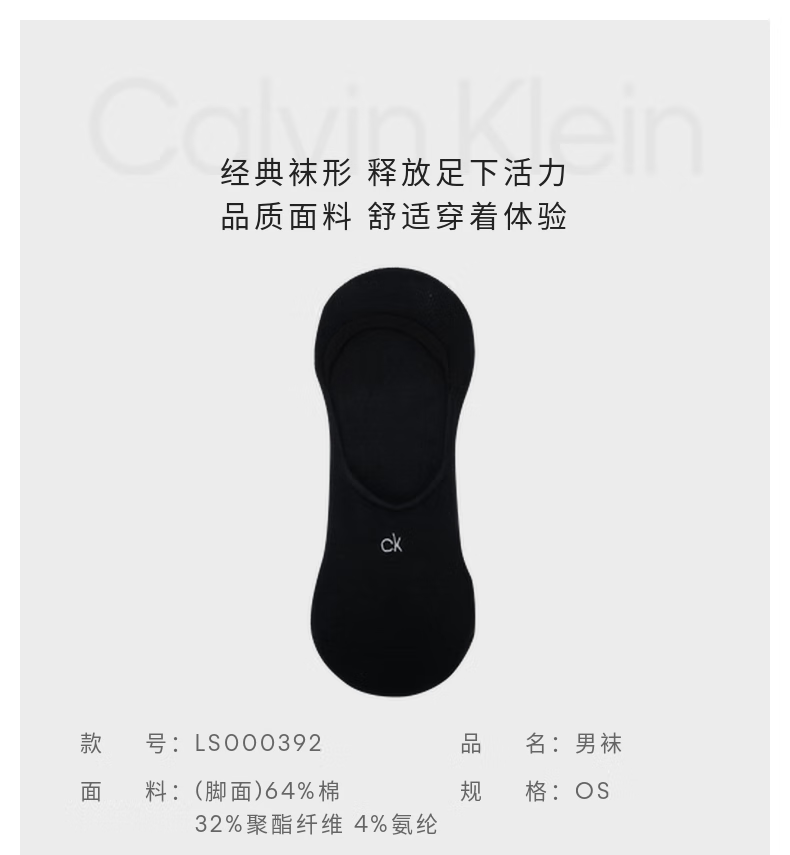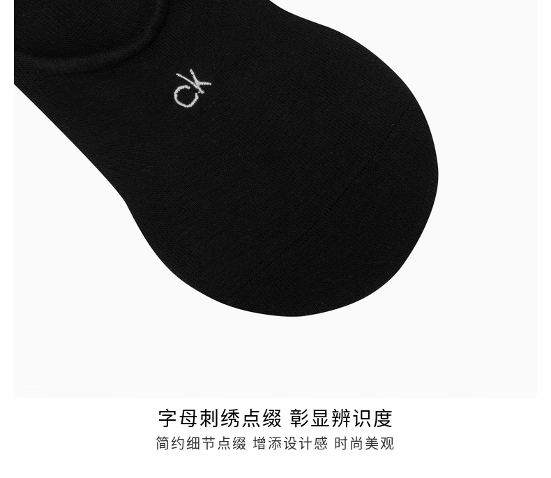 Calvin KleinJeans25男士简约ck字母刺绣舒适微弹商务休闲百搭运动船袜礼物 001-太空黑 1双 均码