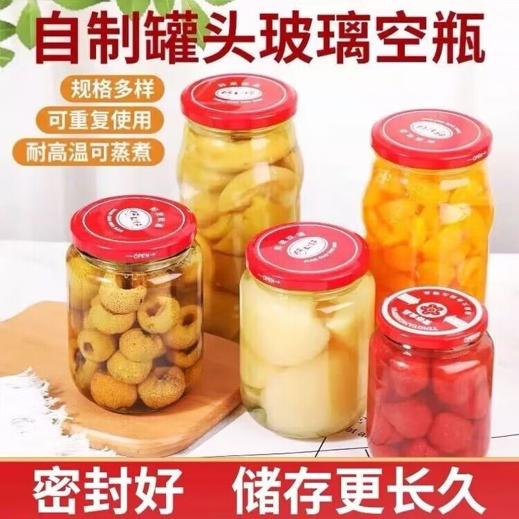 LZJV耐高温罐头瓶子密封罐蒸煮玻璃瓶带盖收纳500毫升食品级 500毫升 12瓶子带15盖子