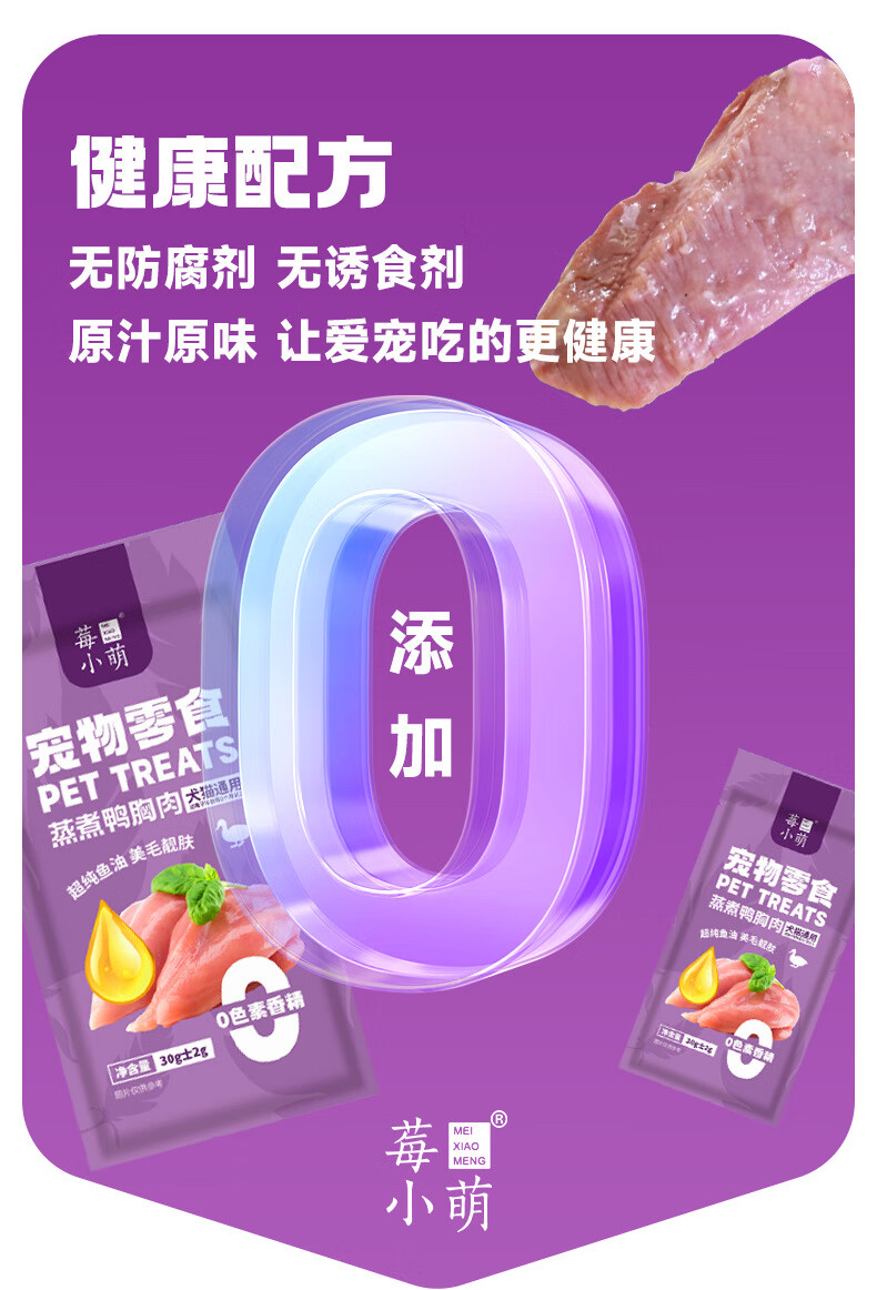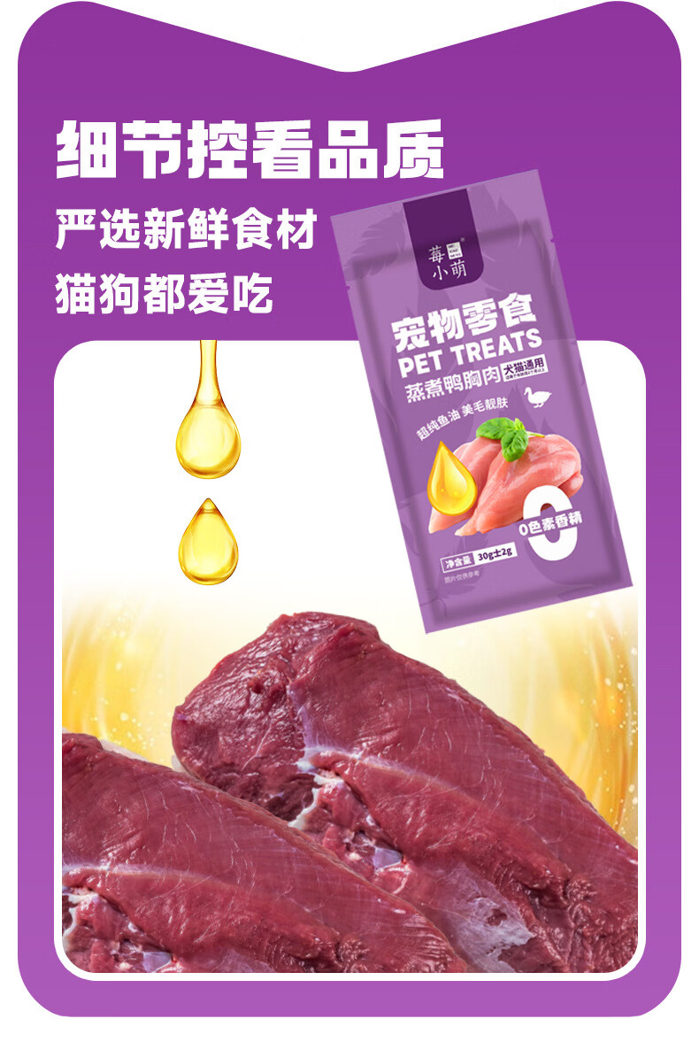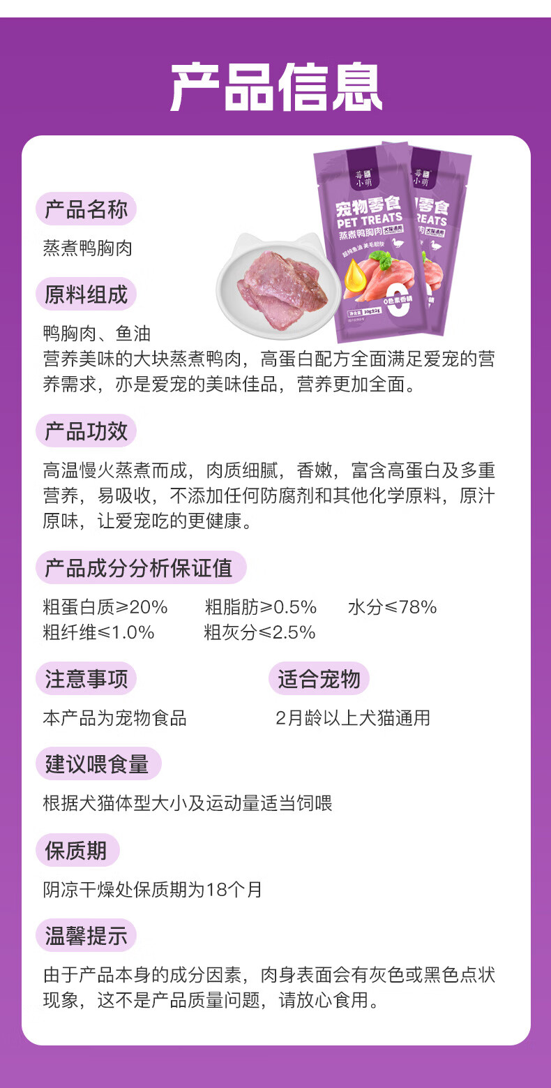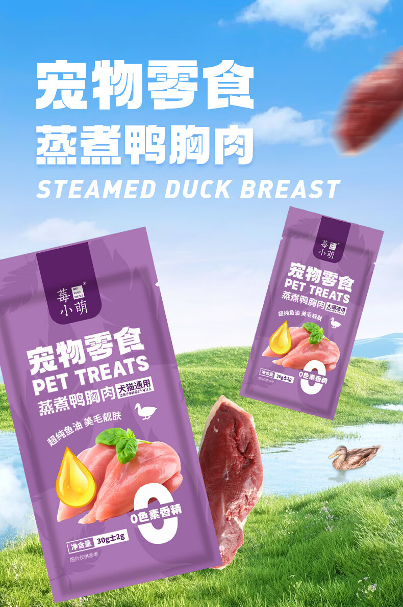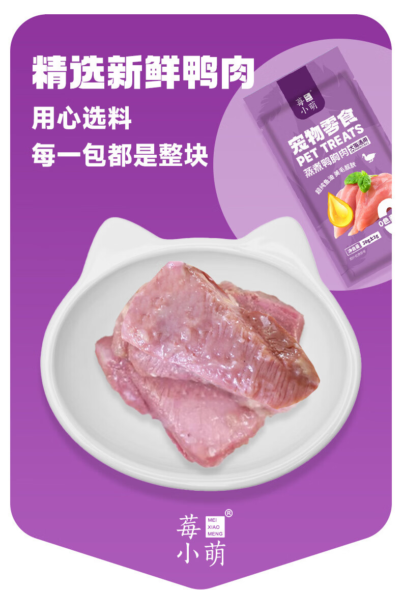 莓小萌鱼油蒸煮鸭胸肉高蛋白猫狗通用猫咪零食狗零食 蒸煮鸭小胸 1包