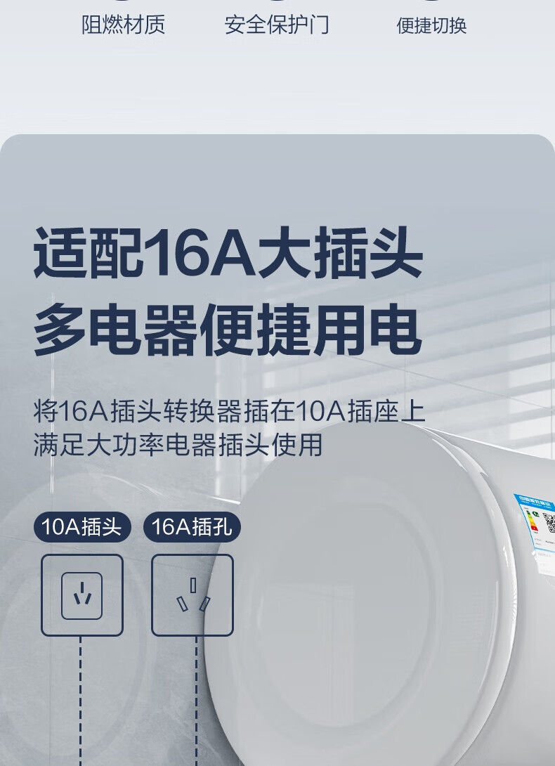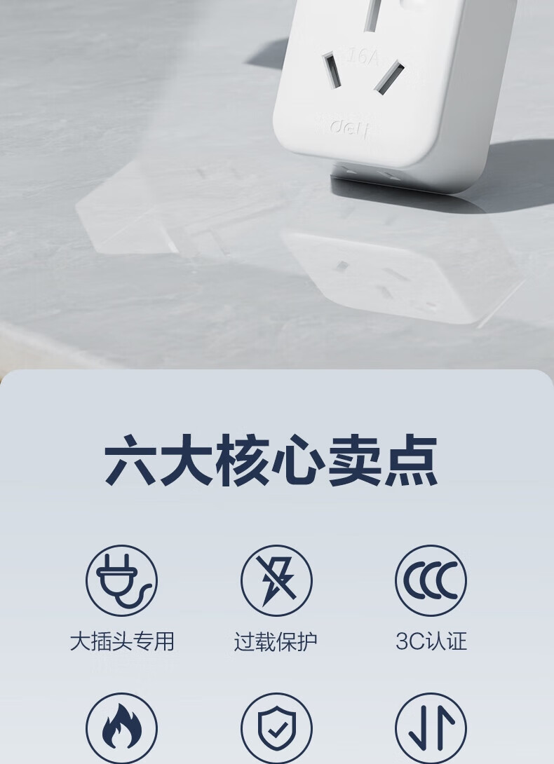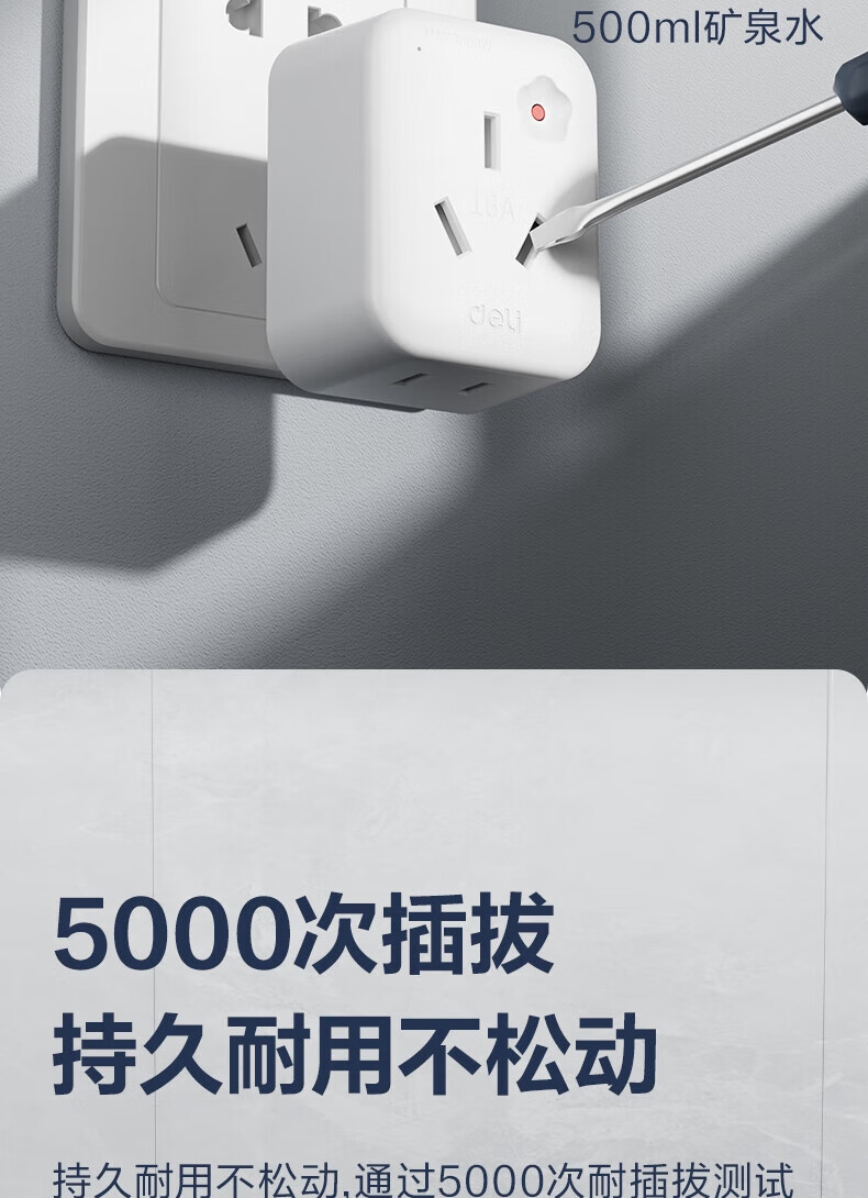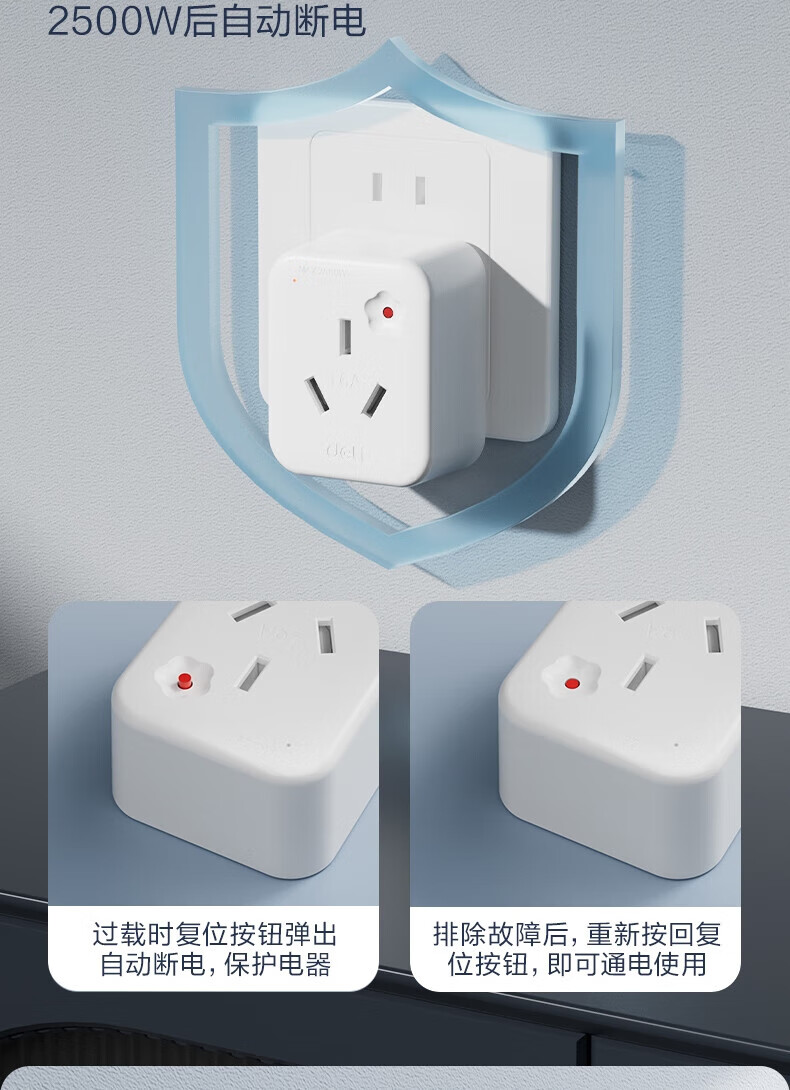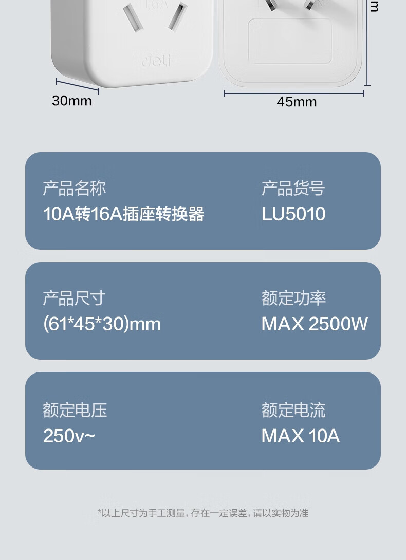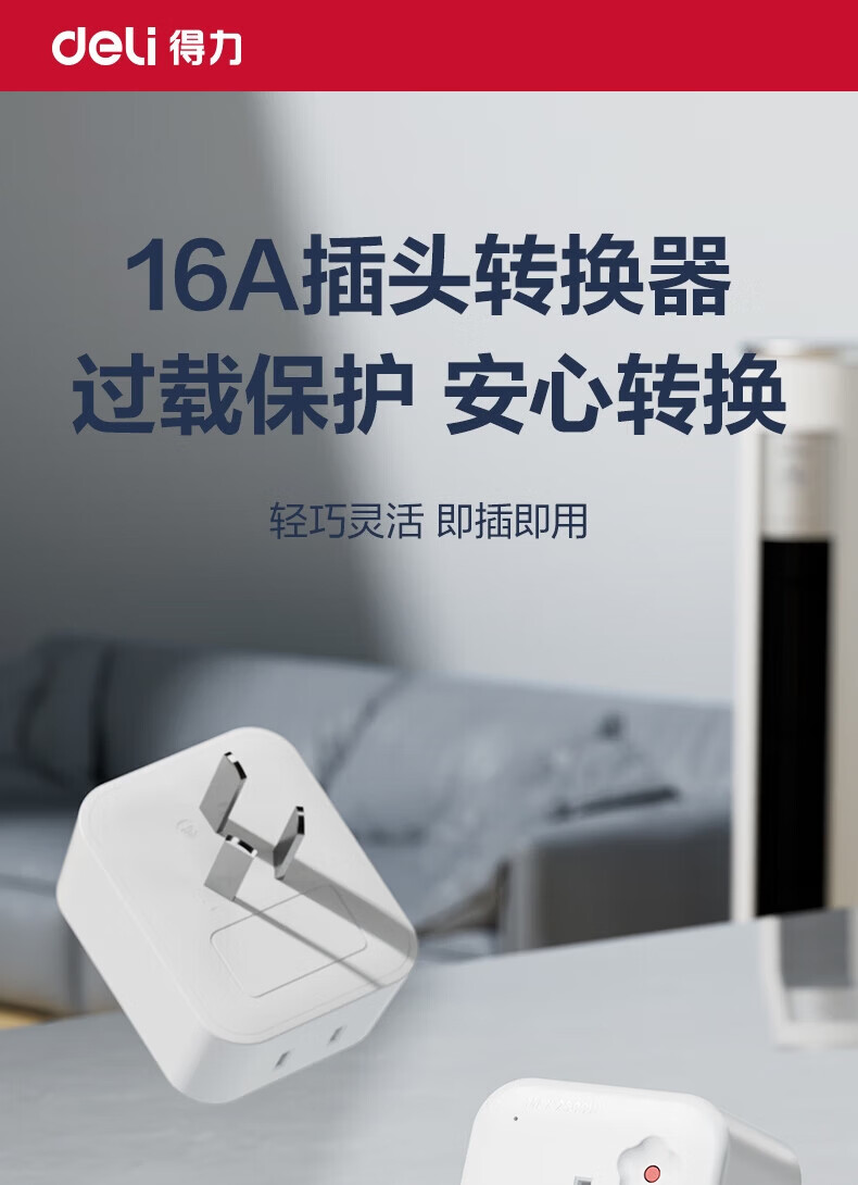 得力(deli)10A转16A转换插头/电源转换器 空调热水器取暖器大功率电源插座转换器 超功率过载保护 【过载保护/10A转16A】LU5010插头