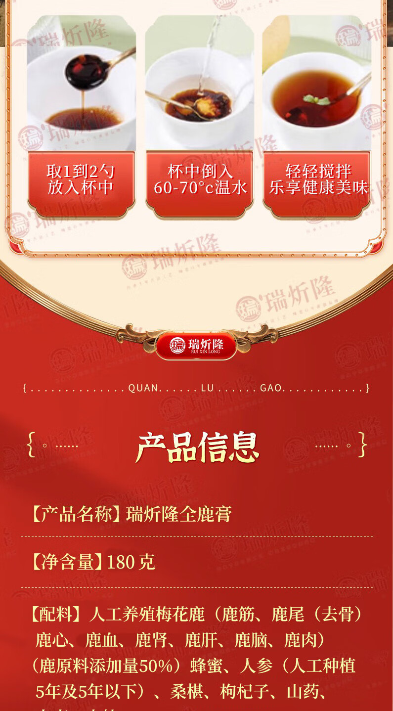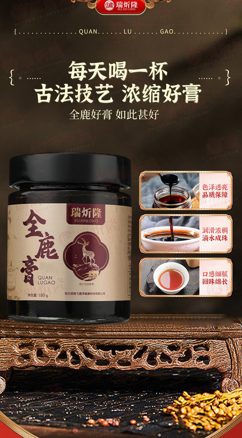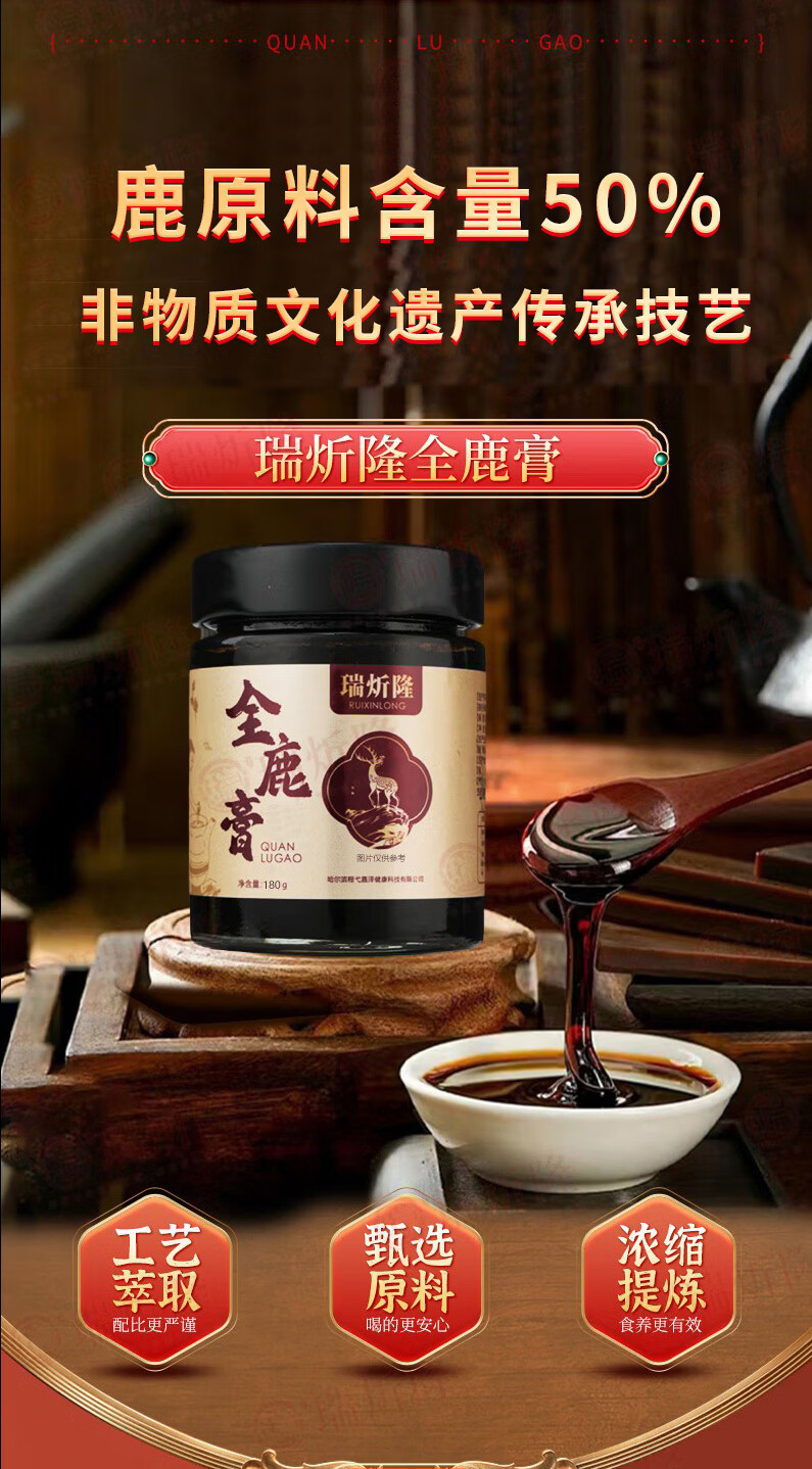 瑞炘隆【顺丰包邮】全鹿膏男女即食膏方养生滋养生膏浓缩梅花鹿膏 180g*1瓶