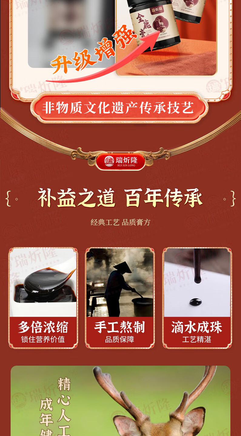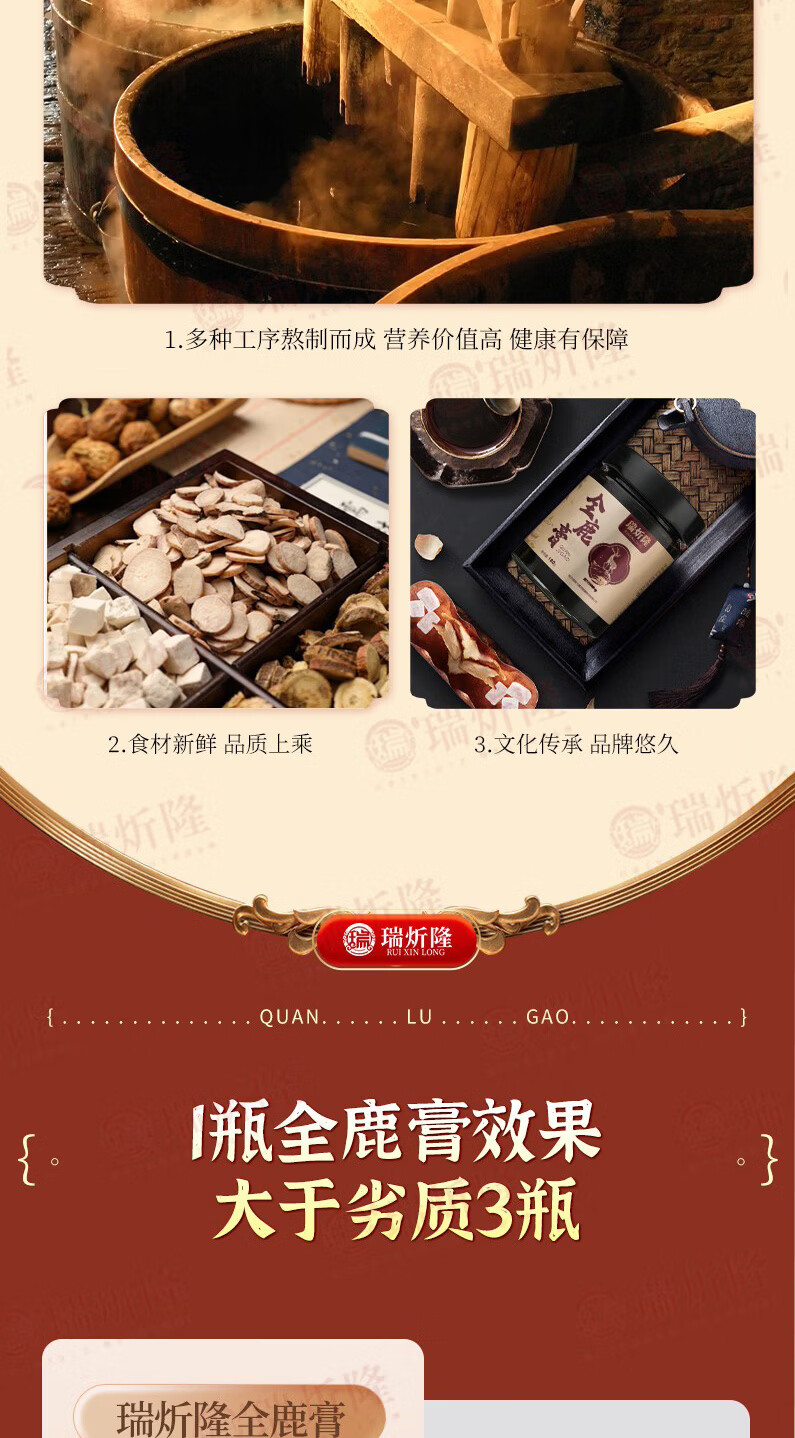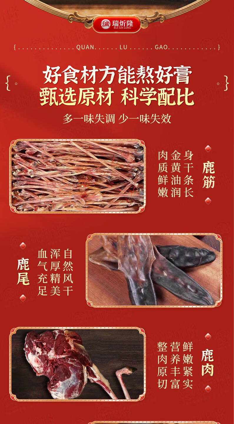 瑞炘隆【顺丰包邮】全鹿膏男女即食膏方养生滋养生膏浓缩梅花鹿膏 180g*1瓶