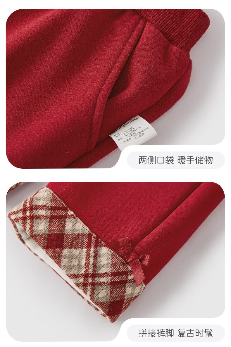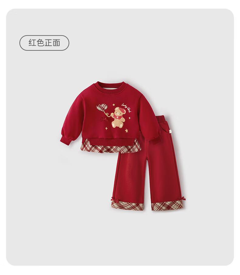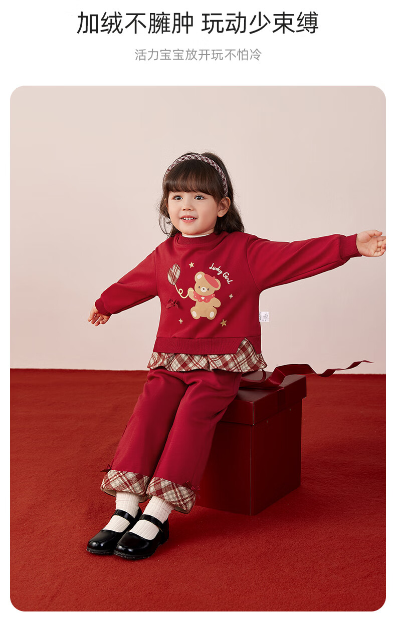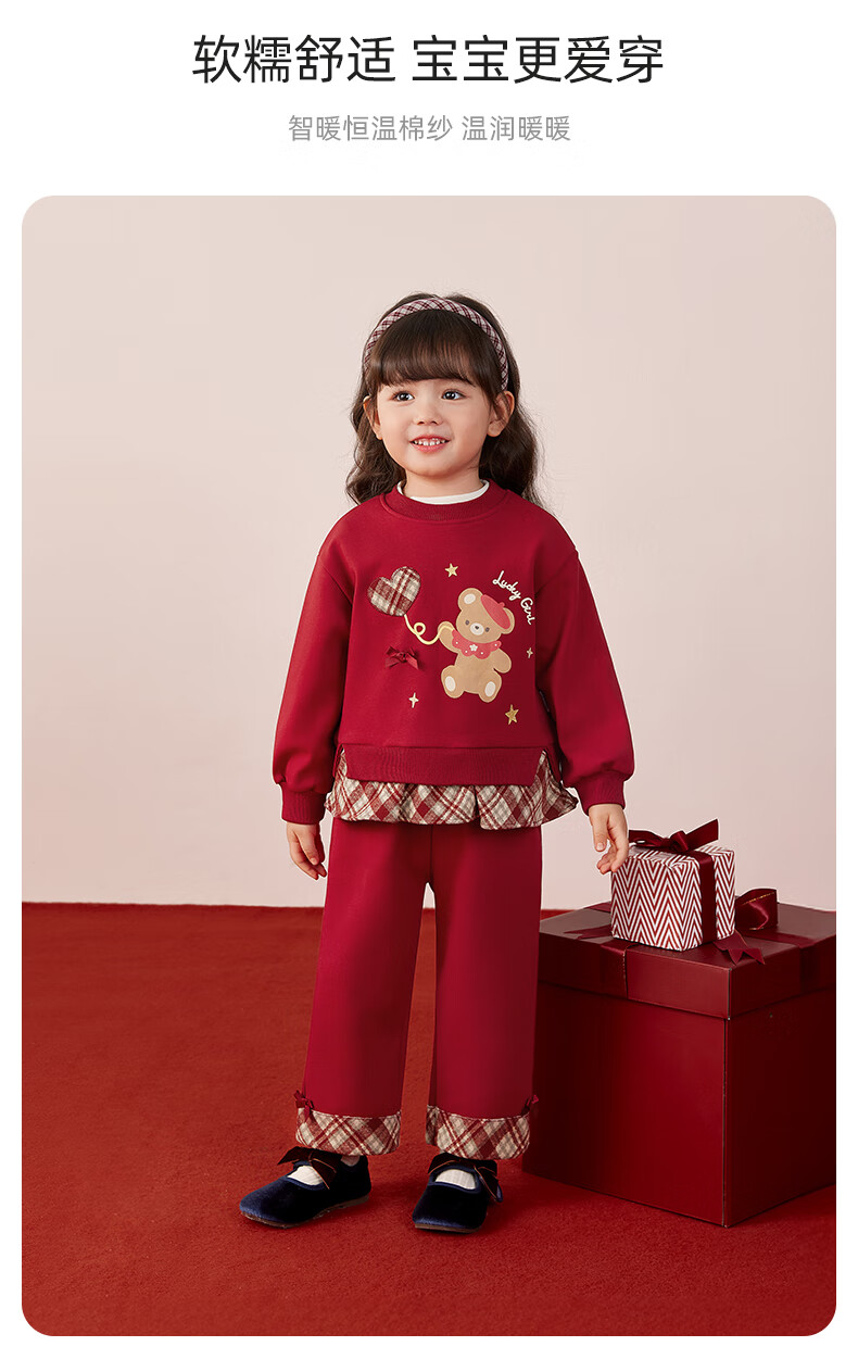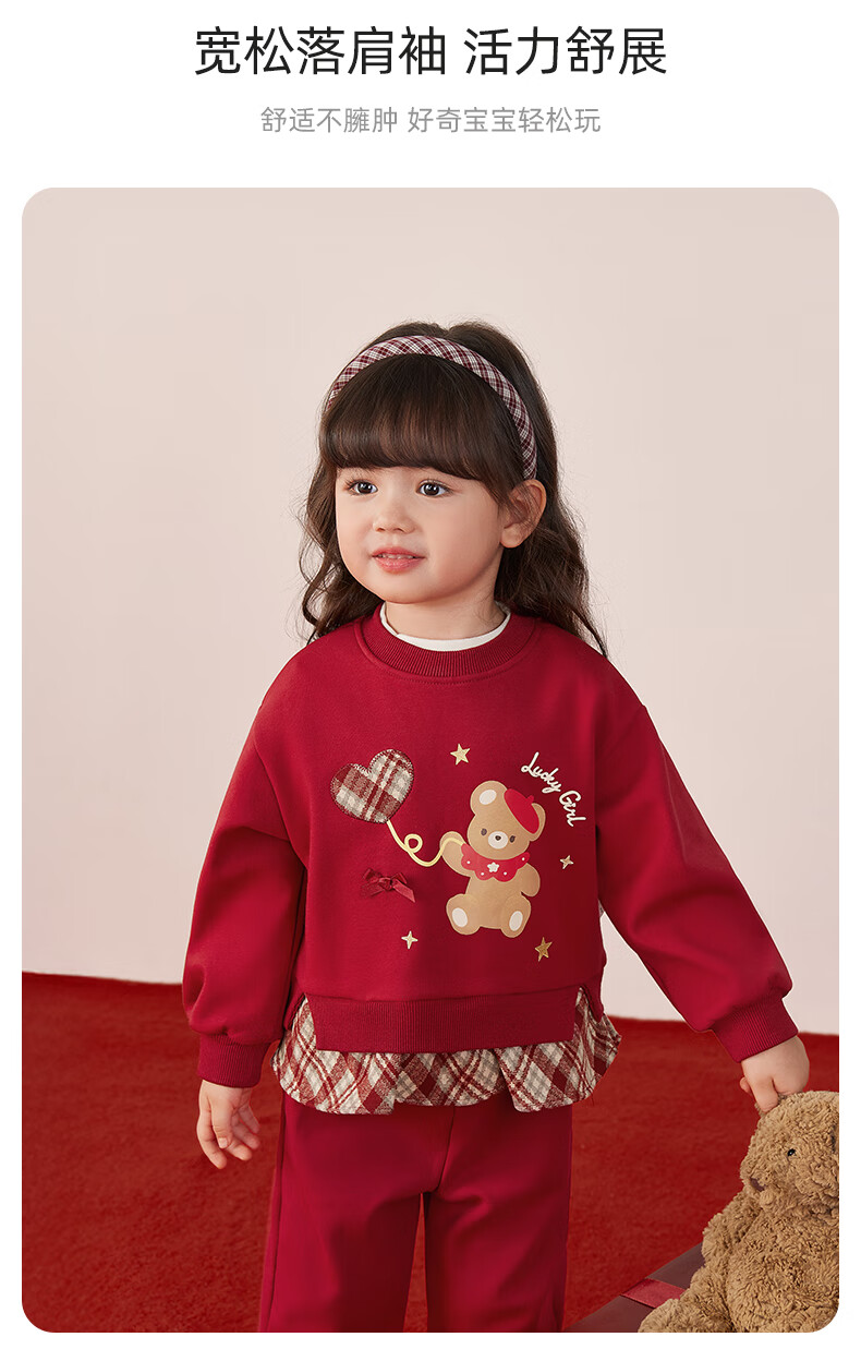 JELLYBABY【时尚洋气加绒休闲套装】25新品冬款女童卫衣+裤子大童 红色 110