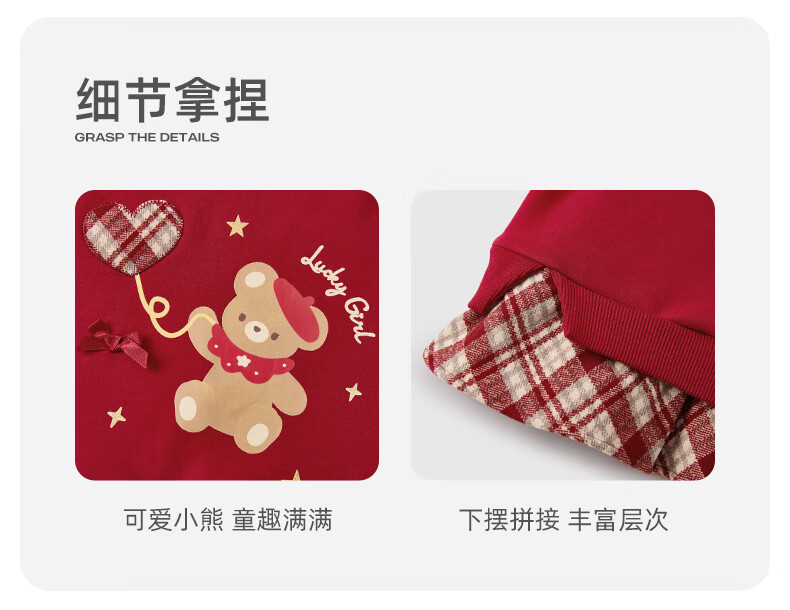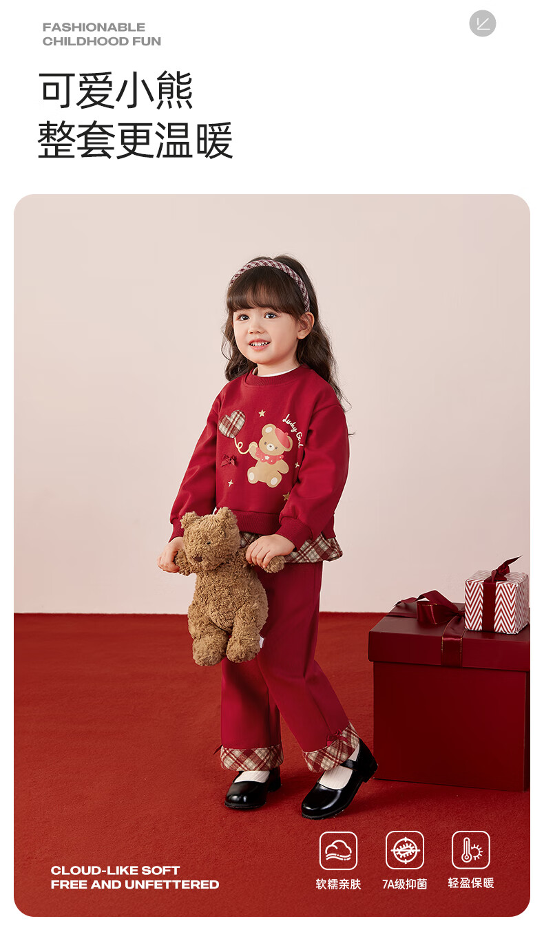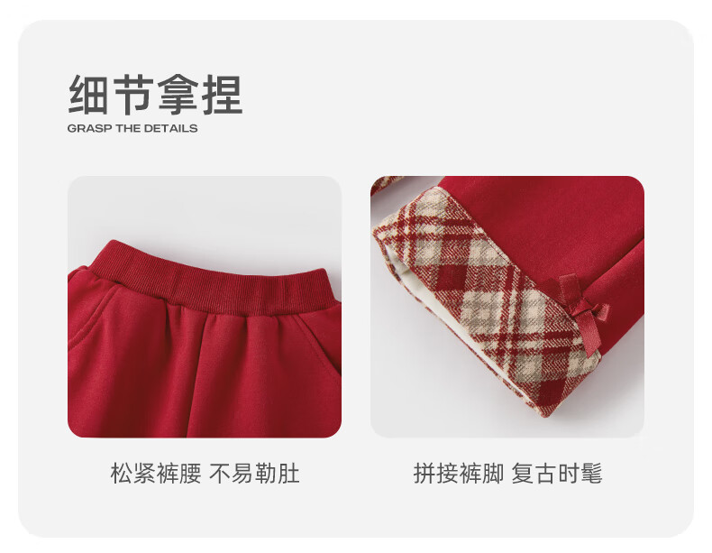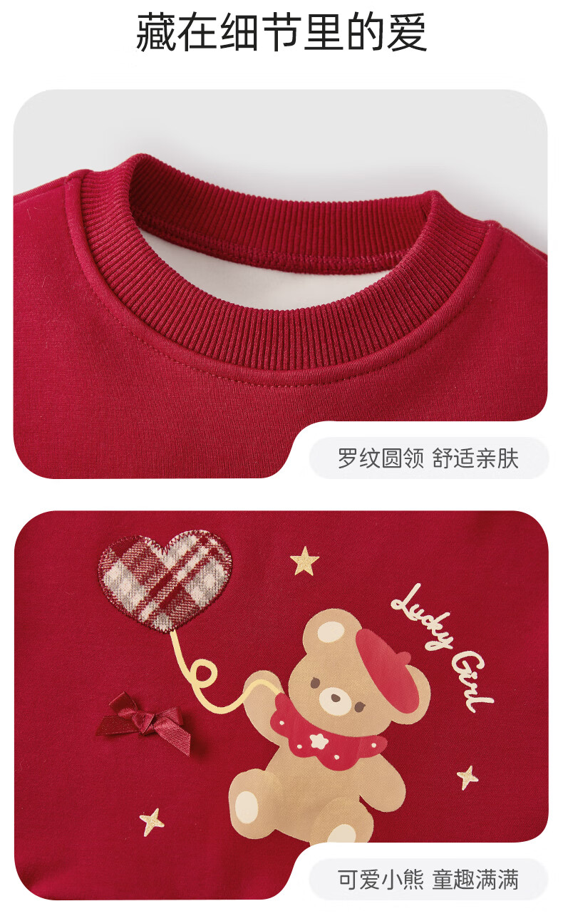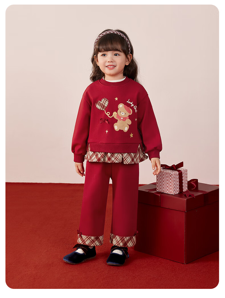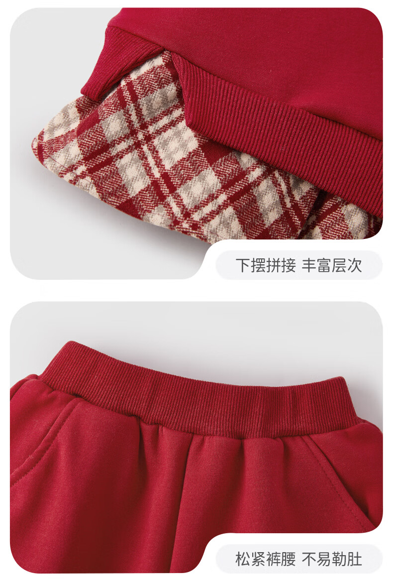JELLYBABY【时尚洋气加绒休闲套装】25新品冬款女童卫衣+裤子大童 红色 110