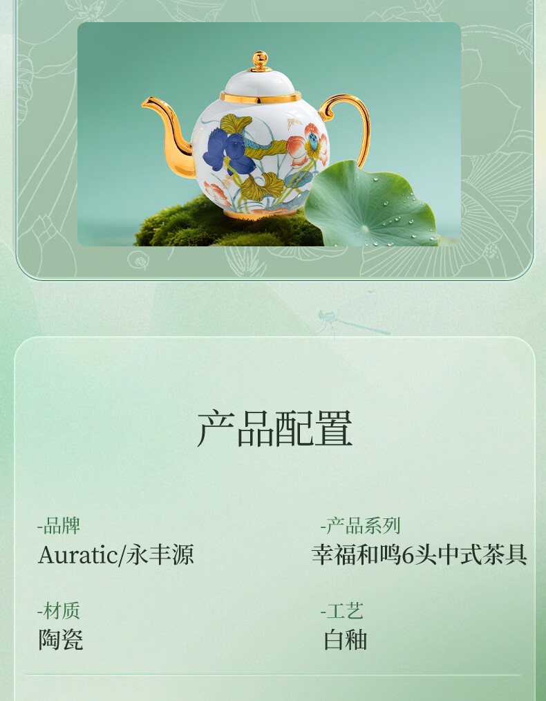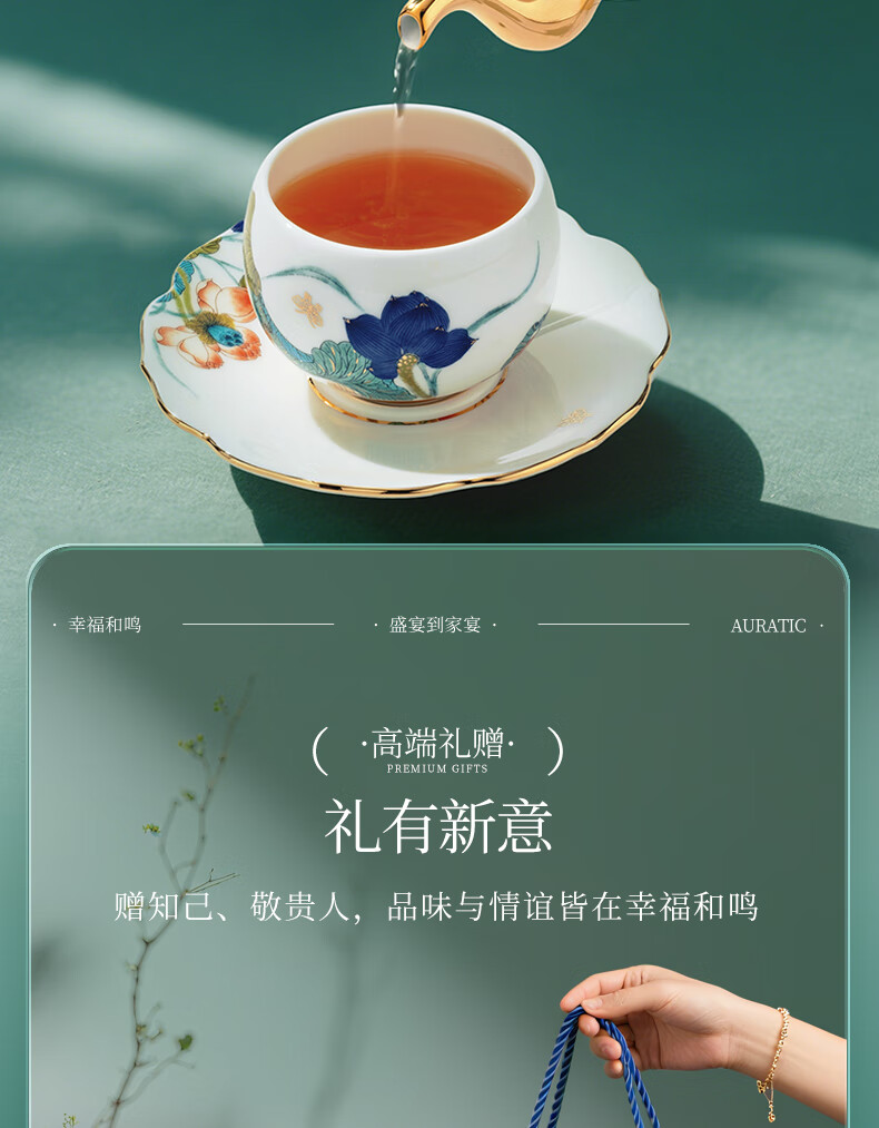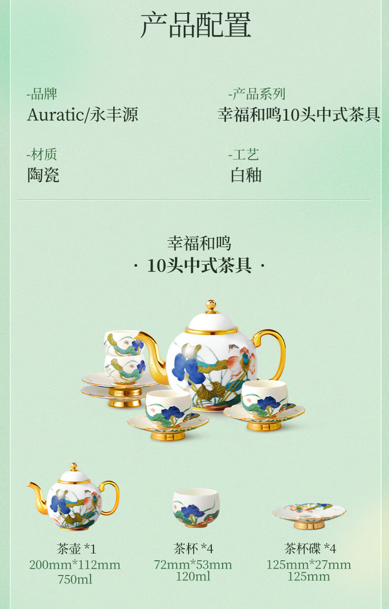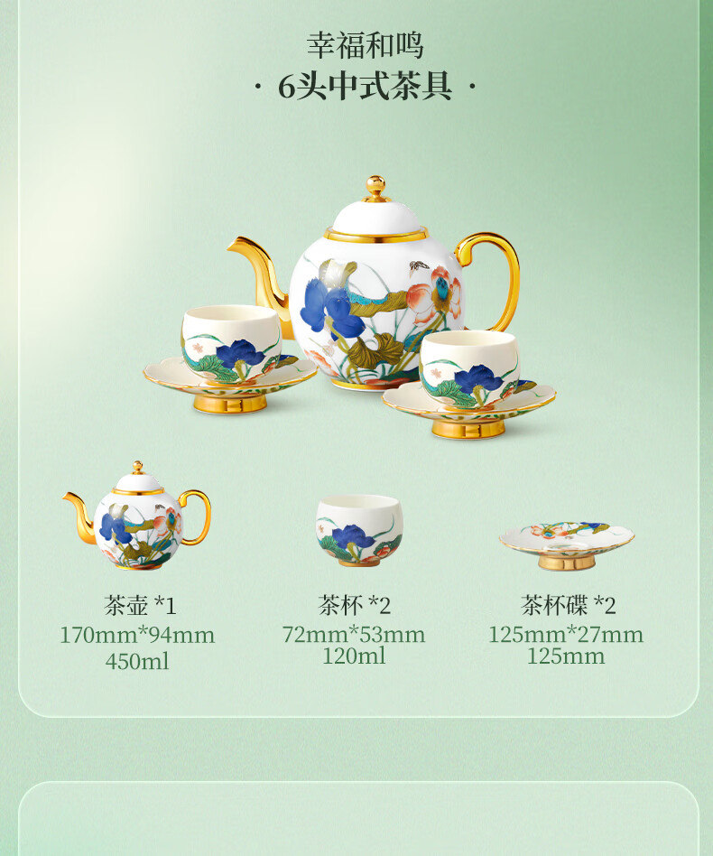 永丰源(auratic)幸福和鸣 6头/10头陶瓷茶具套装 礼物泡茶壶茶杯 高档礼盒装 6头【2人位】