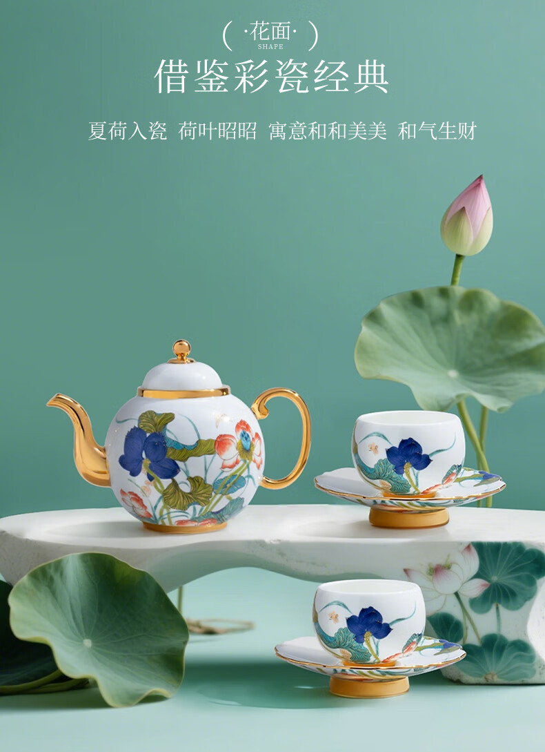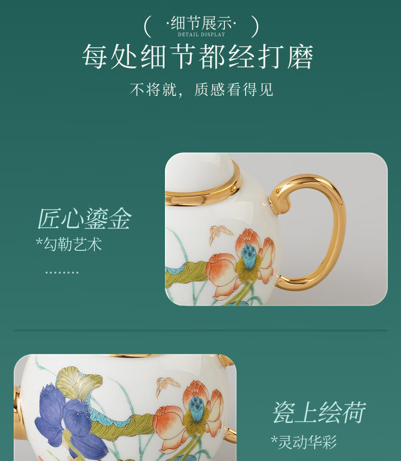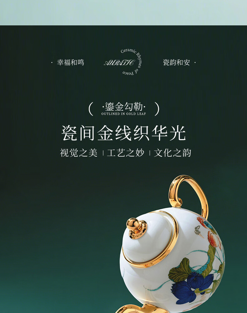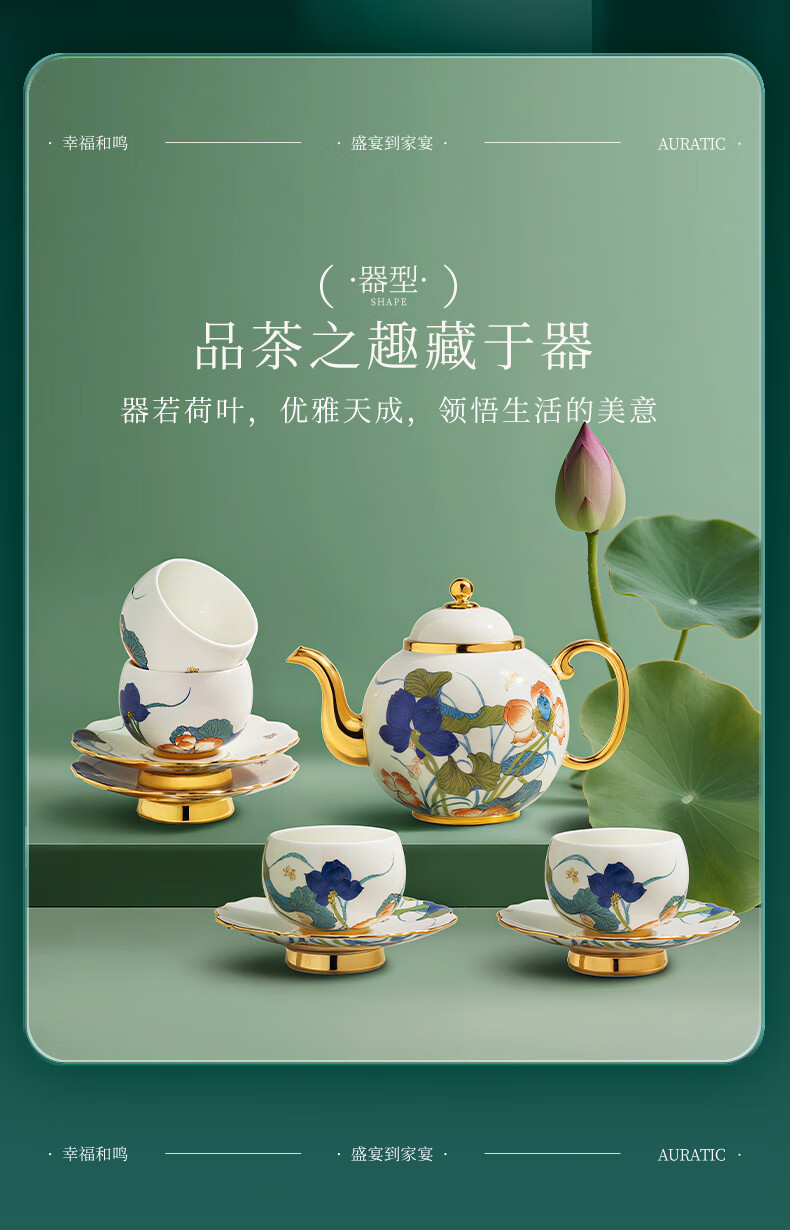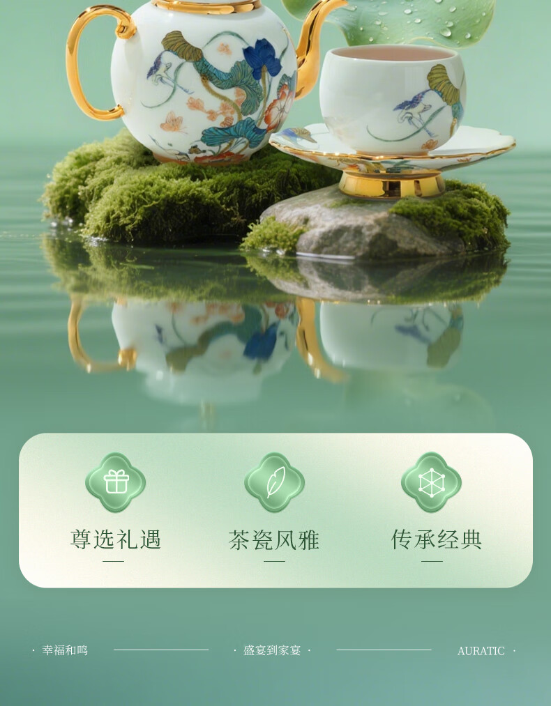 永丰源(auratic)幸福和鸣 6头/10头陶瓷茶具套装 礼物泡茶壶茶杯 高档礼盒装 6头【2人位】