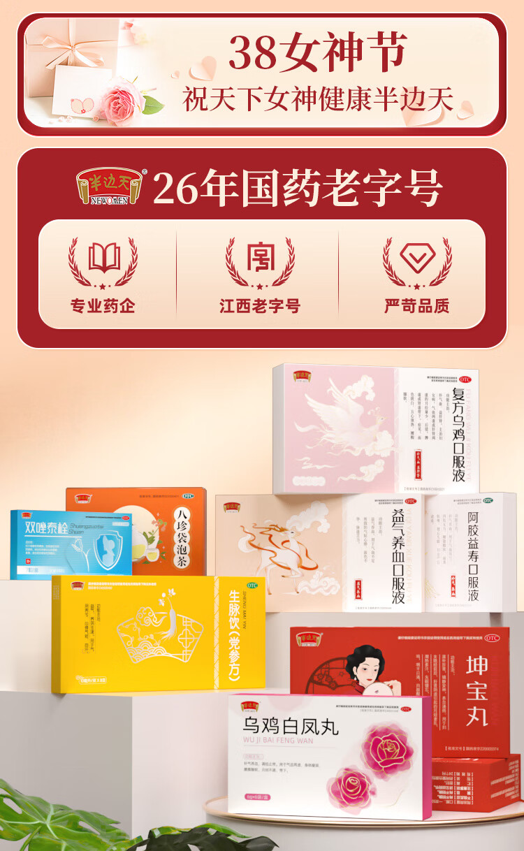 半边天 益气养血口服液 10ml*16支/盒 女性补血气血不足体虚养血生气短贫血黄芪补肾心悸贫血乏力 3盒装【8天用量,益气养血】