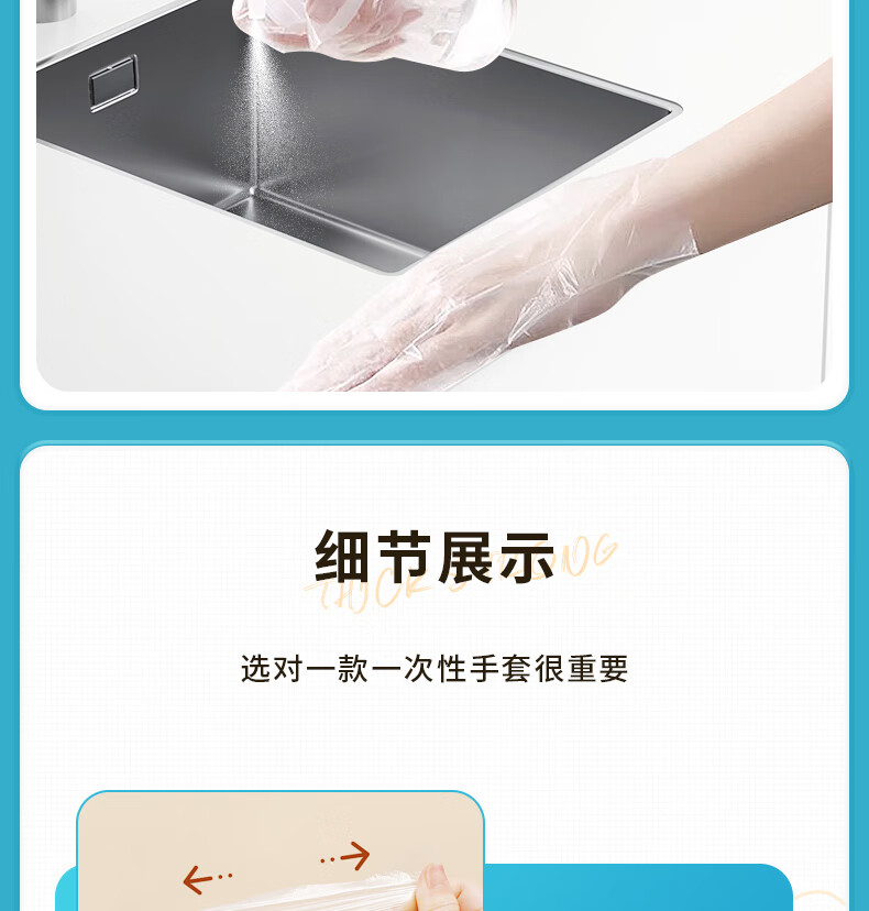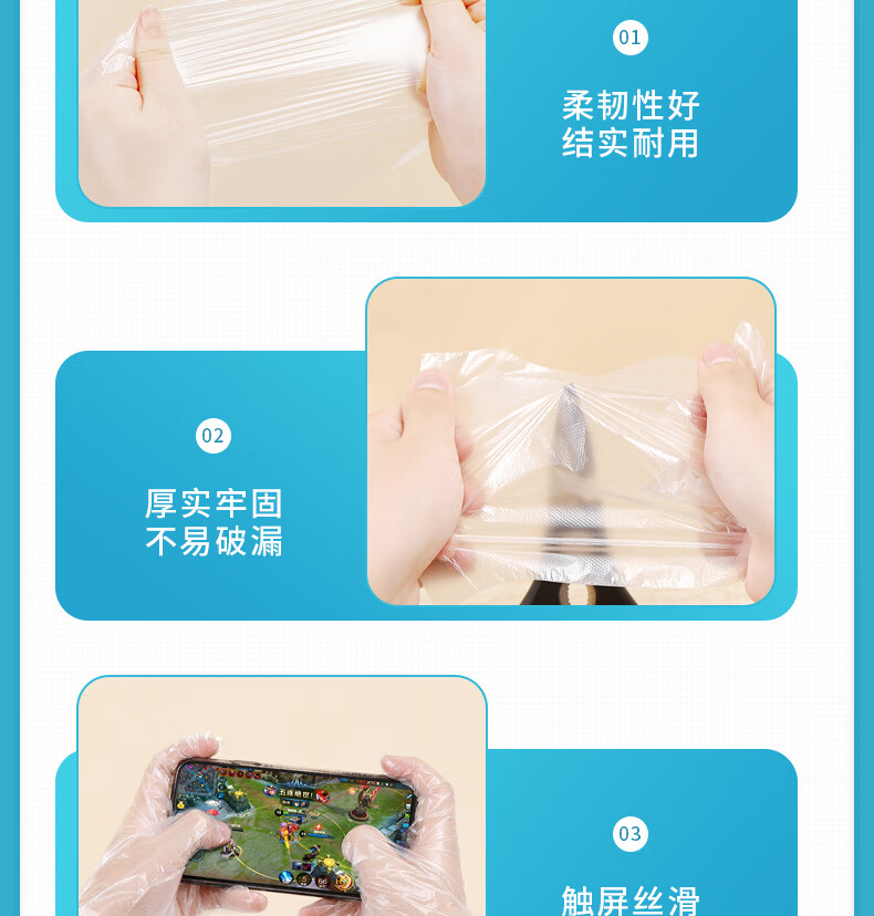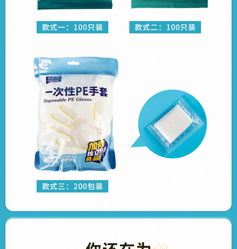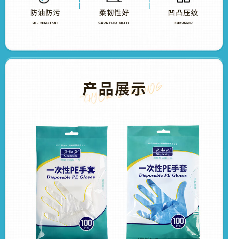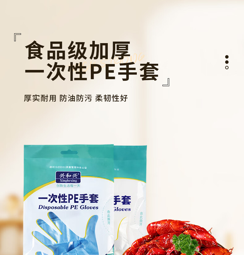 兴和兴一次性手套食品级PE餐饮烘焙家用加厚 【100只】均码白色1g*10包