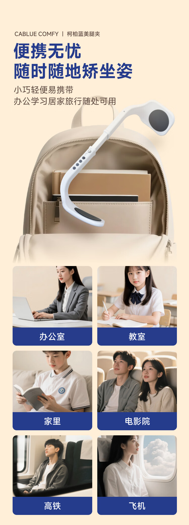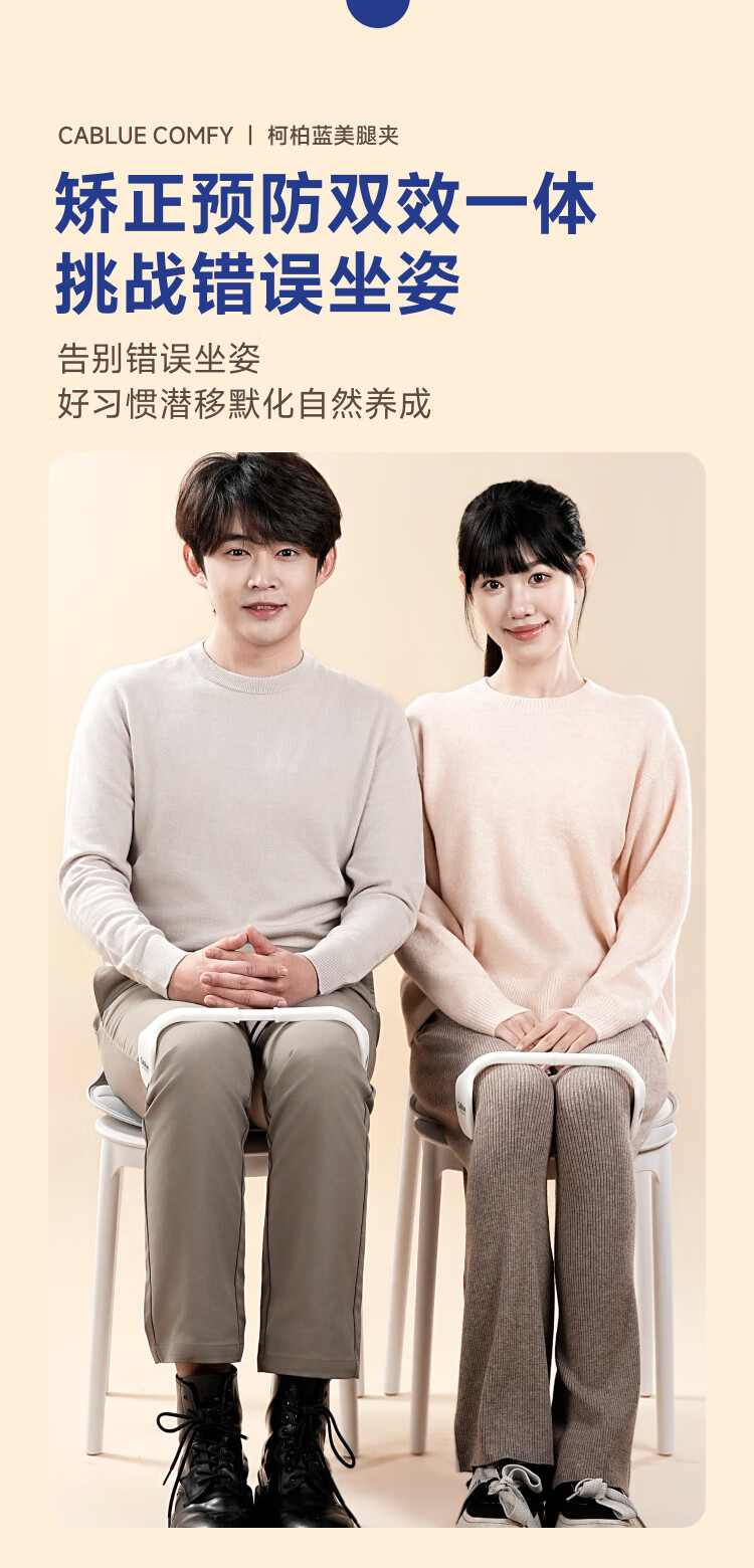 柯柏蓝【获消费创新奖】美美姿坐姿矫正器防跷二郎腿引导正确坐姿预防翘腿聚拢腿弯曲多档调节可全家使用 白色