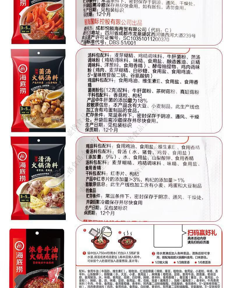 海底捞牛油麻辣鸳鸯火锅底料番茄牛油清油菌汤三鲜正宗重庆口味 商超 浓香番茄125g