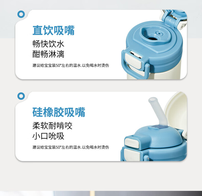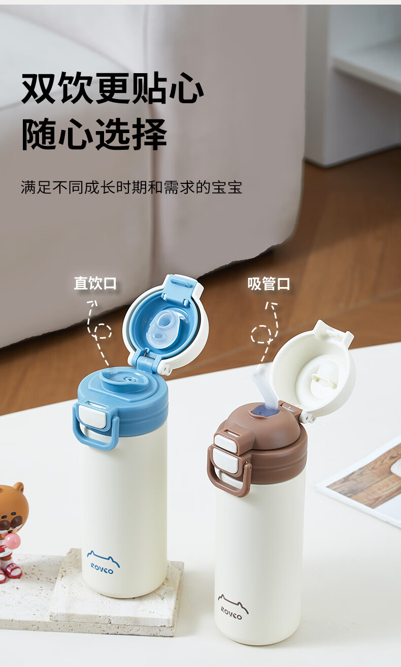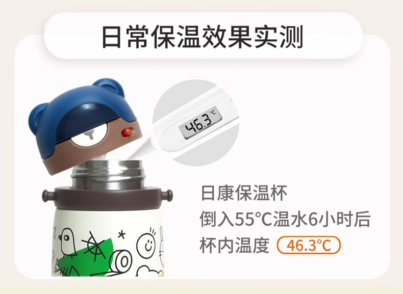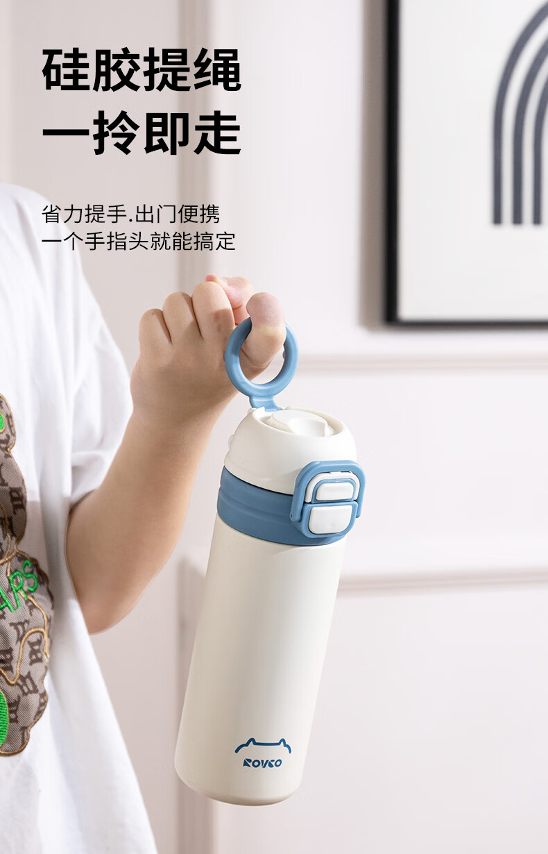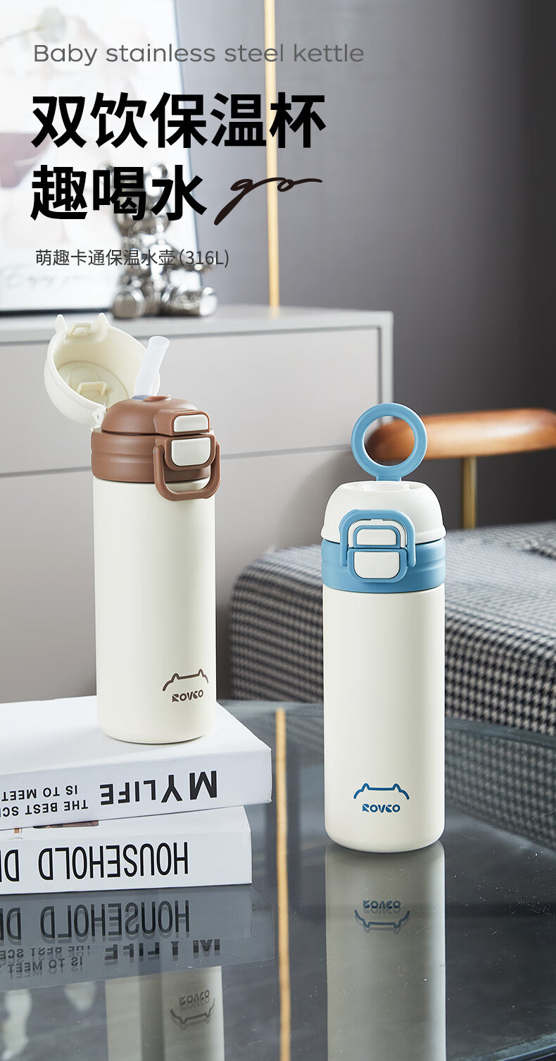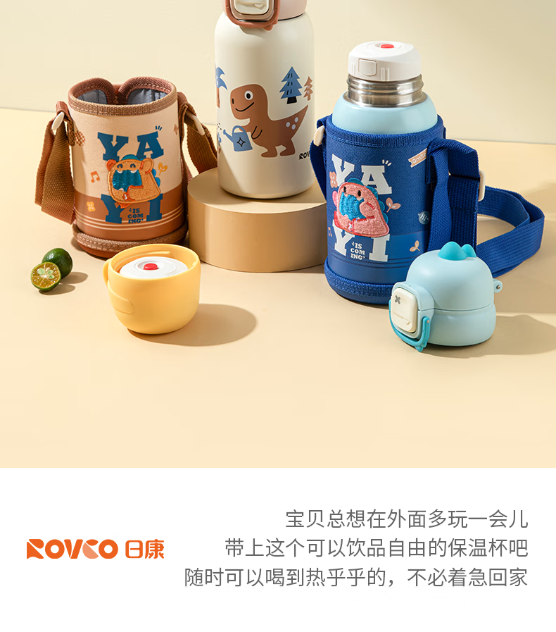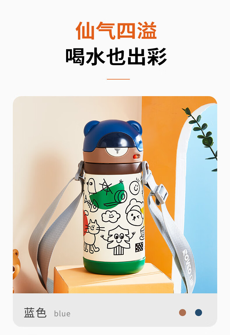 日康(rikang)保温杯 儿童水杯316不锈钢学生杯幼儿园上学专用水杯 【一杯双盖+杯套】B4026蓝色 550ml
