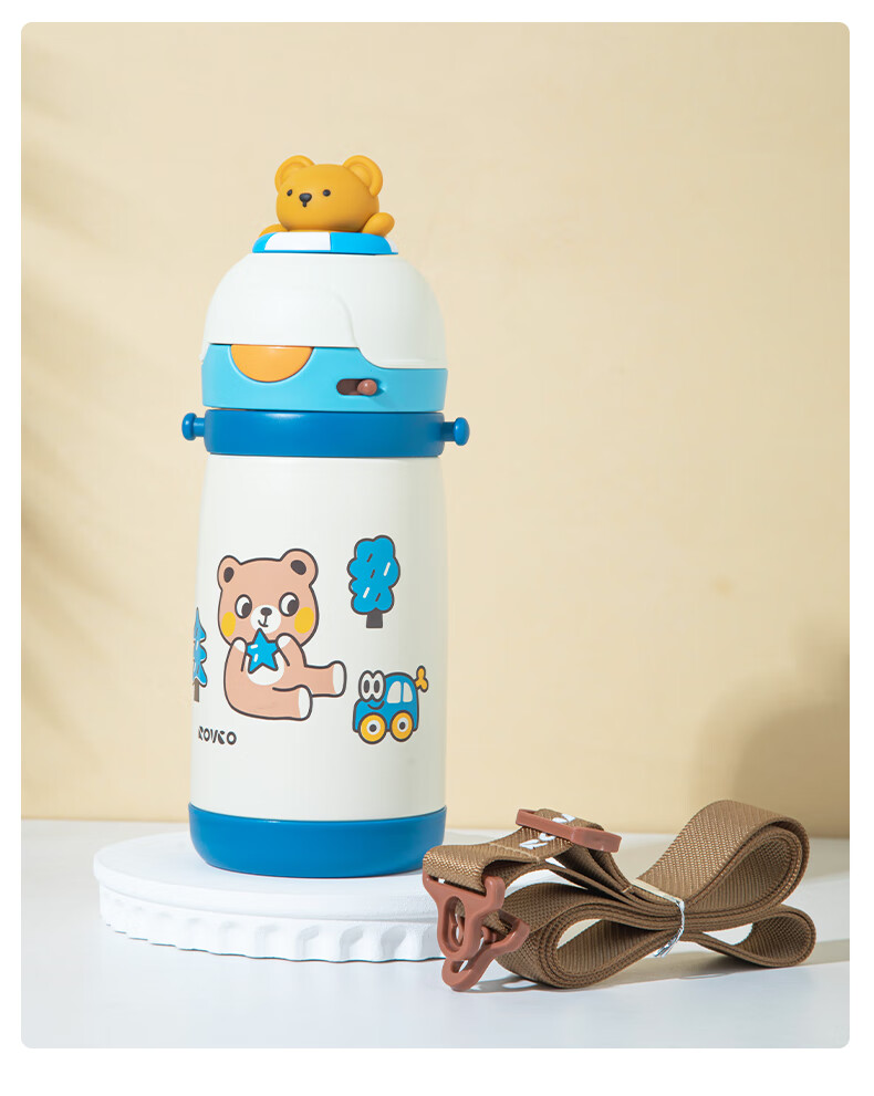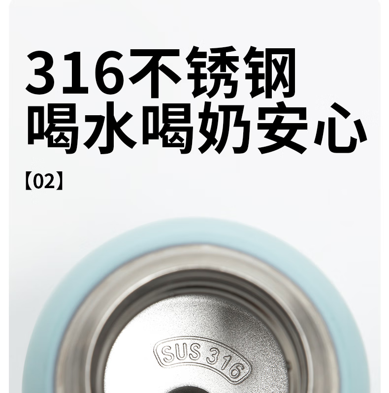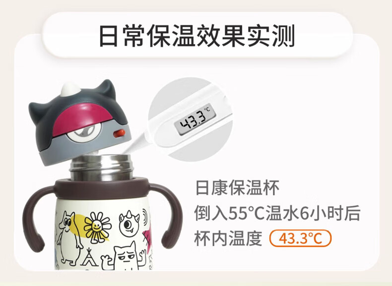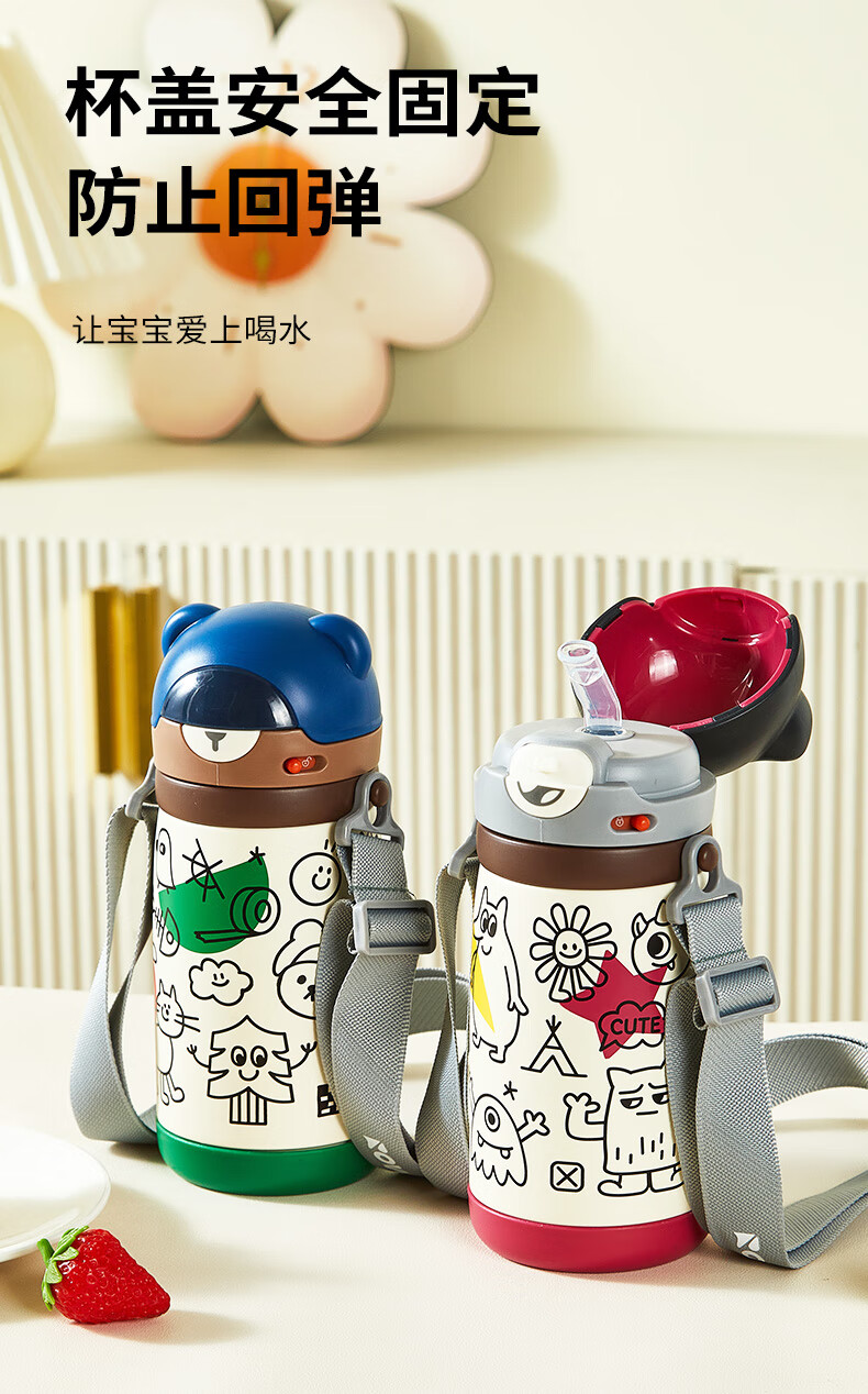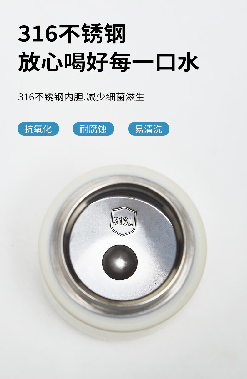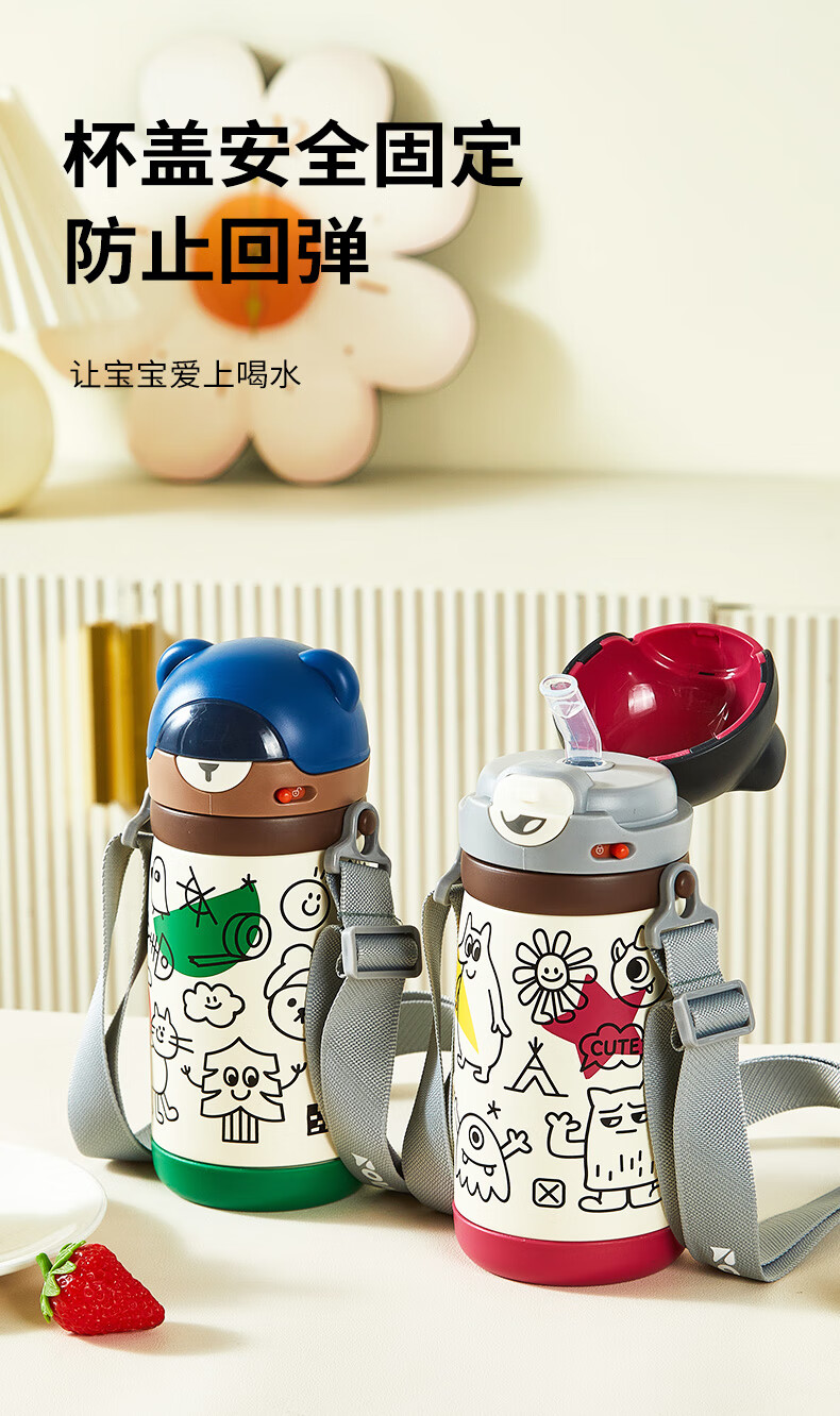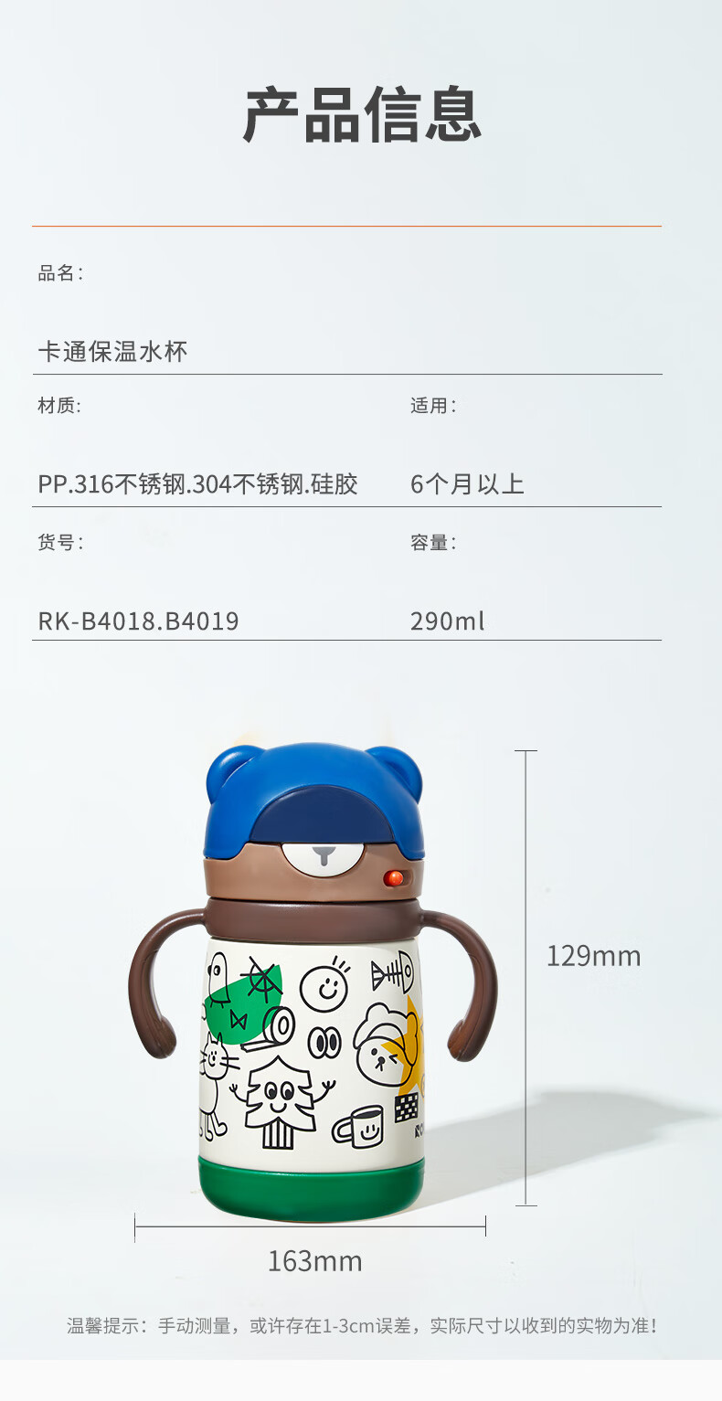 日康(rikang)保温杯 儿童水杯316不锈钢学生杯幼儿园上学专用水杯 【一杯双盖+杯套】B4026蓝色 550ml
