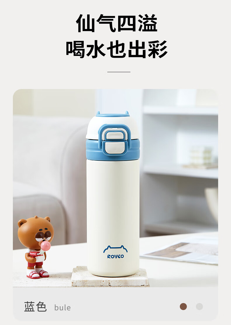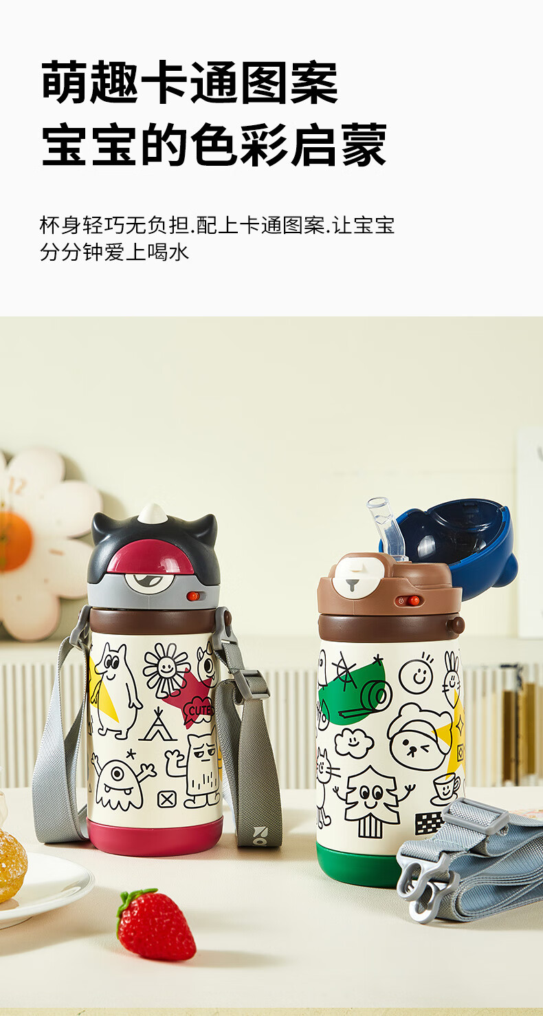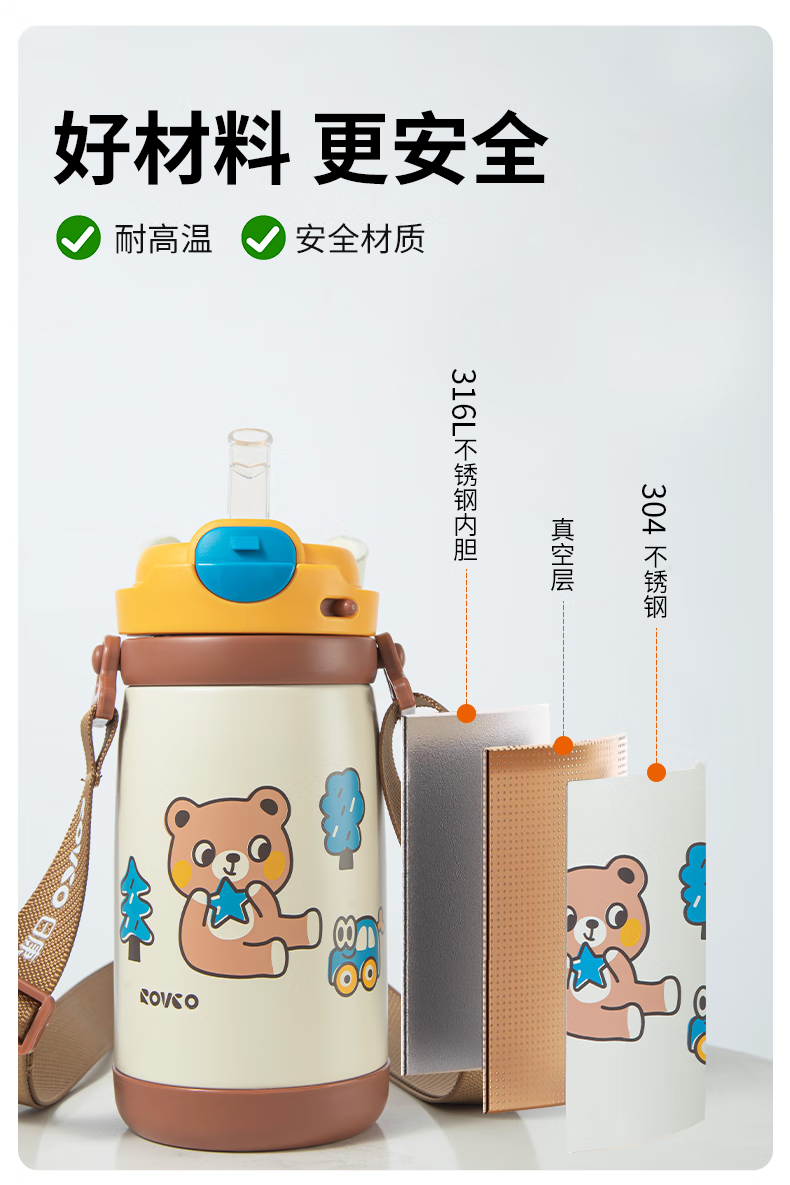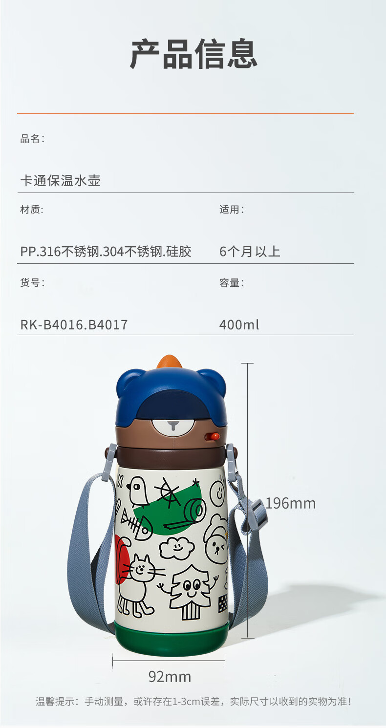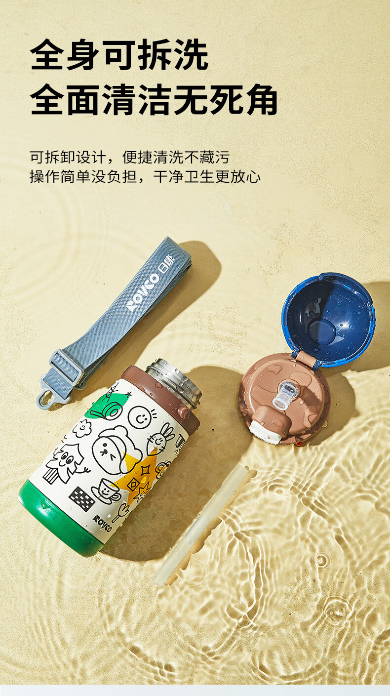 日康(rikang)保温杯 儿童水杯316不锈钢学生杯幼儿园上学专用水杯 【一杯双盖+杯套】B4026蓝色 550ml