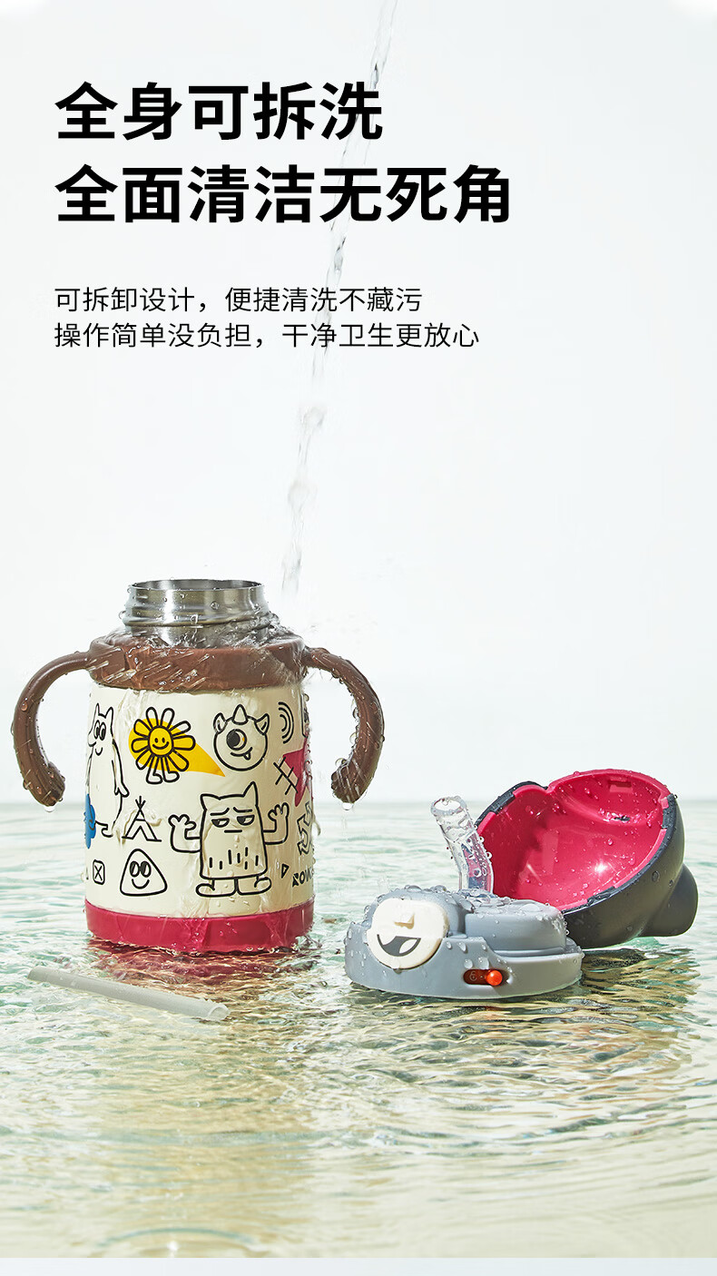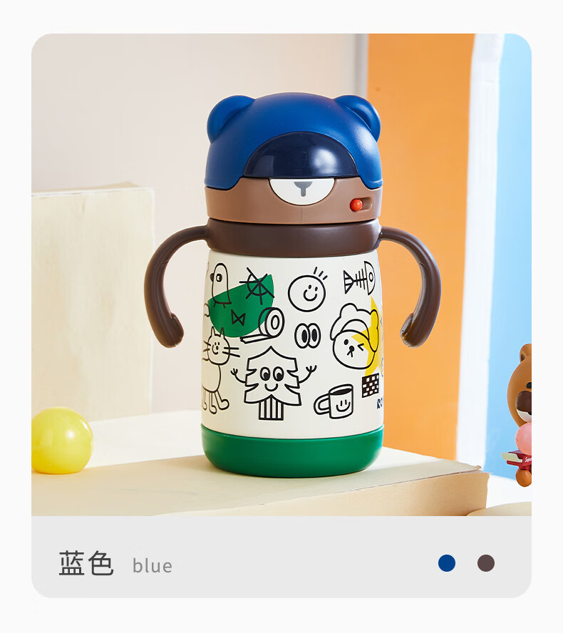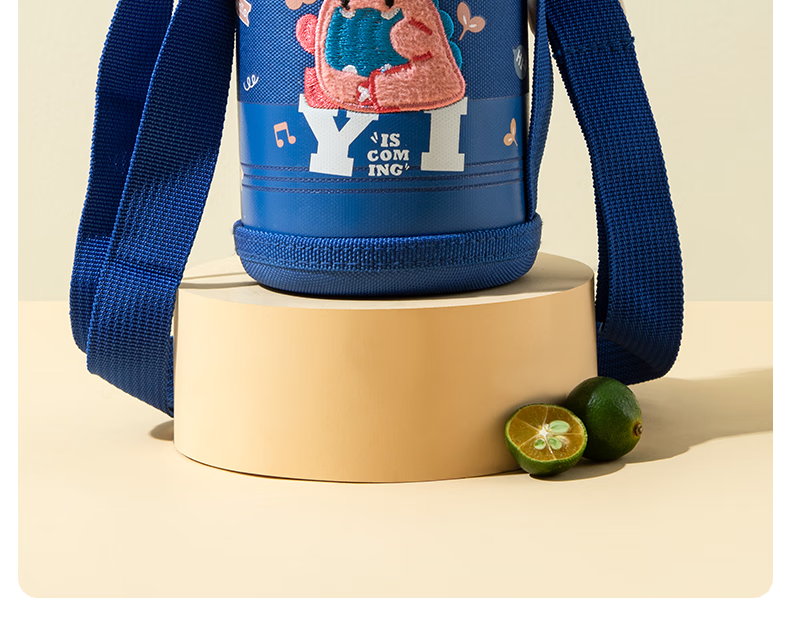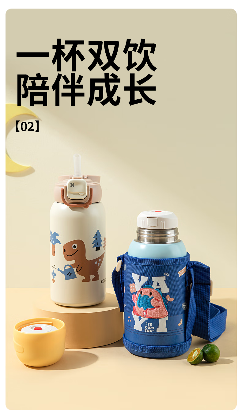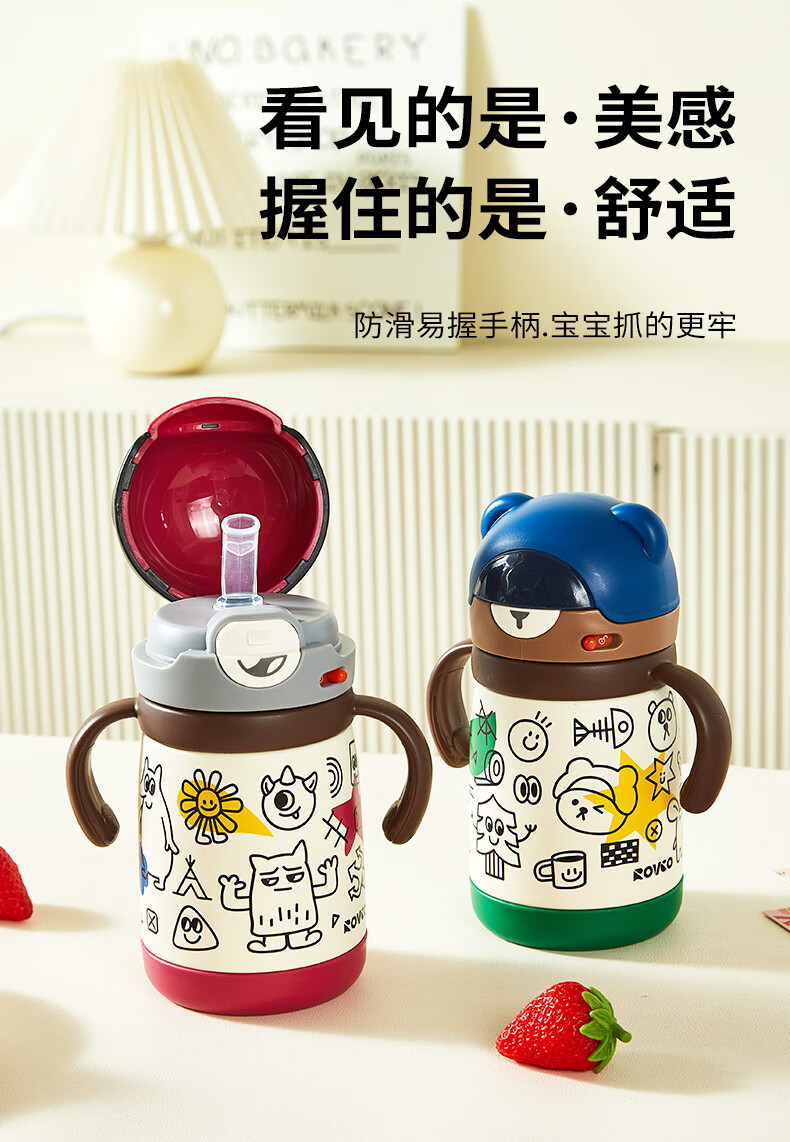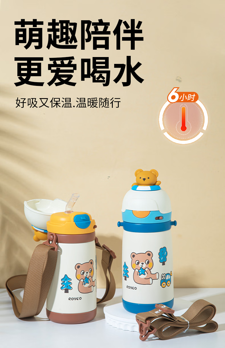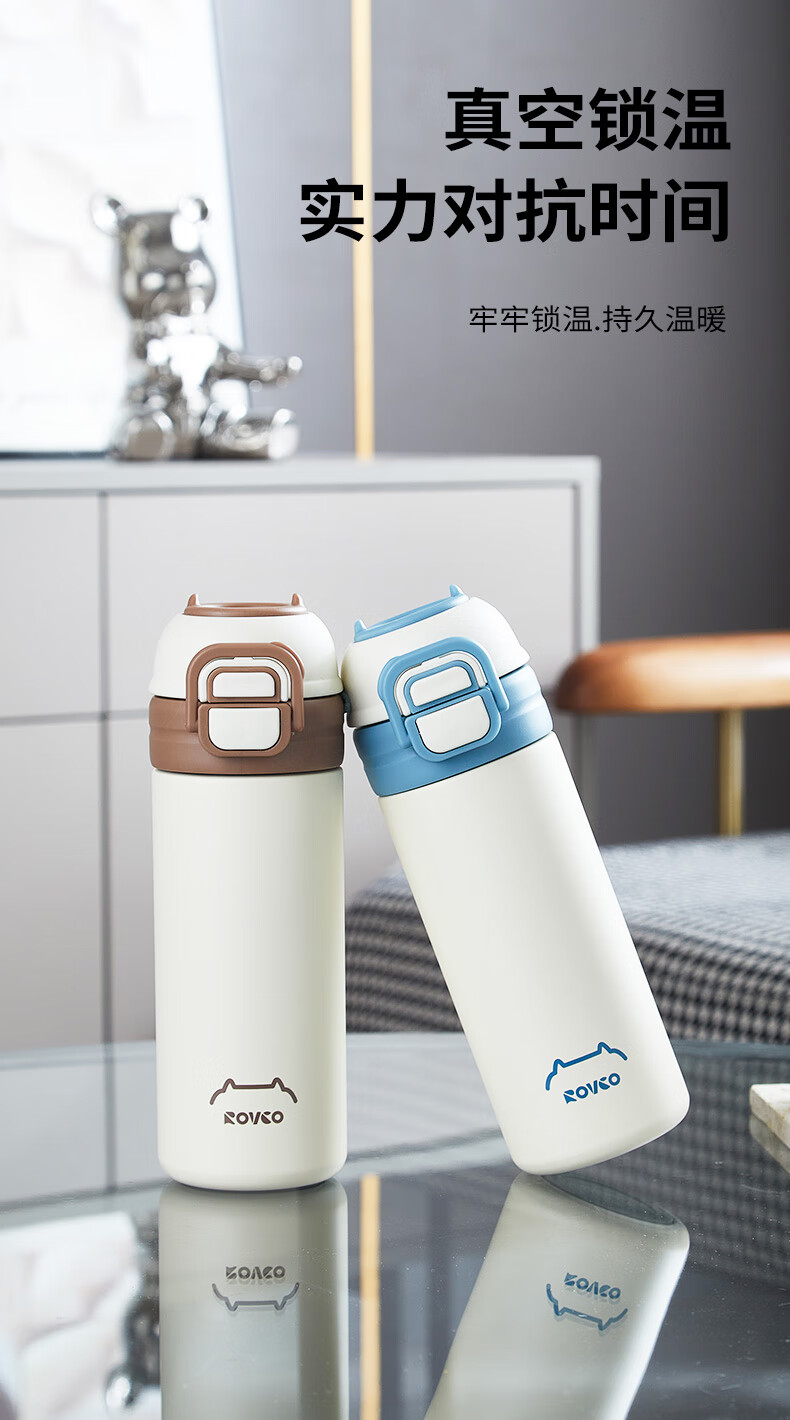日康(rikang)保温杯 儿童水杯316不锈钢学生杯幼儿园上学专用水杯 【一杯双盖+杯套】B4026蓝色 550ml