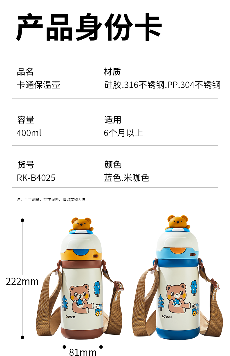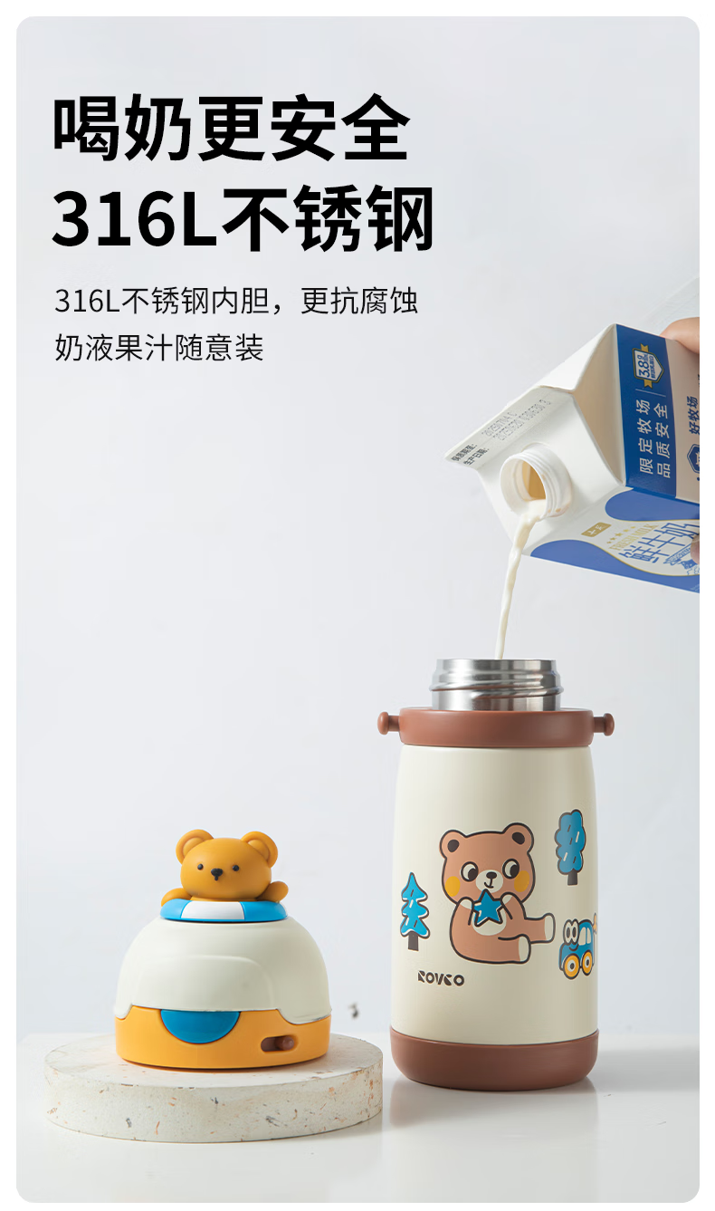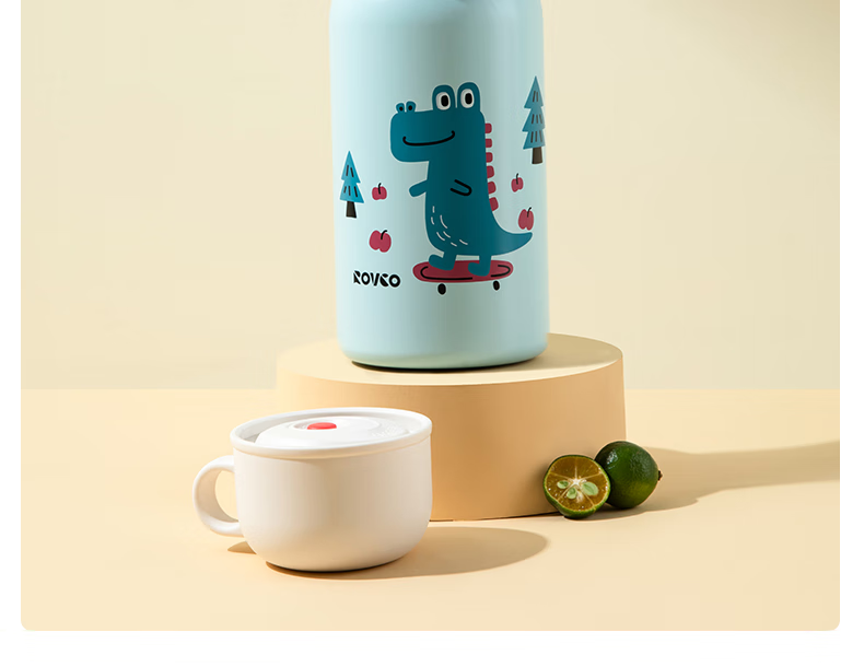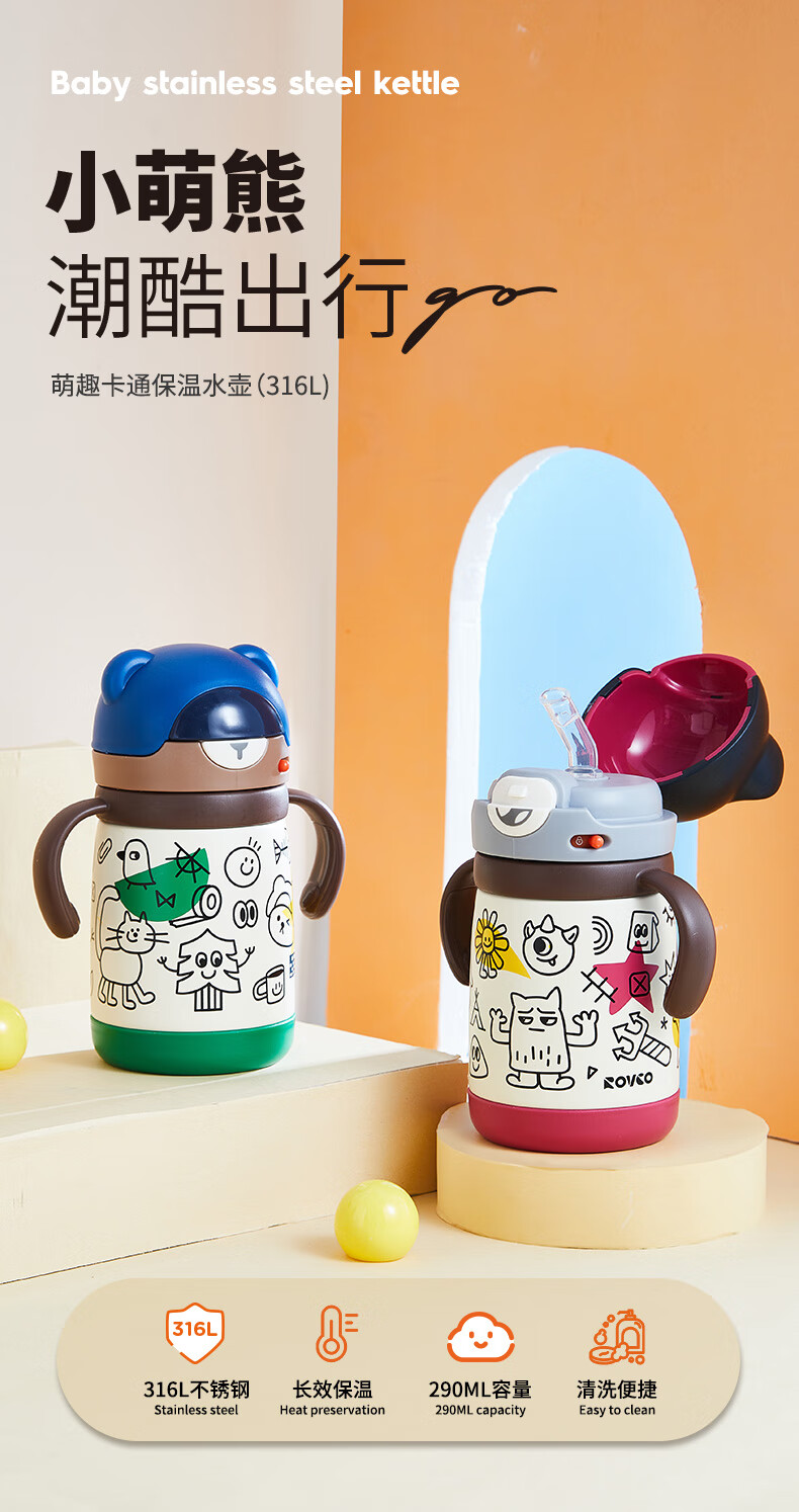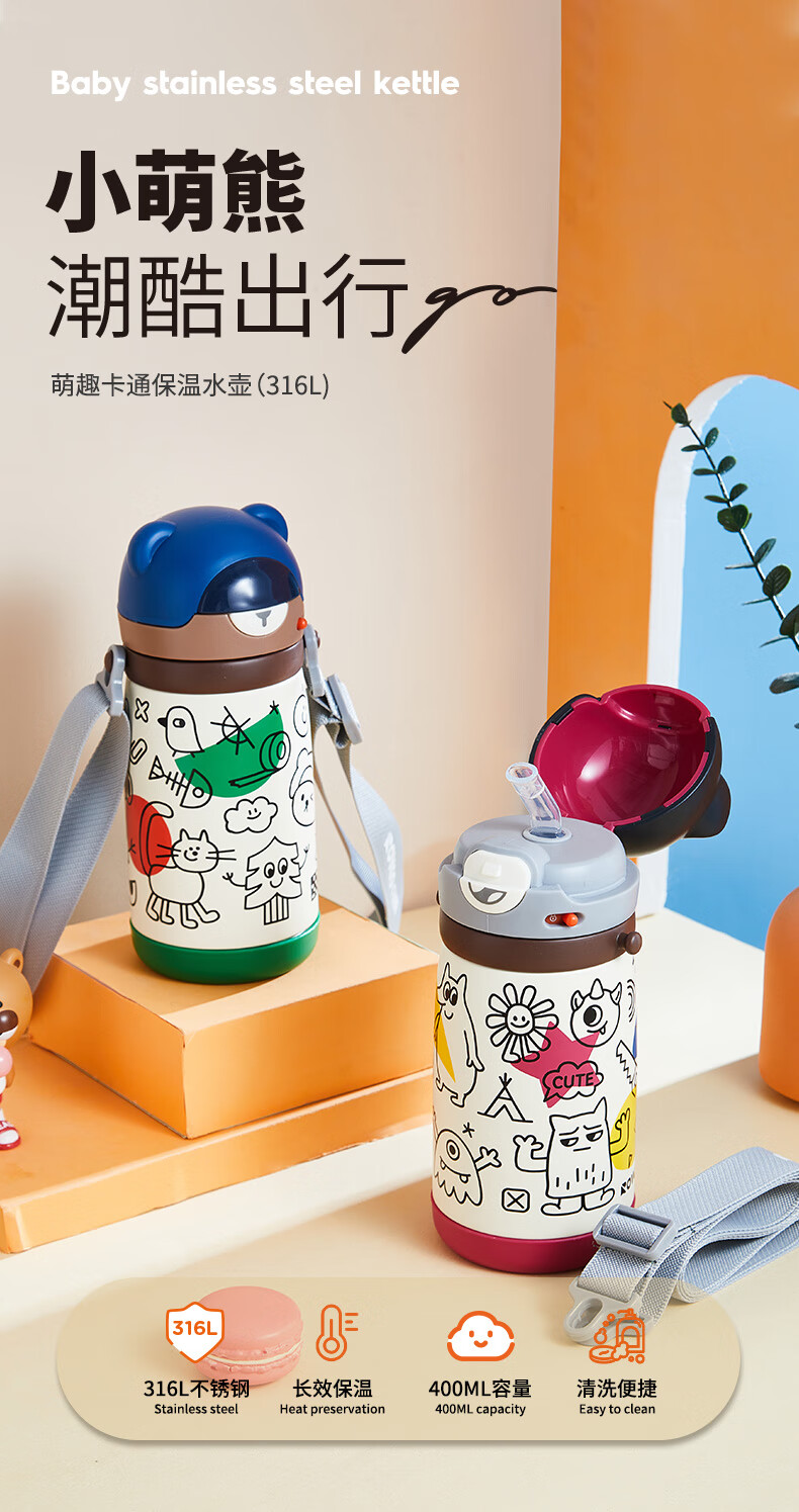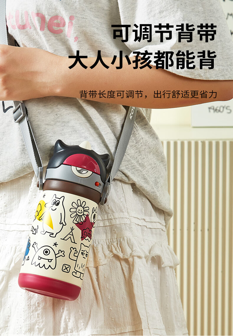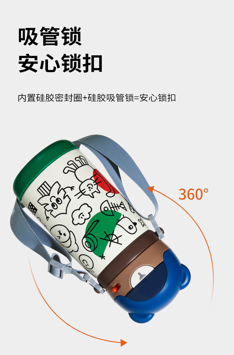 日康(rikang)保温杯 儿童水杯316不锈钢学生杯幼儿园上学专用水杯 【一杯双盖+杯套】B4026蓝色 550ml
