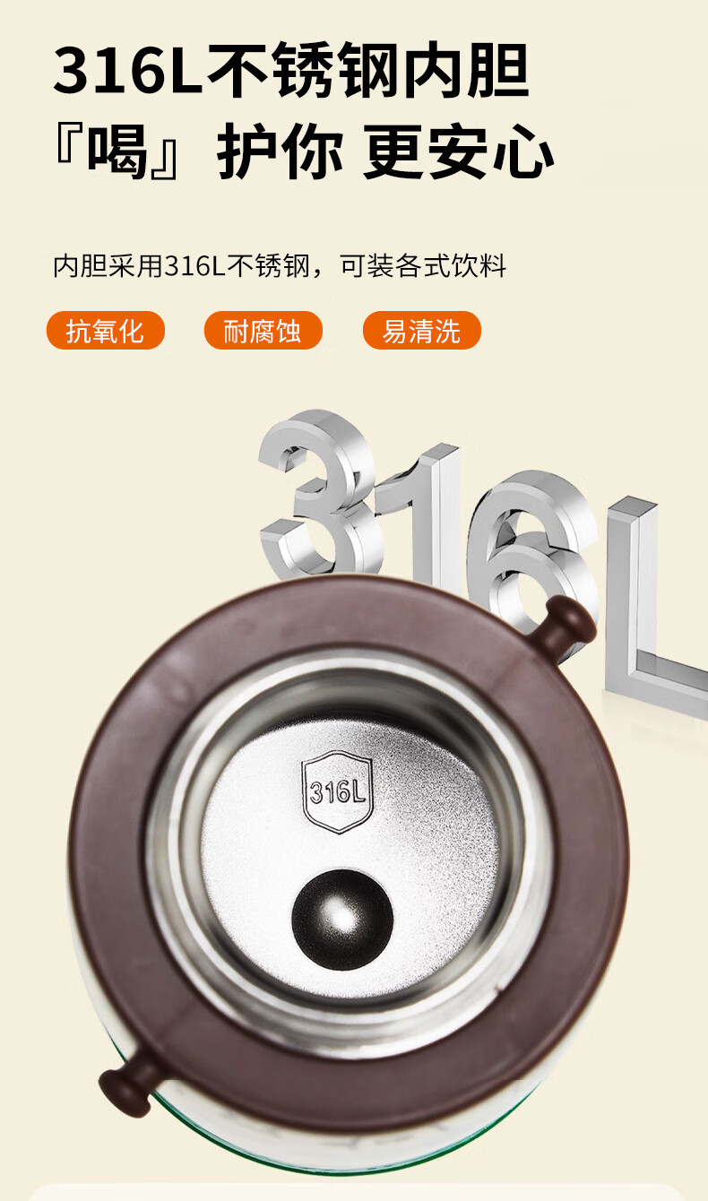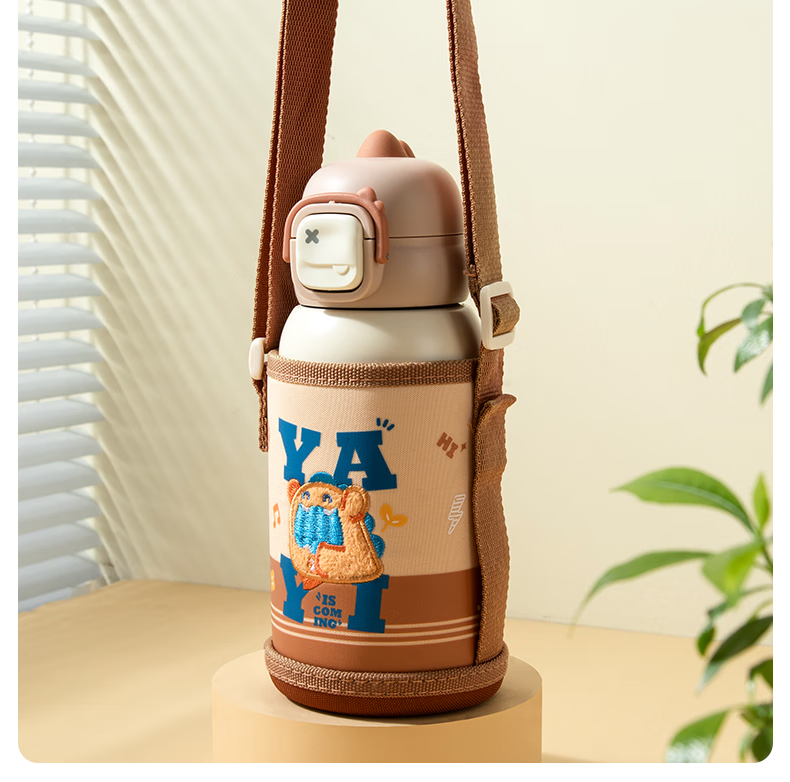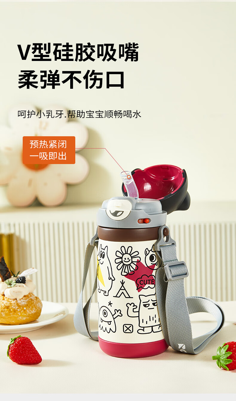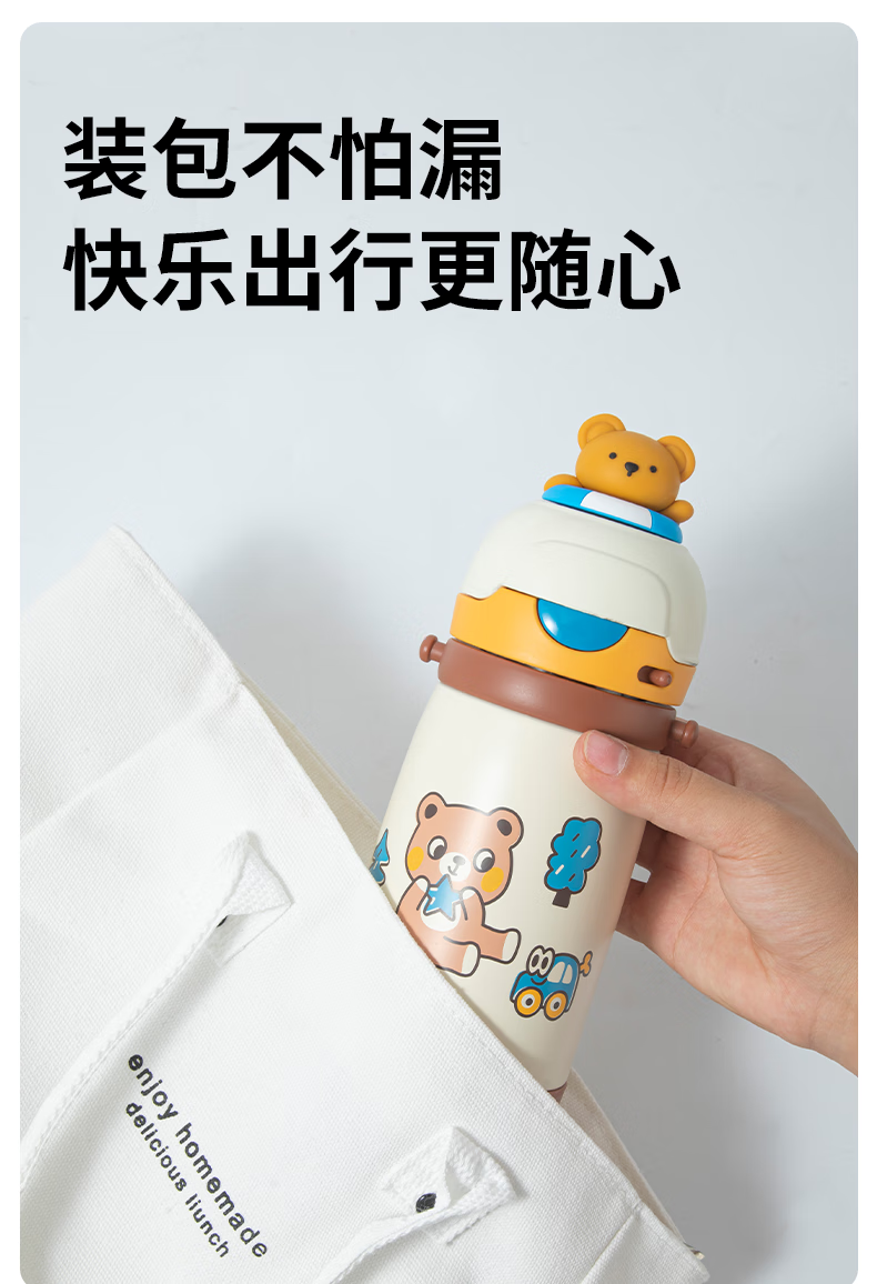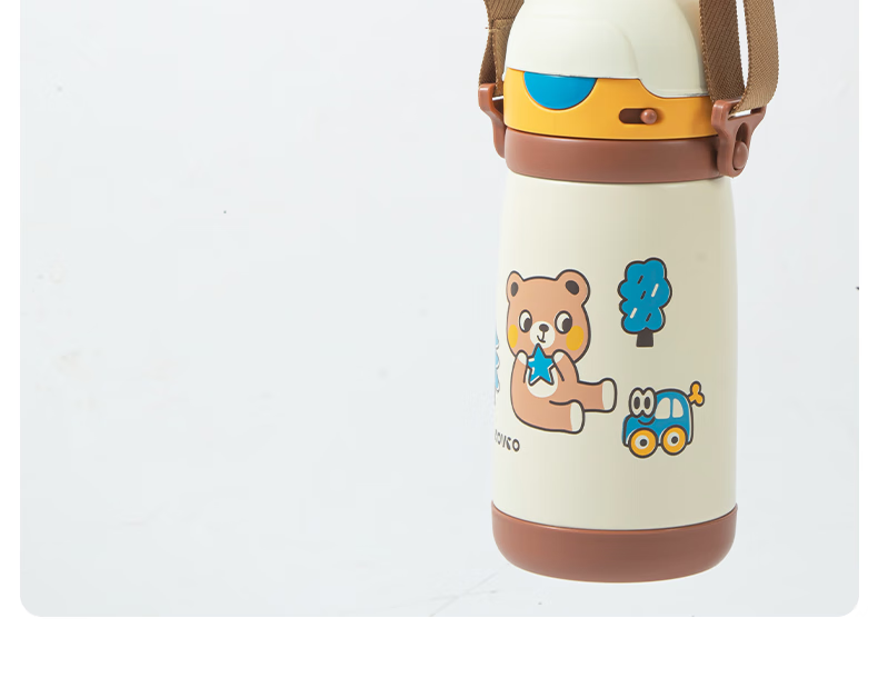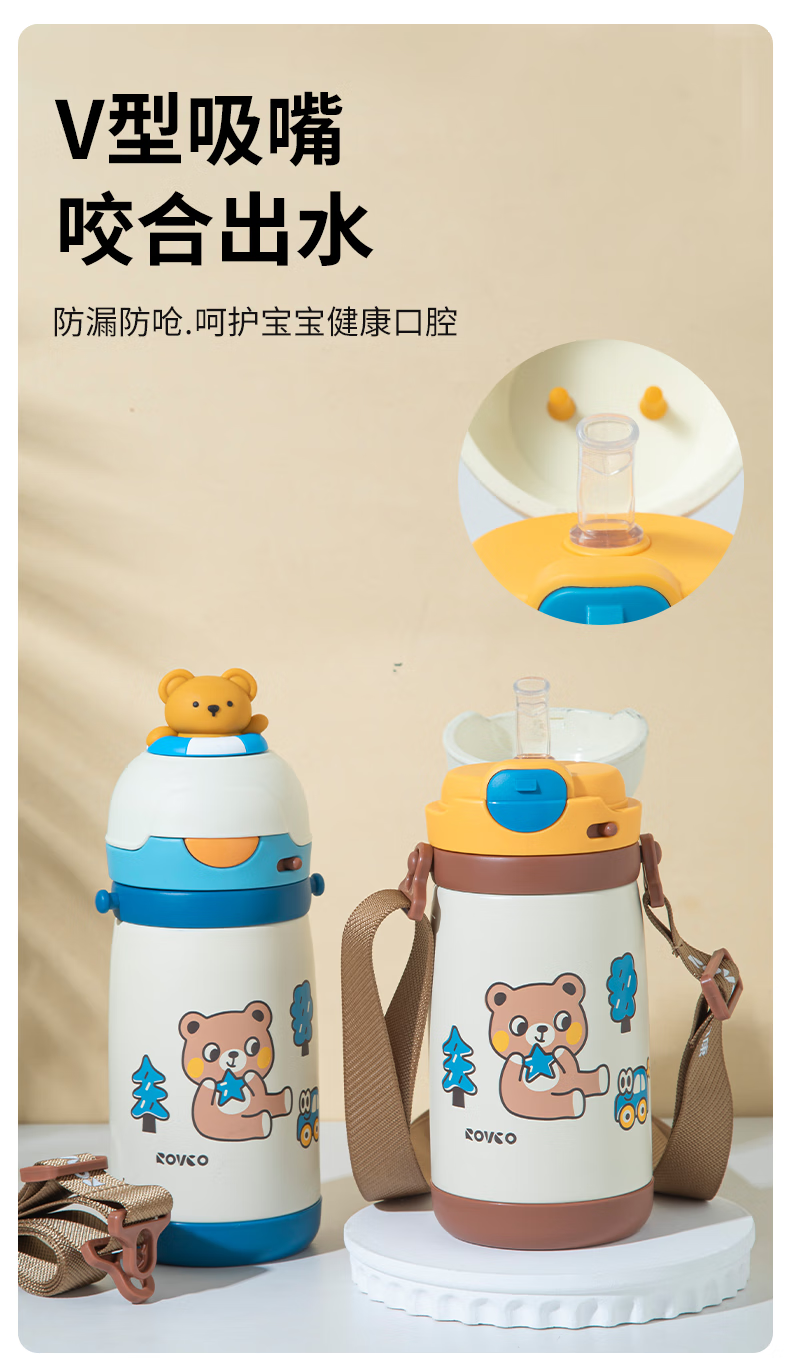 日康(rikang)保温杯 儿童水杯316不锈钢学生杯幼儿园上学专用水杯 【一杯双盖+杯套】B4026蓝色 550ml