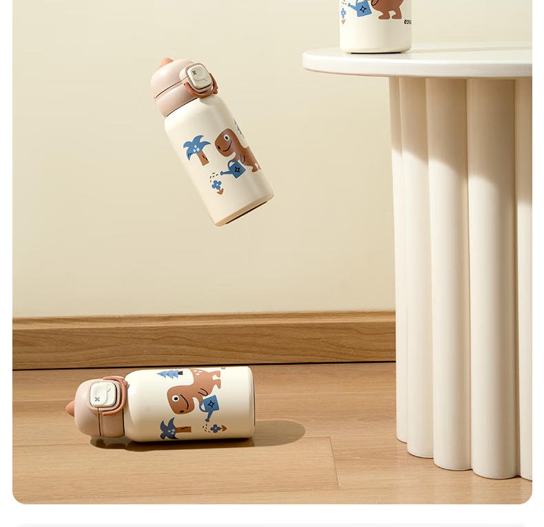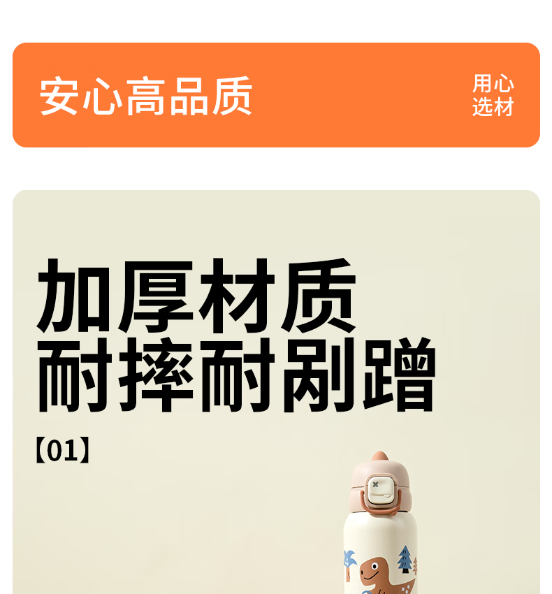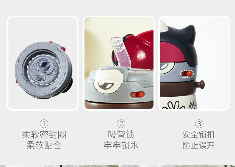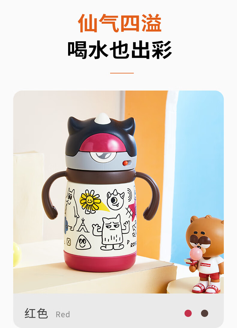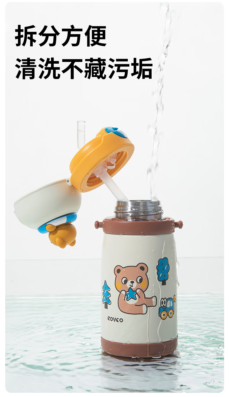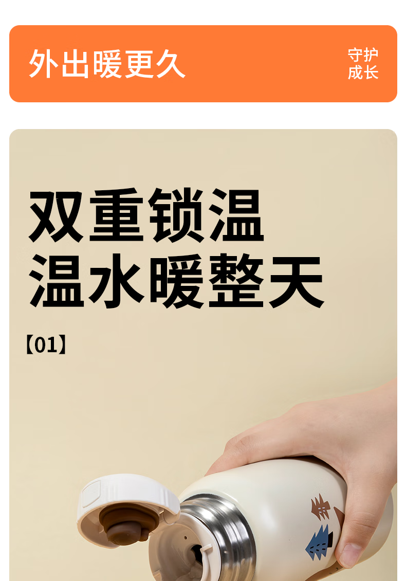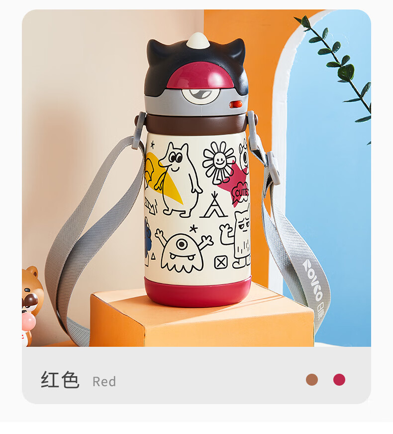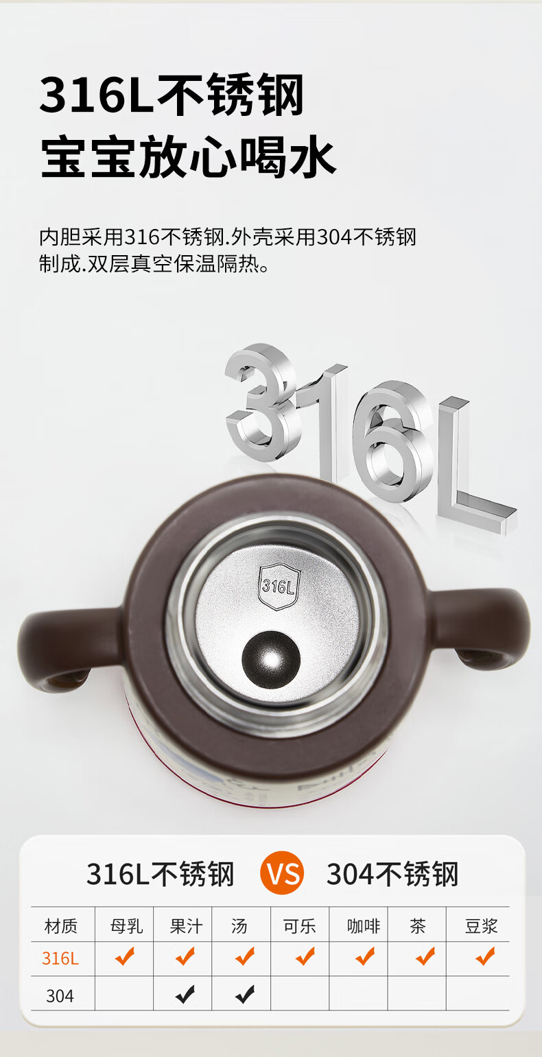 日康(rikang)保温杯 儿童水杯316不锈钢学生杯幼儿园上学专用水杯 【一杯双盖+杯套】B4026蓝色 550ml