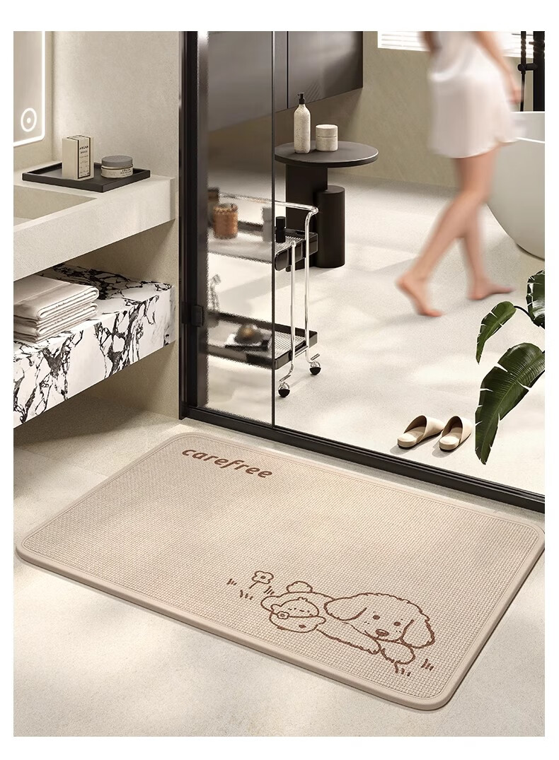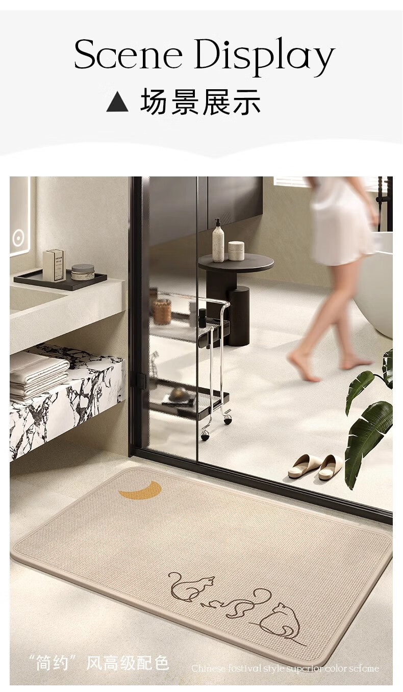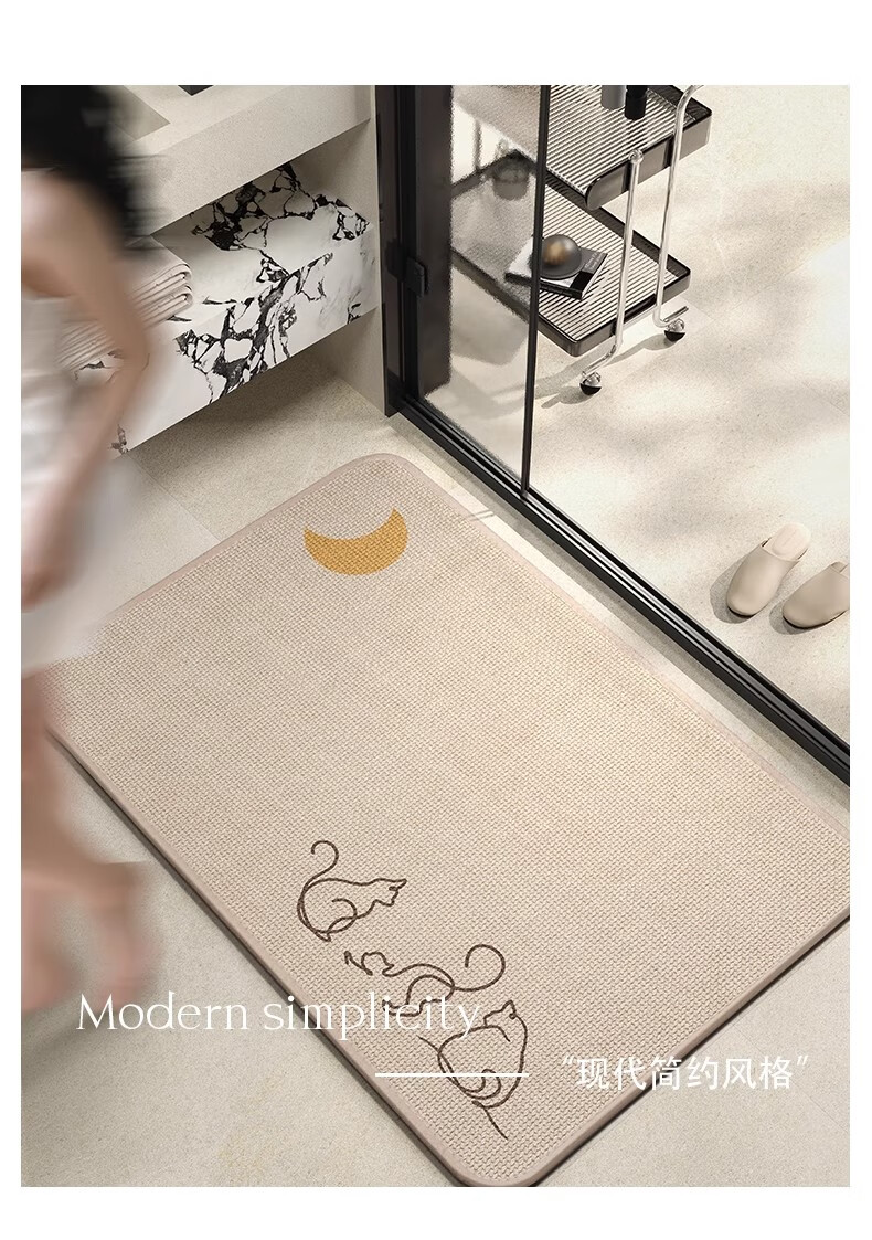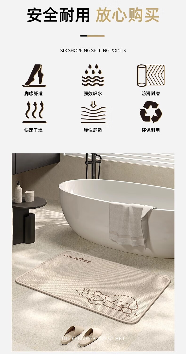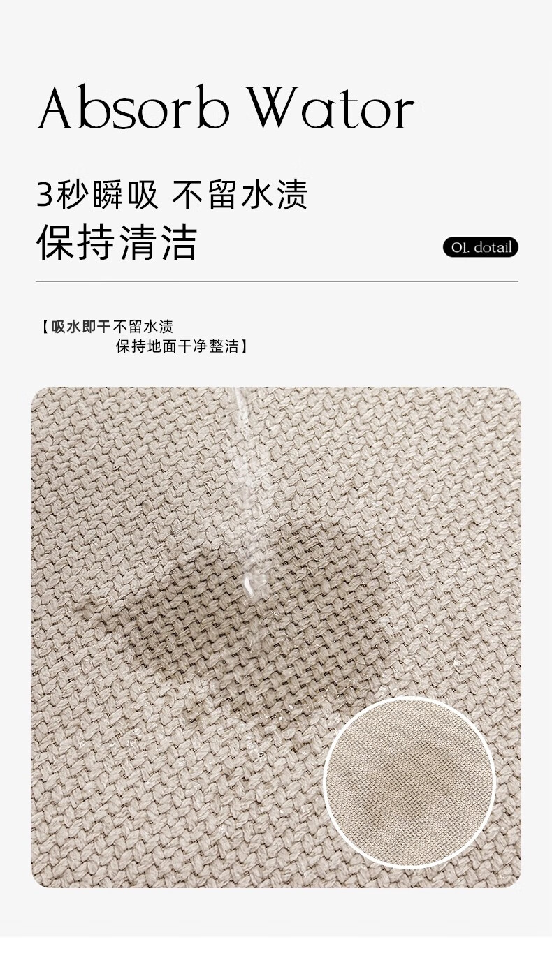 迪拉卫生间地垫浴室专用高级感吸水脚垫防滑厕所门口垫子加厚地毯门垫 悠悠时光一编织亚麻 50x80cm【升级防滑 牢固贴地】
