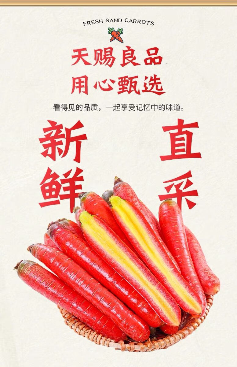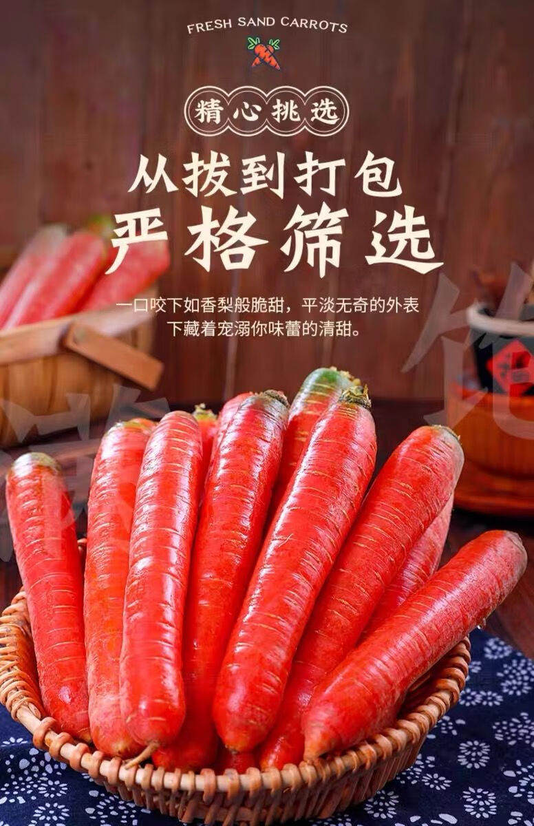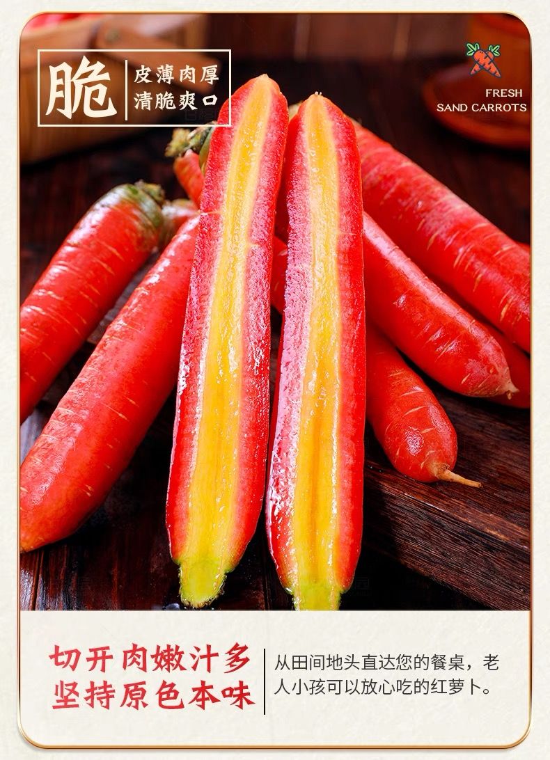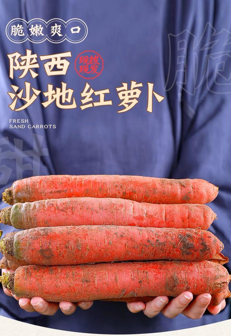 秦品堂陕西沙地水果红萝卜 新鲜蔬菜现挖脆甜胡萝卜红皮 5斤精品装