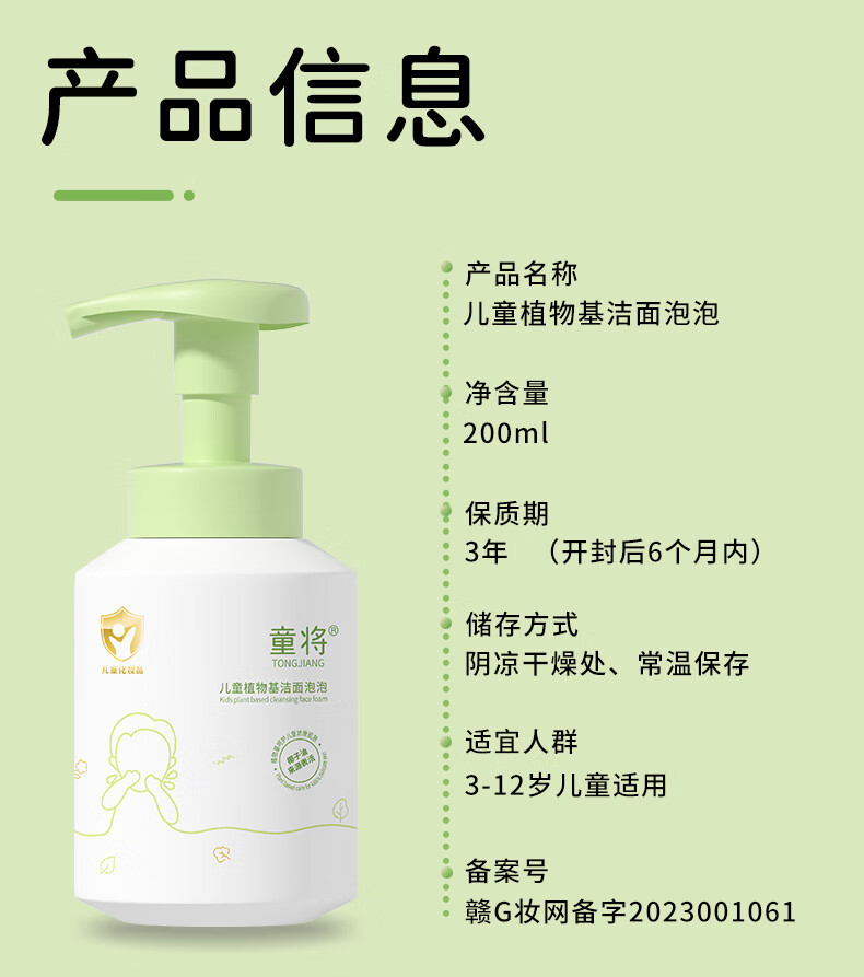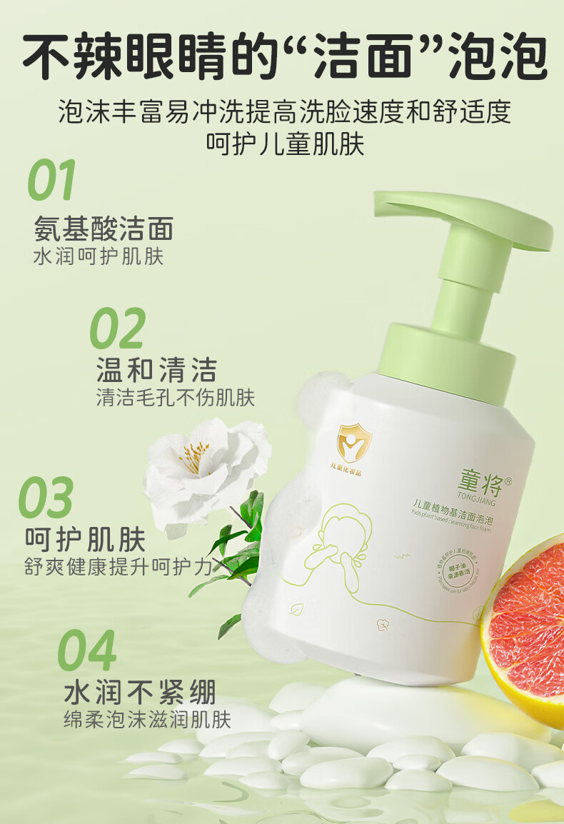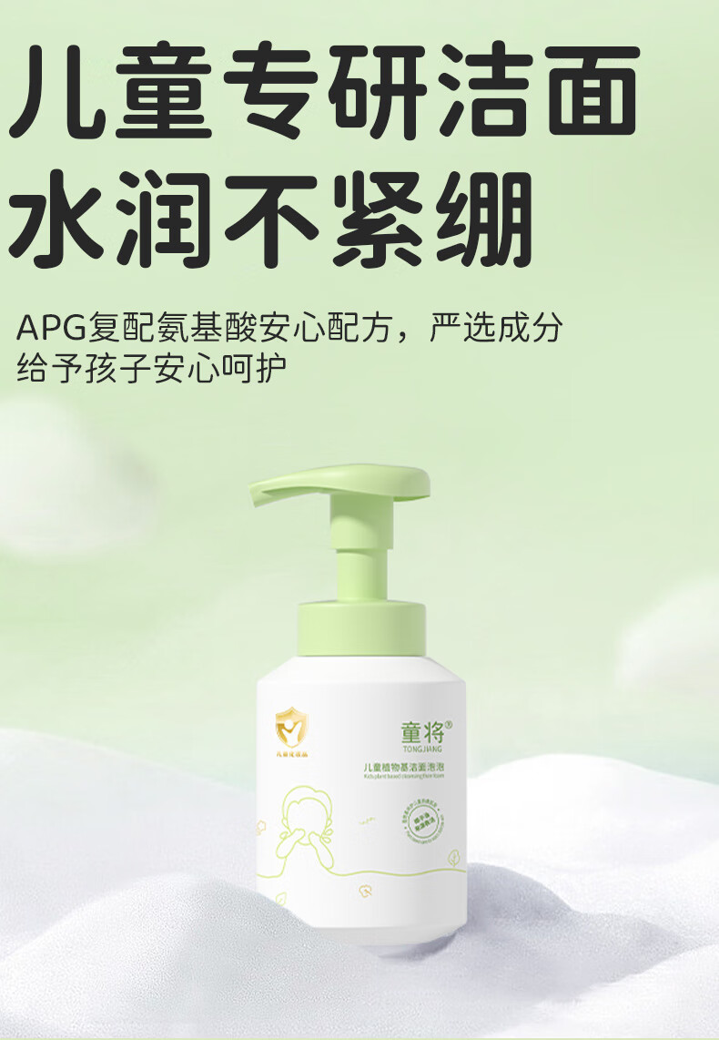 童将儿童植物基洁面泡泡 洗面奶3-12岁中大童清洁护肤椰子油洁面 【儿童奢护五件套】