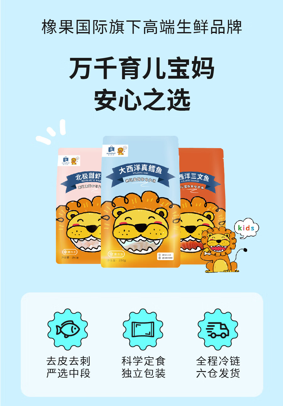 acornfresh橡果生鲜真鳕鱼三文鱼甜虾仁海鲜独立小包装送宝宝婴儿辅食食谱 月套餐:真鳕鱼三文鱼甜虾仁 750g