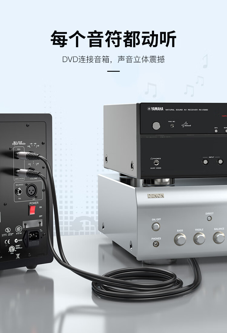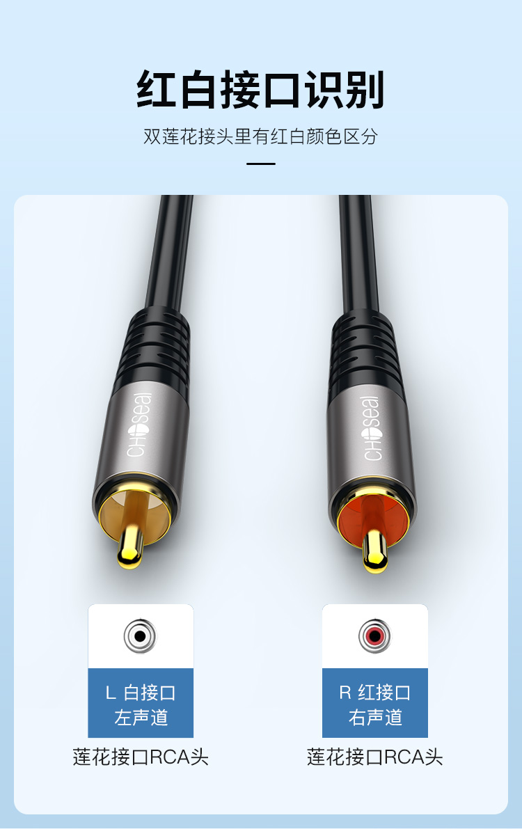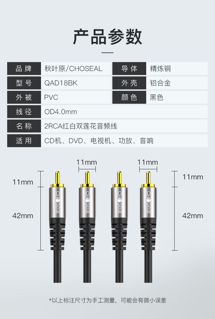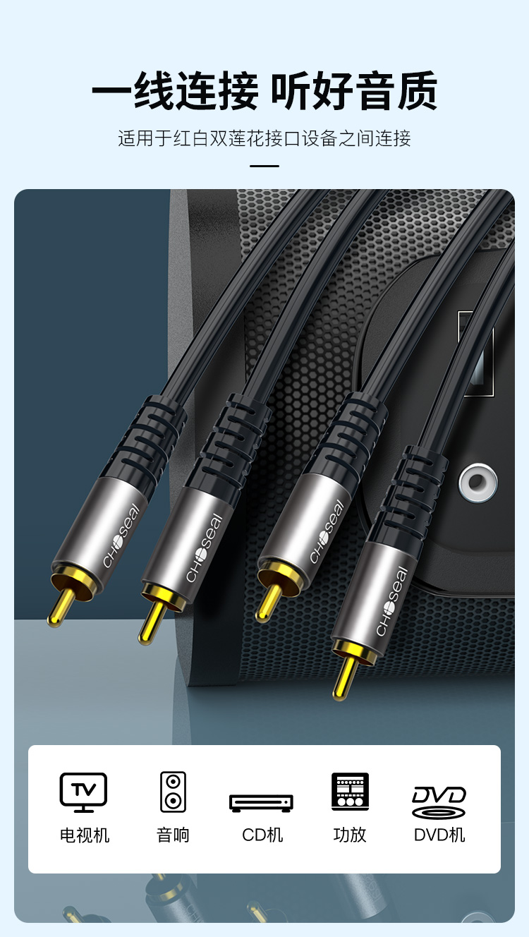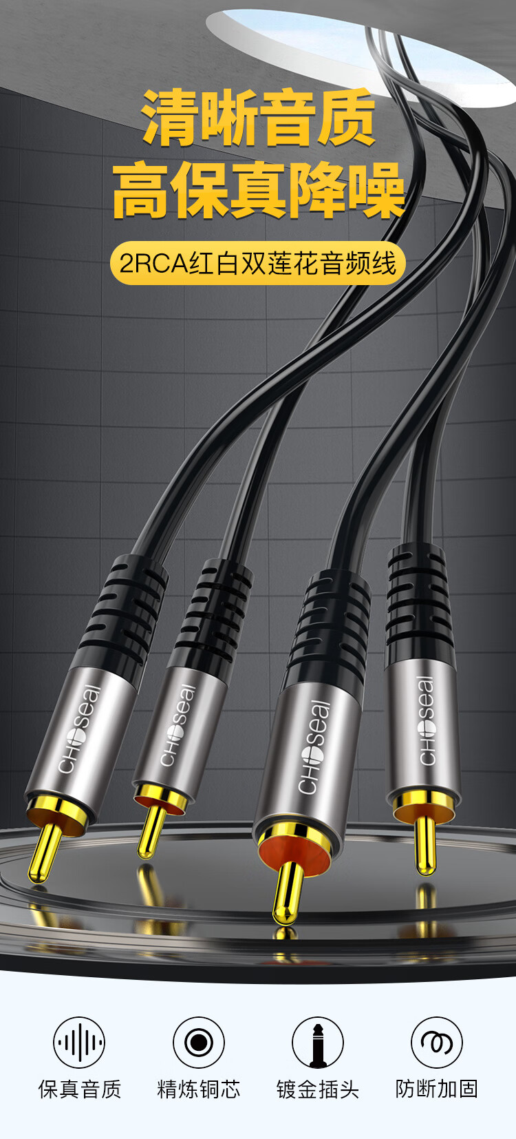 秋叶原(CHOSEAL)2RCA红白双莲花头音频线 二对二红白AV音频信号线 电脑电视接音响功放线 1米 QAD18BKT1